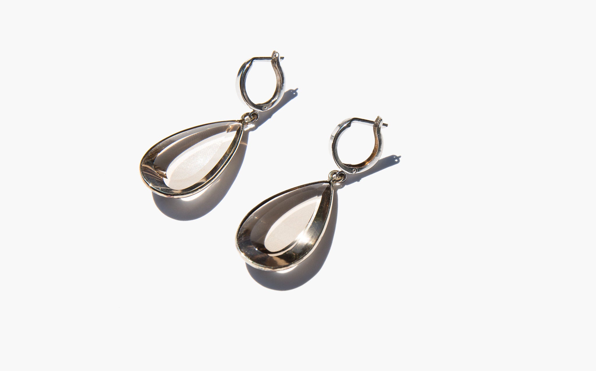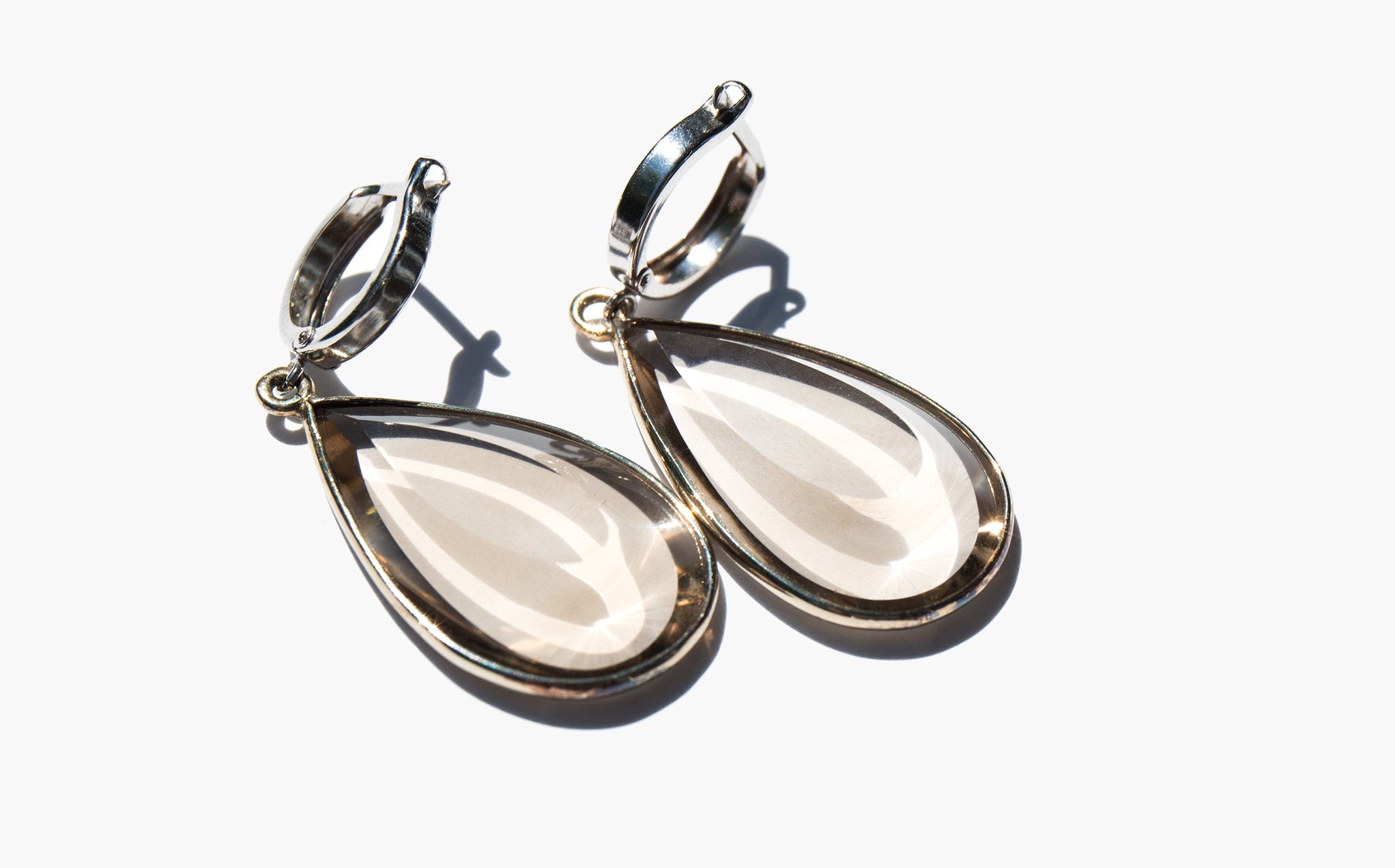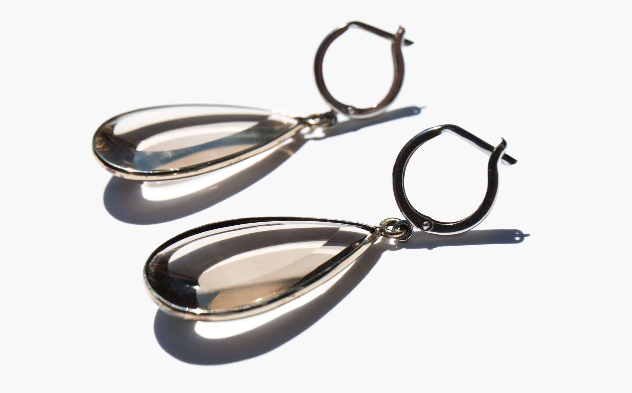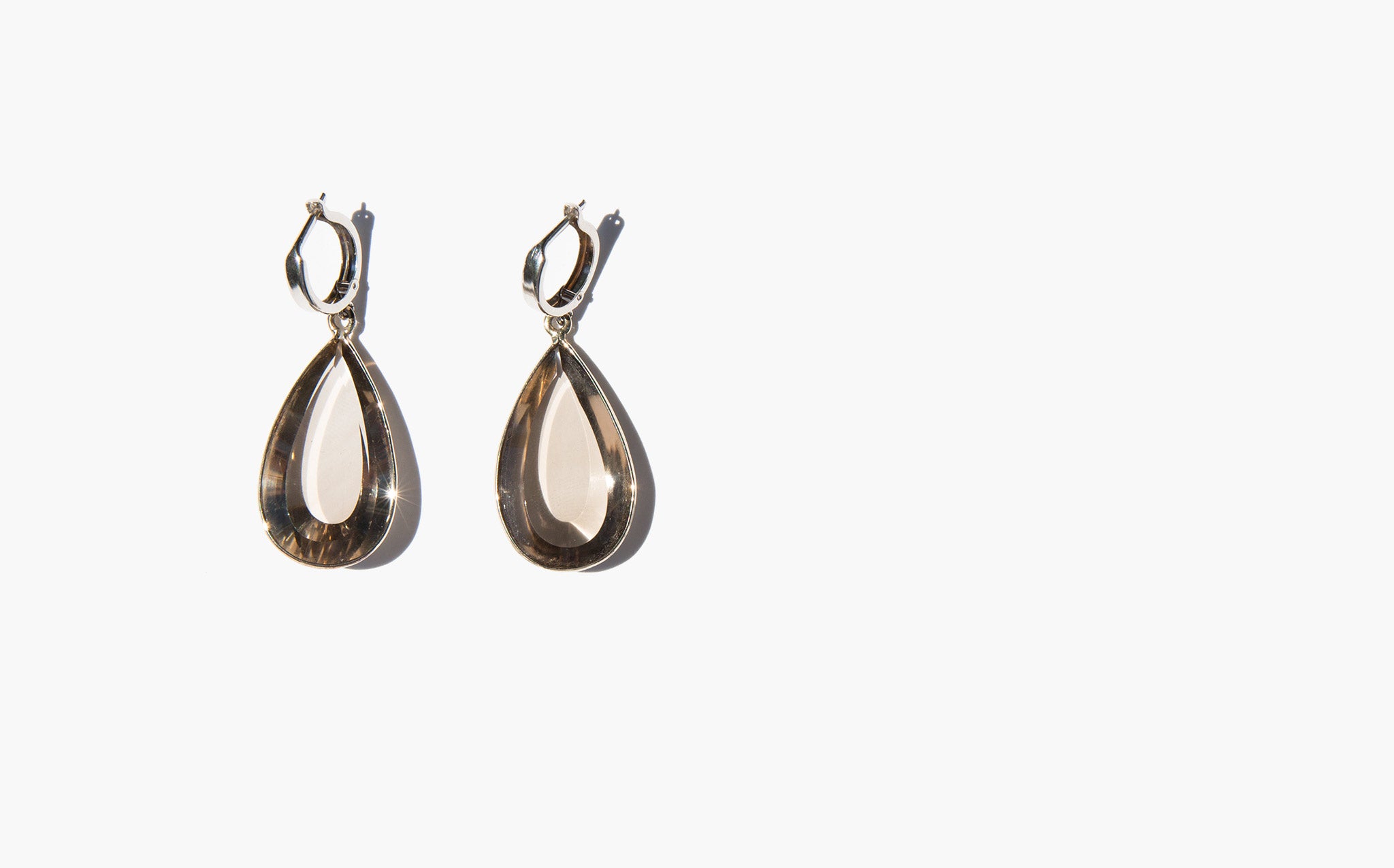 Beautiful, faceted smoky topaz and 14K white gold earrings.