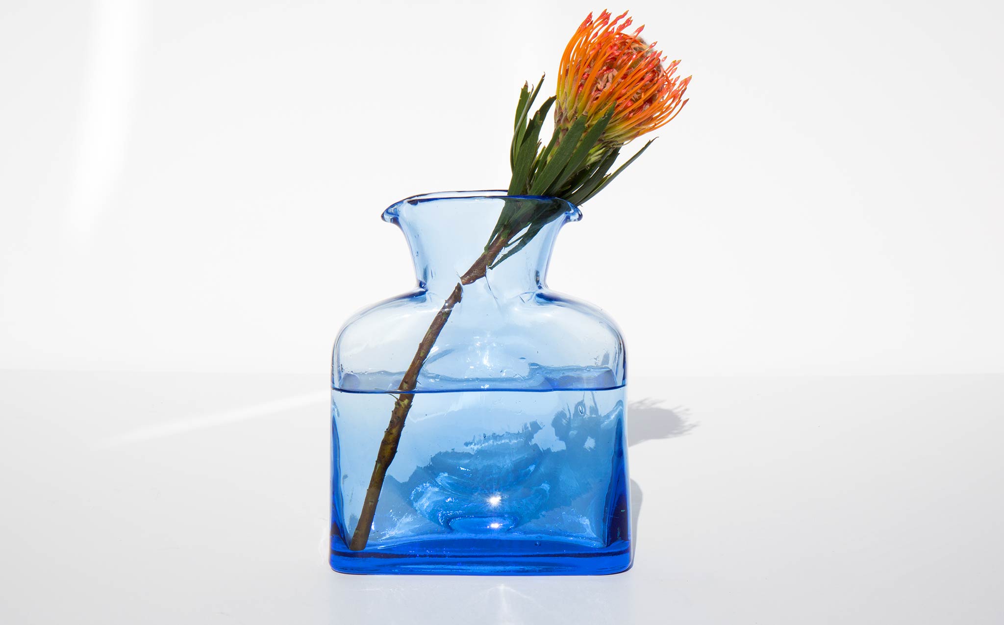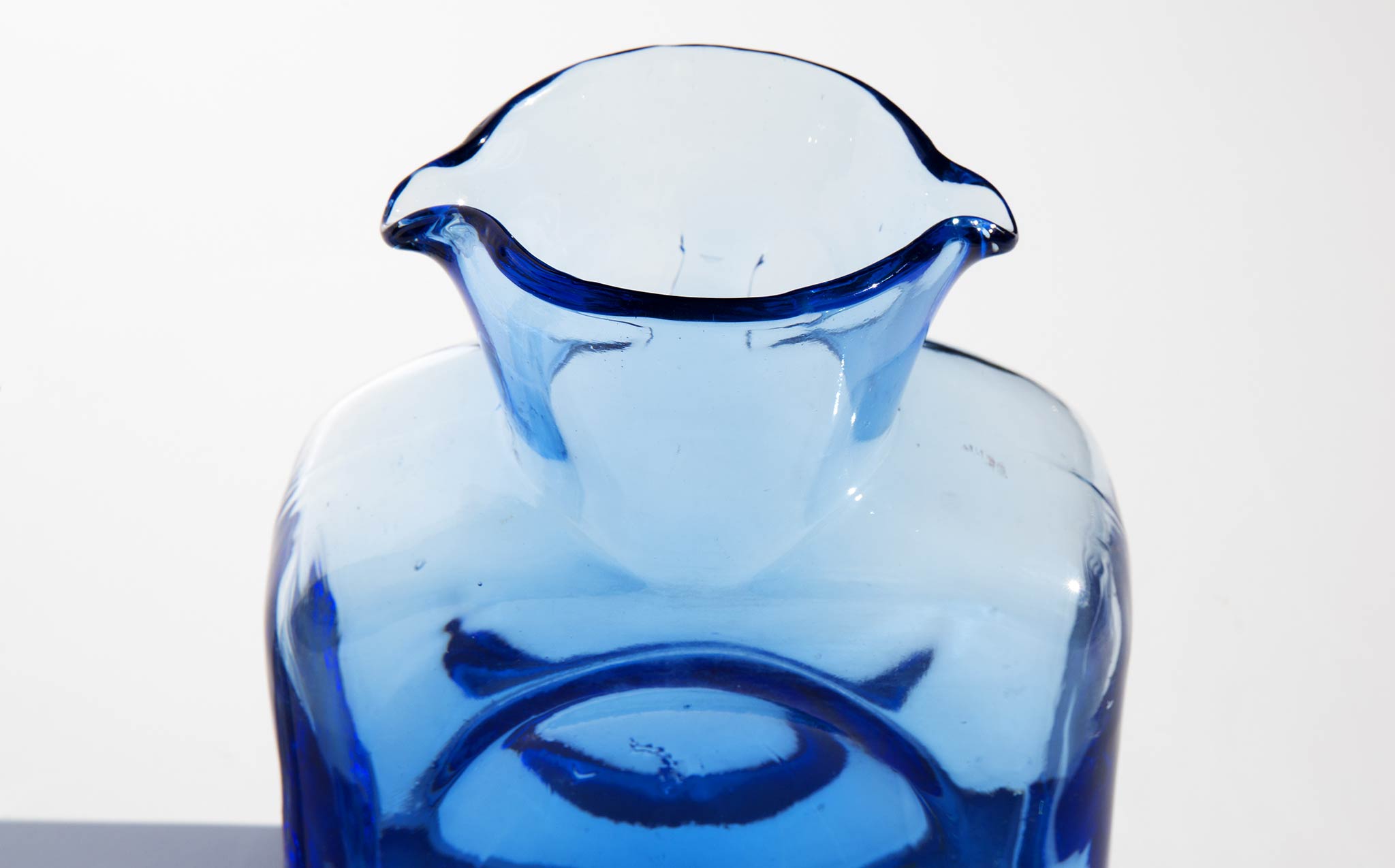 Beautiful, periwinkle vintage Blenko glass double spout water jug. These pieces also make amazing vases.