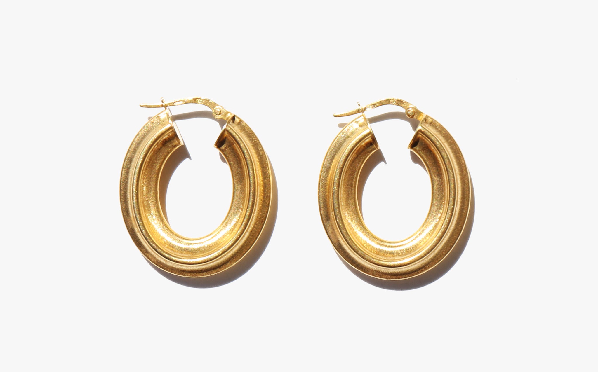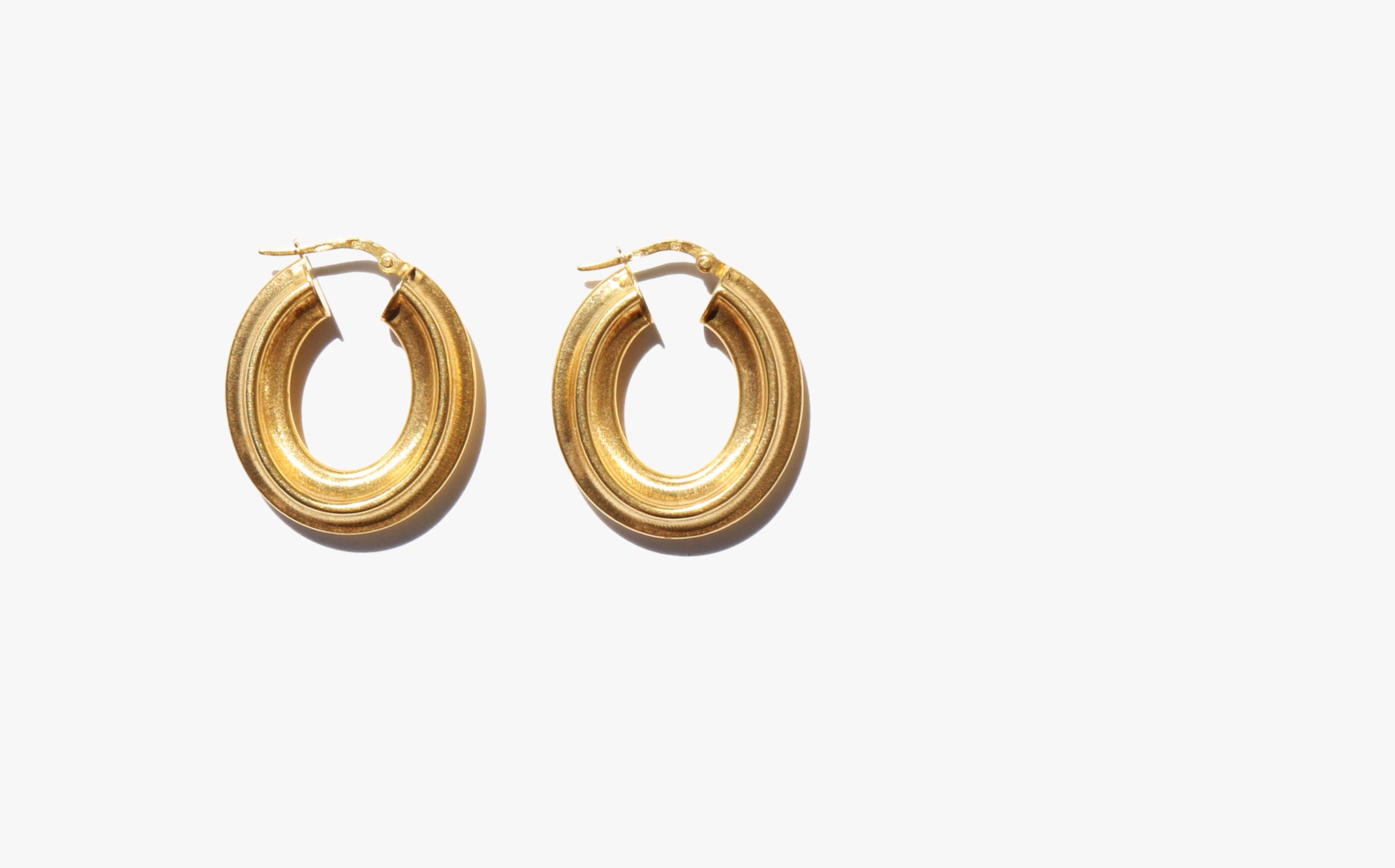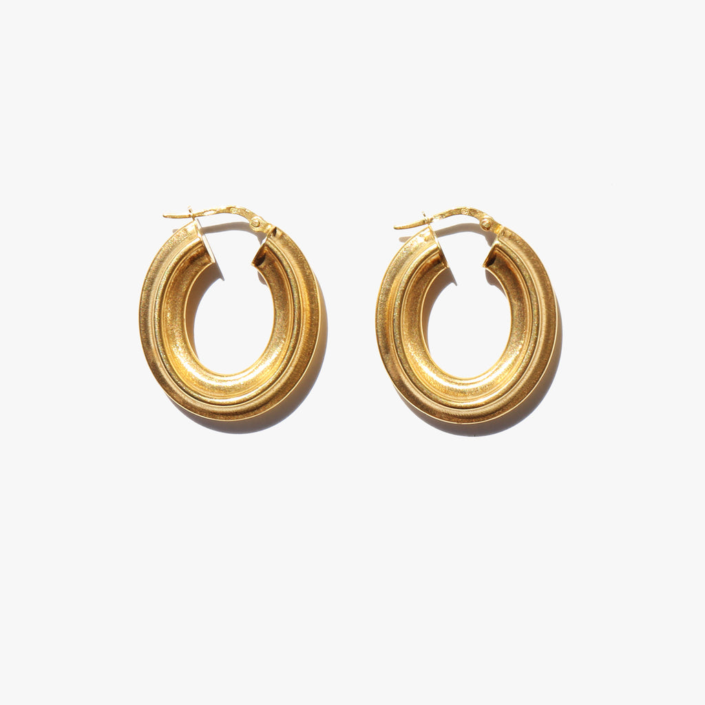 Elegant 14K gold fluted oval hoops with latch back closure.
