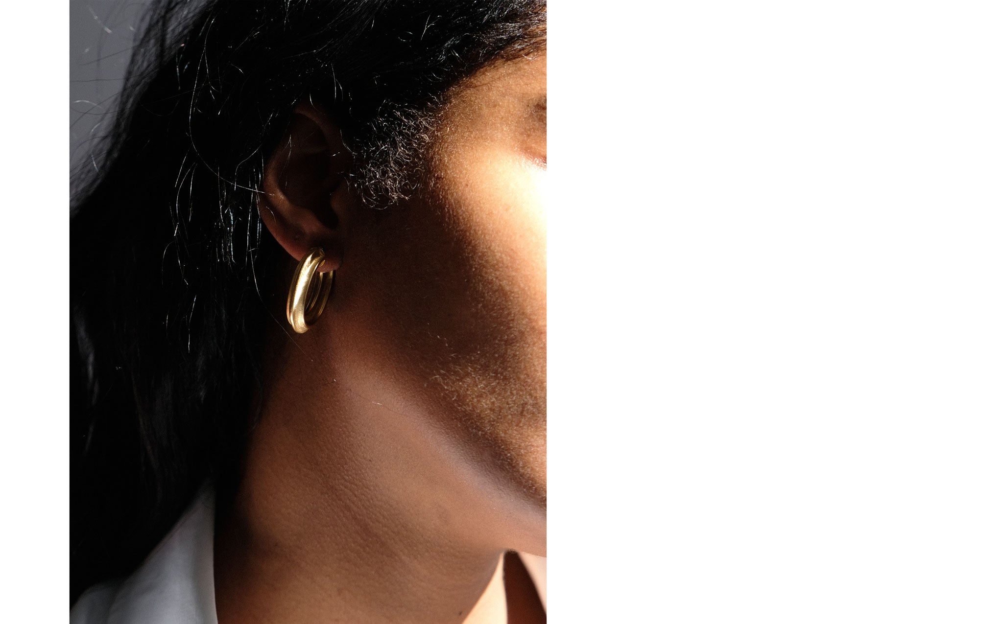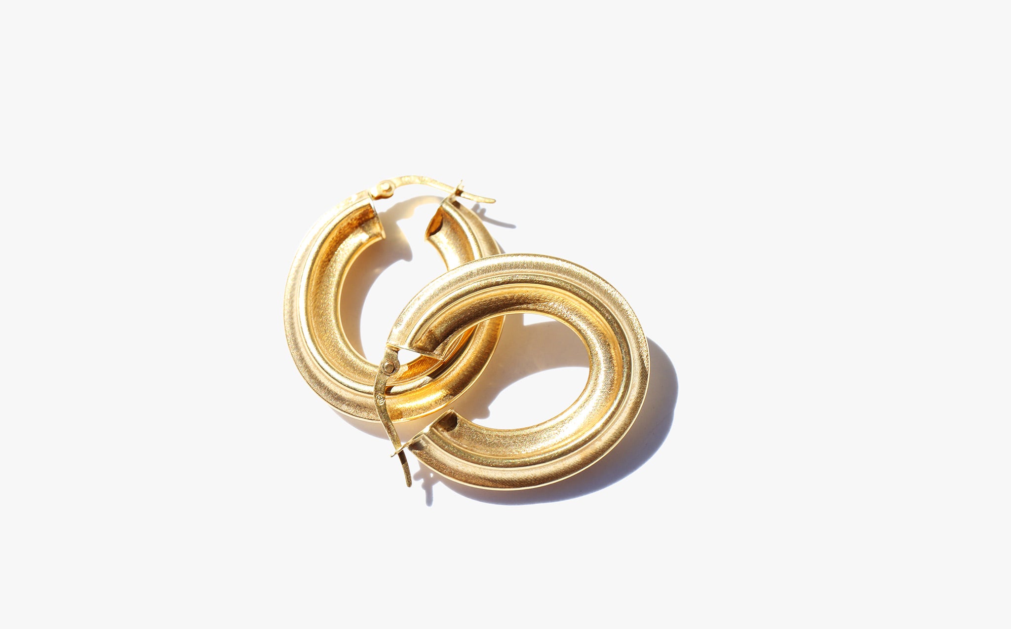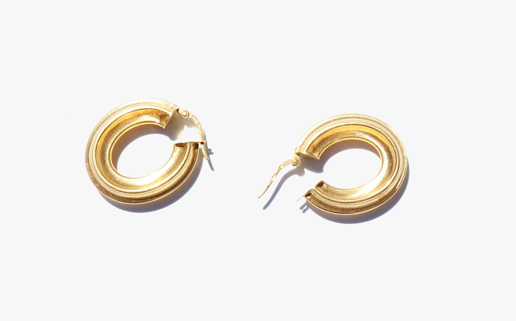 Elegant 14K gold fluted oval hoops with latch back closure.