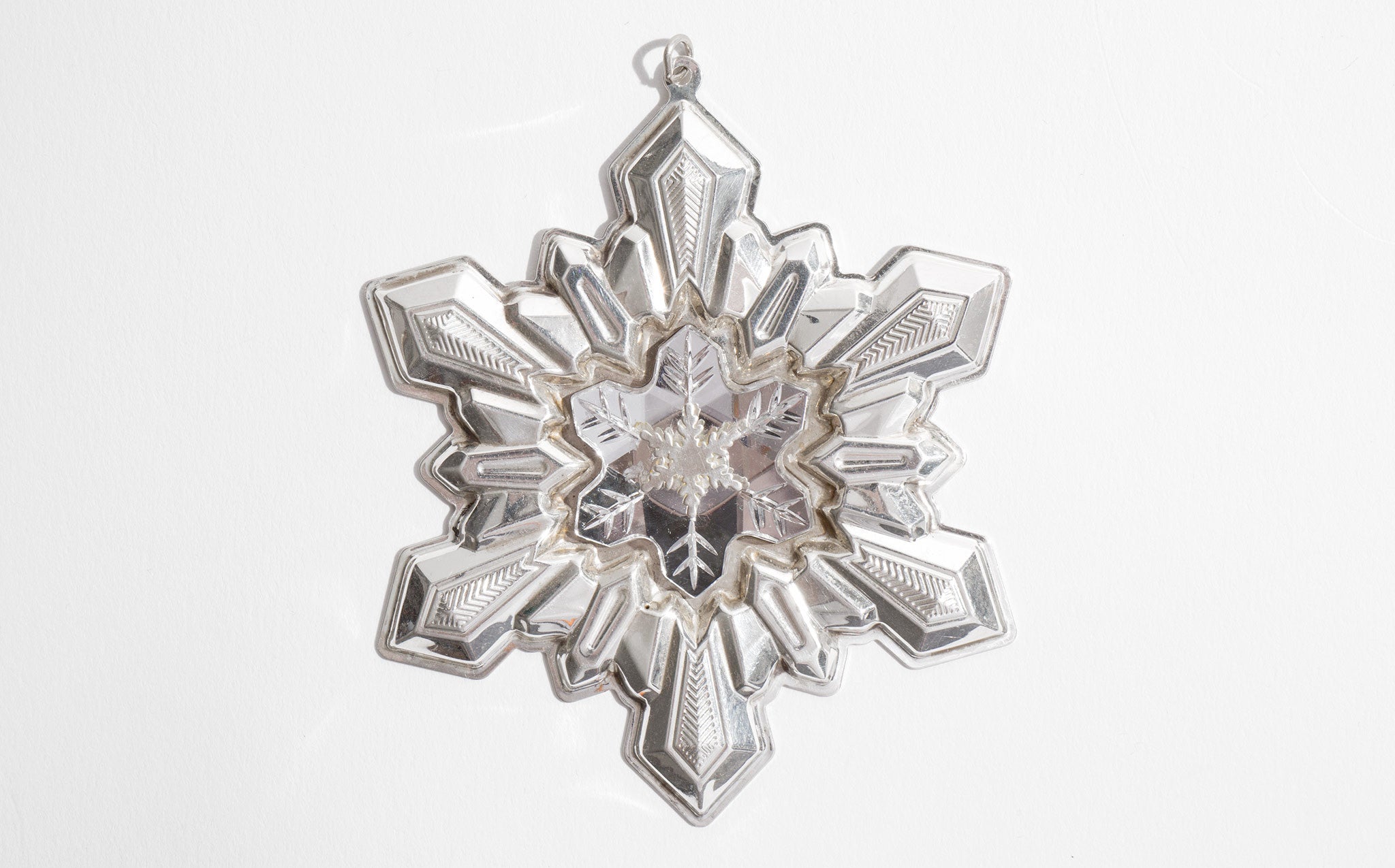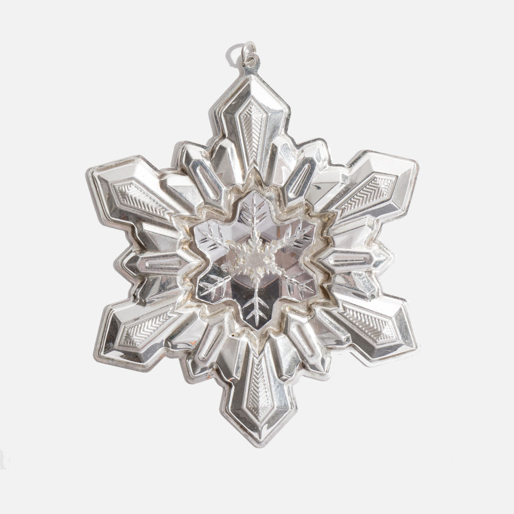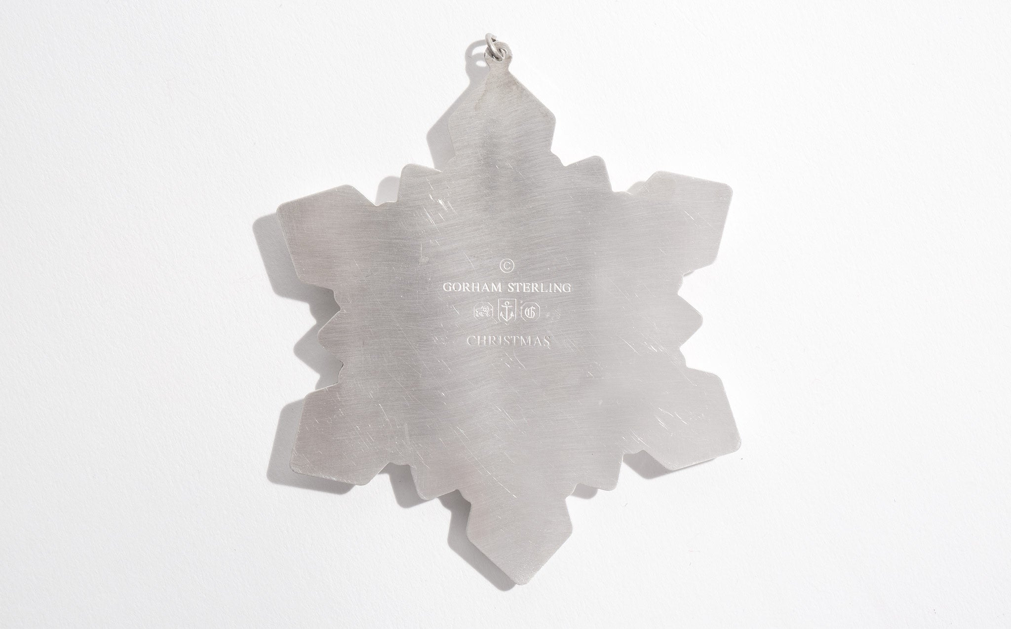 Heirloom quality sterling silver and crystal snowflake ornament crafted in the USA by Gorham, founded in 1831 and still one of America's largest sterling manufacturers.