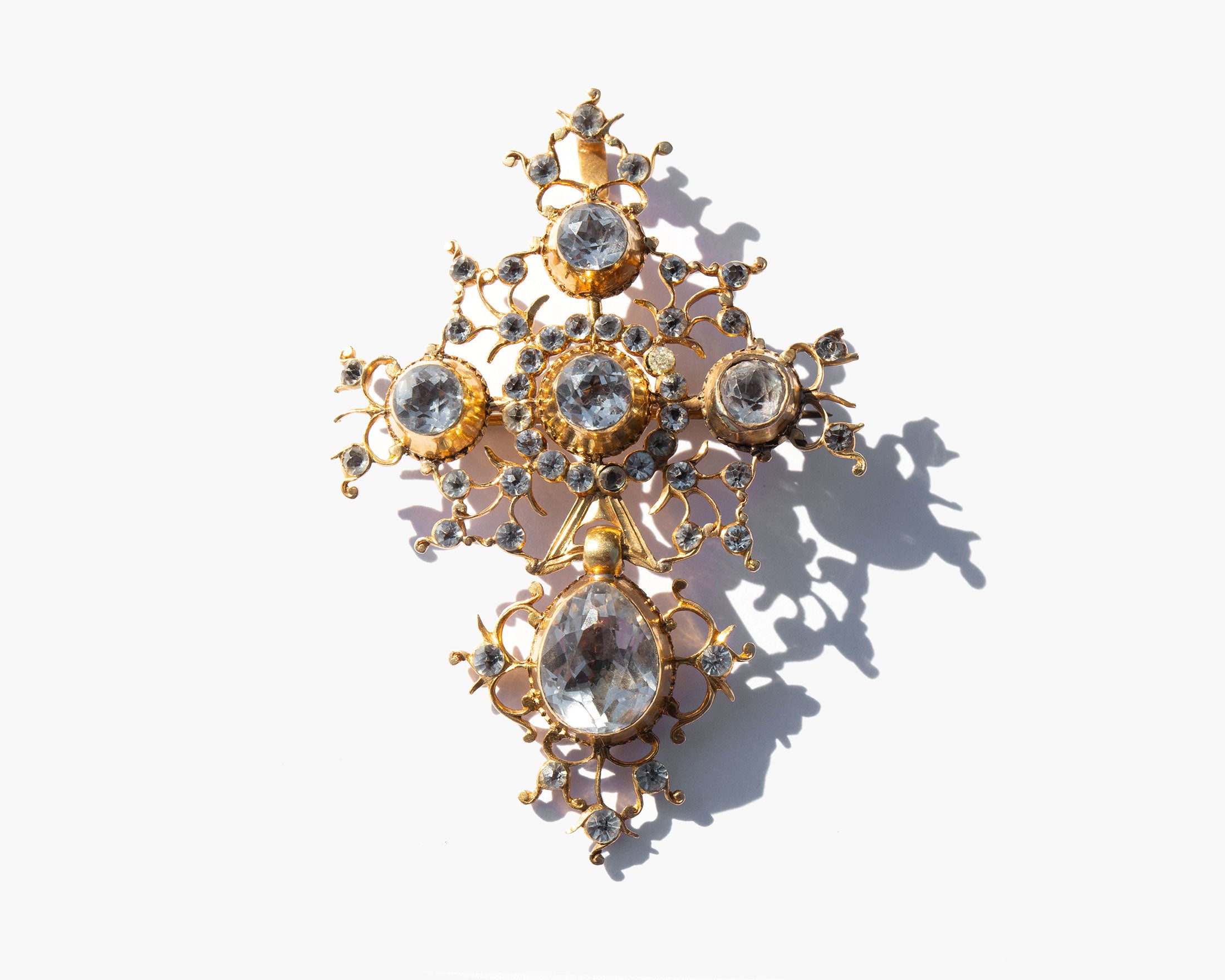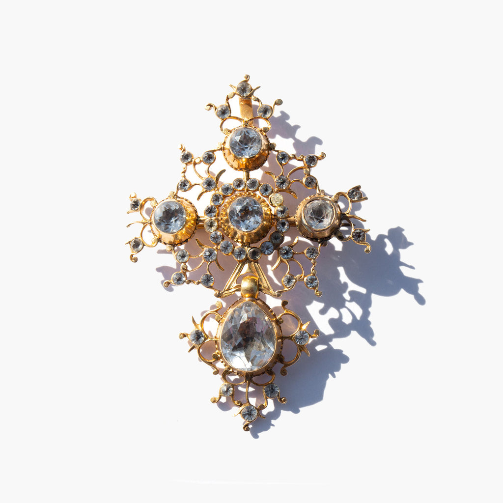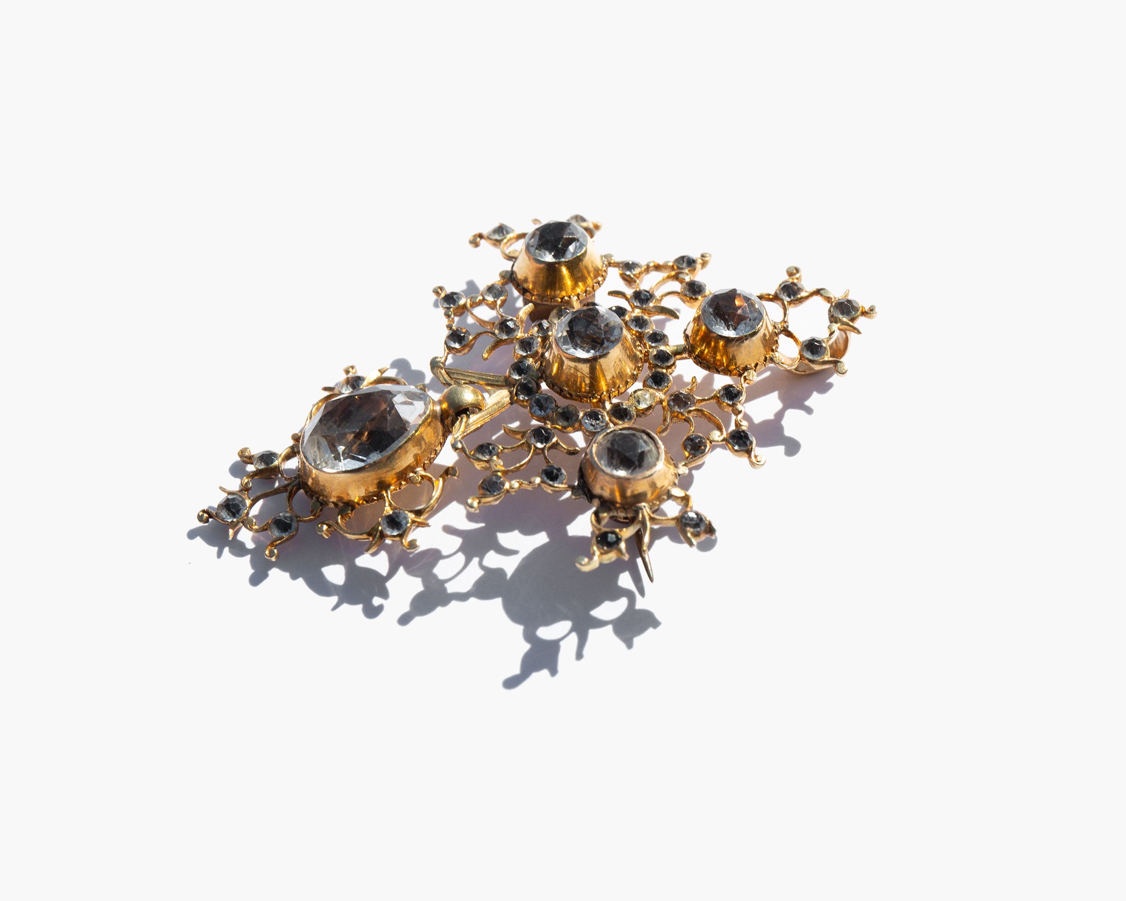 Stunning antique Georgian era 14k gold and rock crystal brooch.
