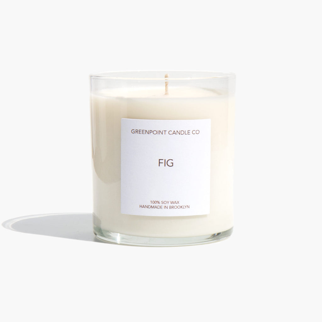 Eco-friendly and vegan soy wax candle, hand blended in small batches in Greenpoint, Brooklyn. With the fresh scent of ripe summer figs, this long burning candle evokes lush, lively greens and has undertones of cool woodsy moss and a light sunset musk.