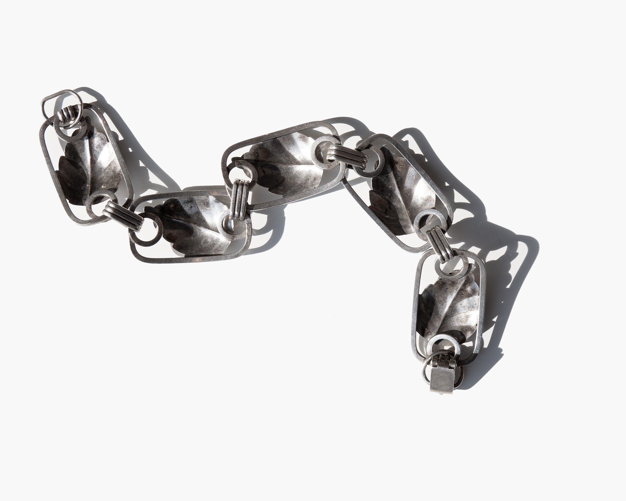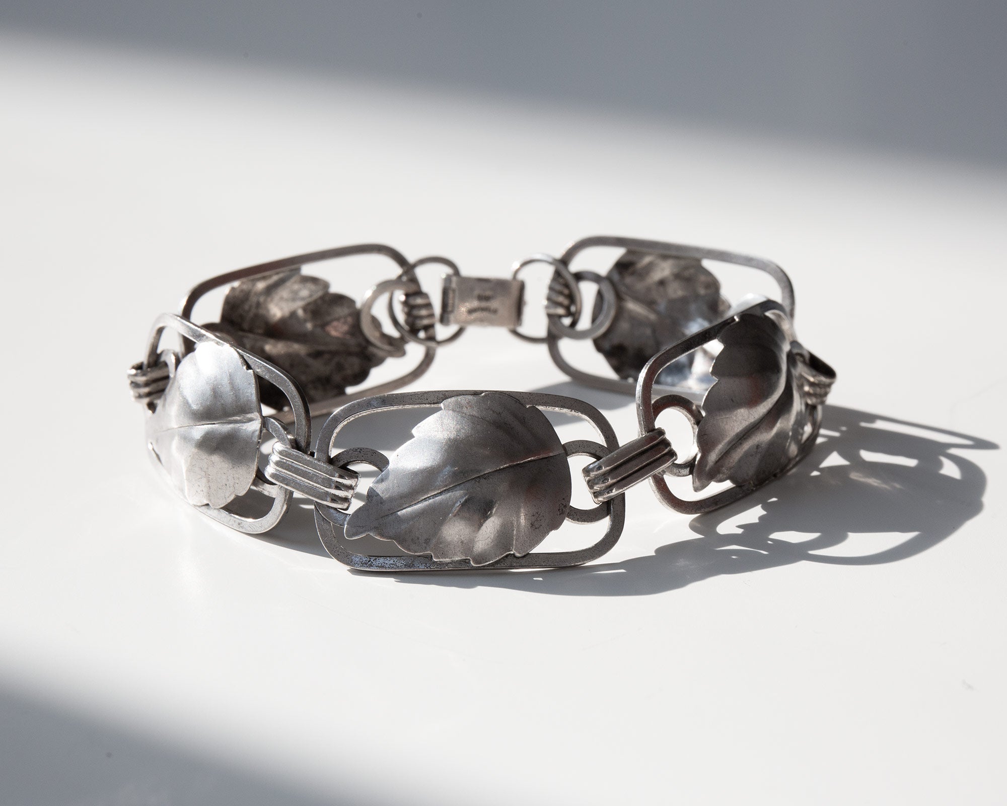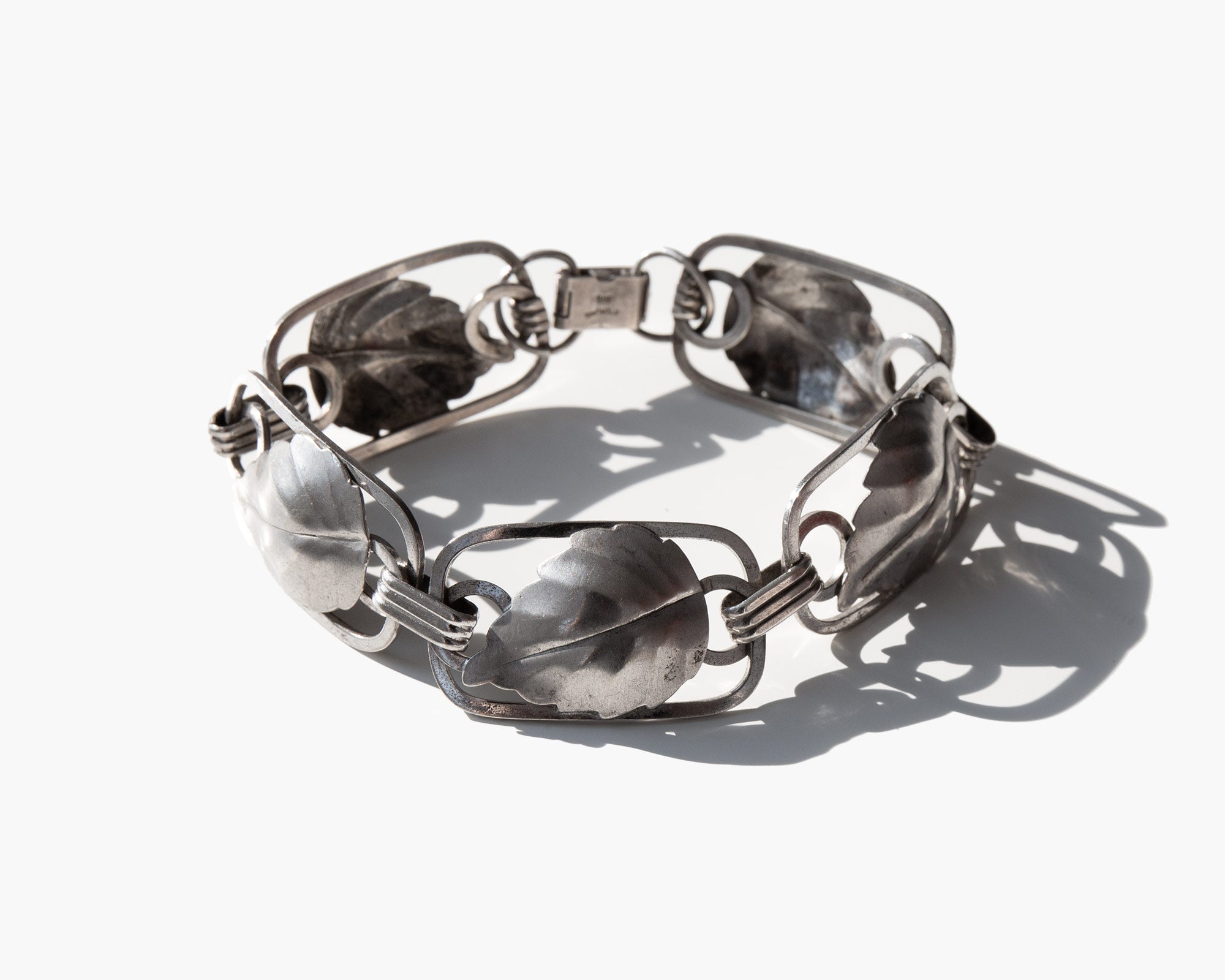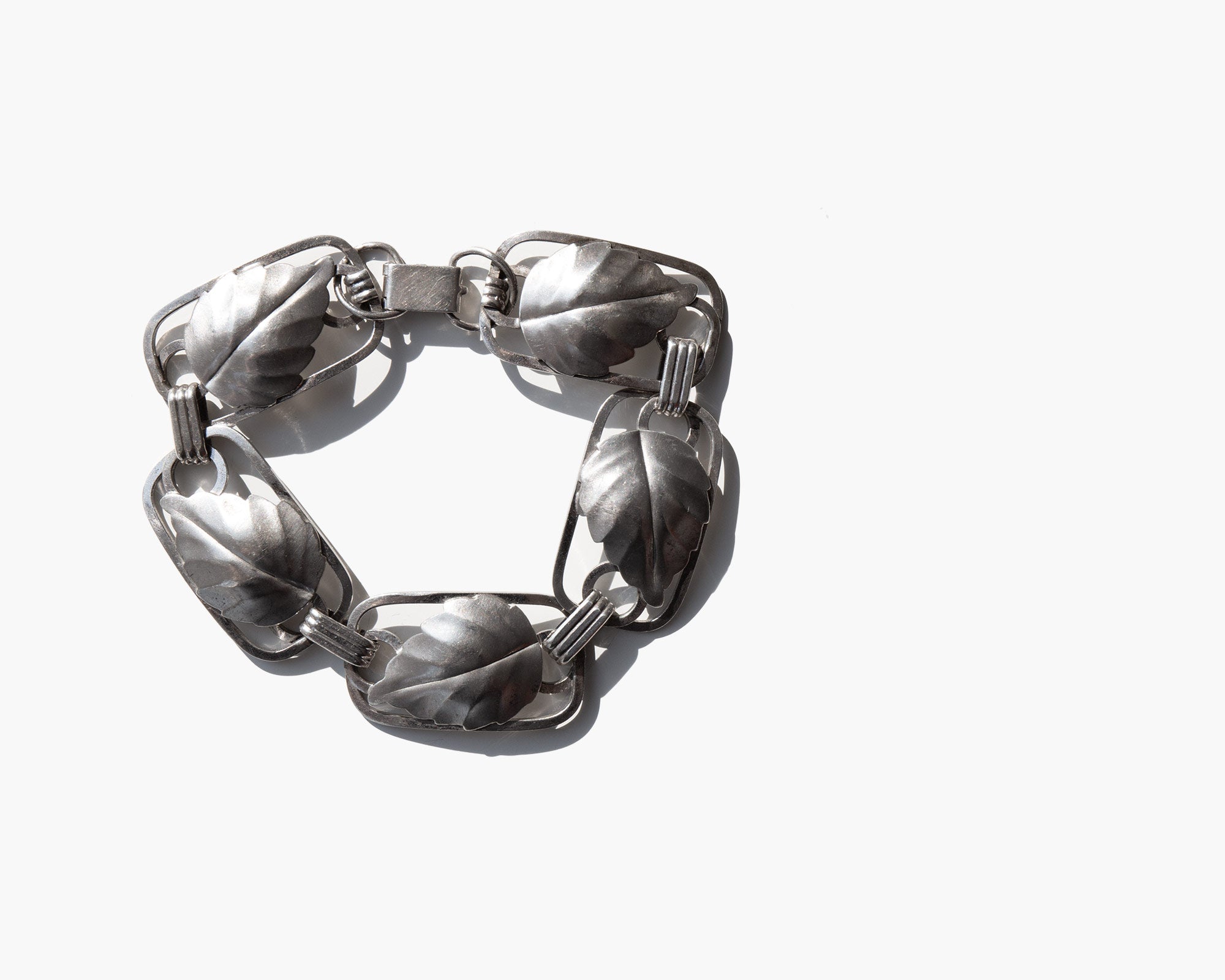 1950's Arts and Crafts sterling silver leaf bracelet.