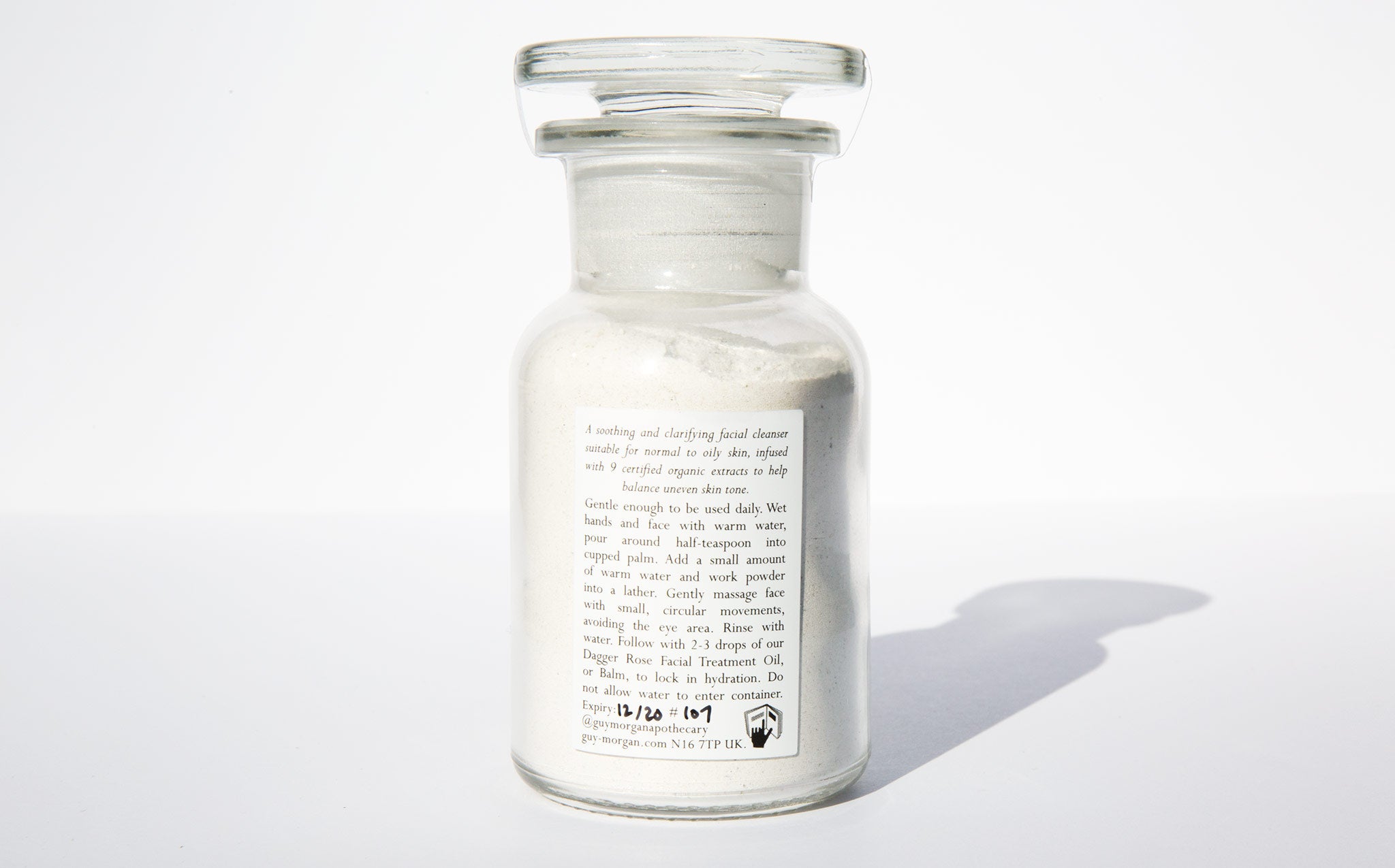 Gentle enough to be used daily. Wet hands and face with warm water, pour approximately half of a teaspoon into cupped palm. Add a small amount of warm water and work powder into a lather. Gently massage into face with small, circular movements, avoiding the eye area. Rinse with water.