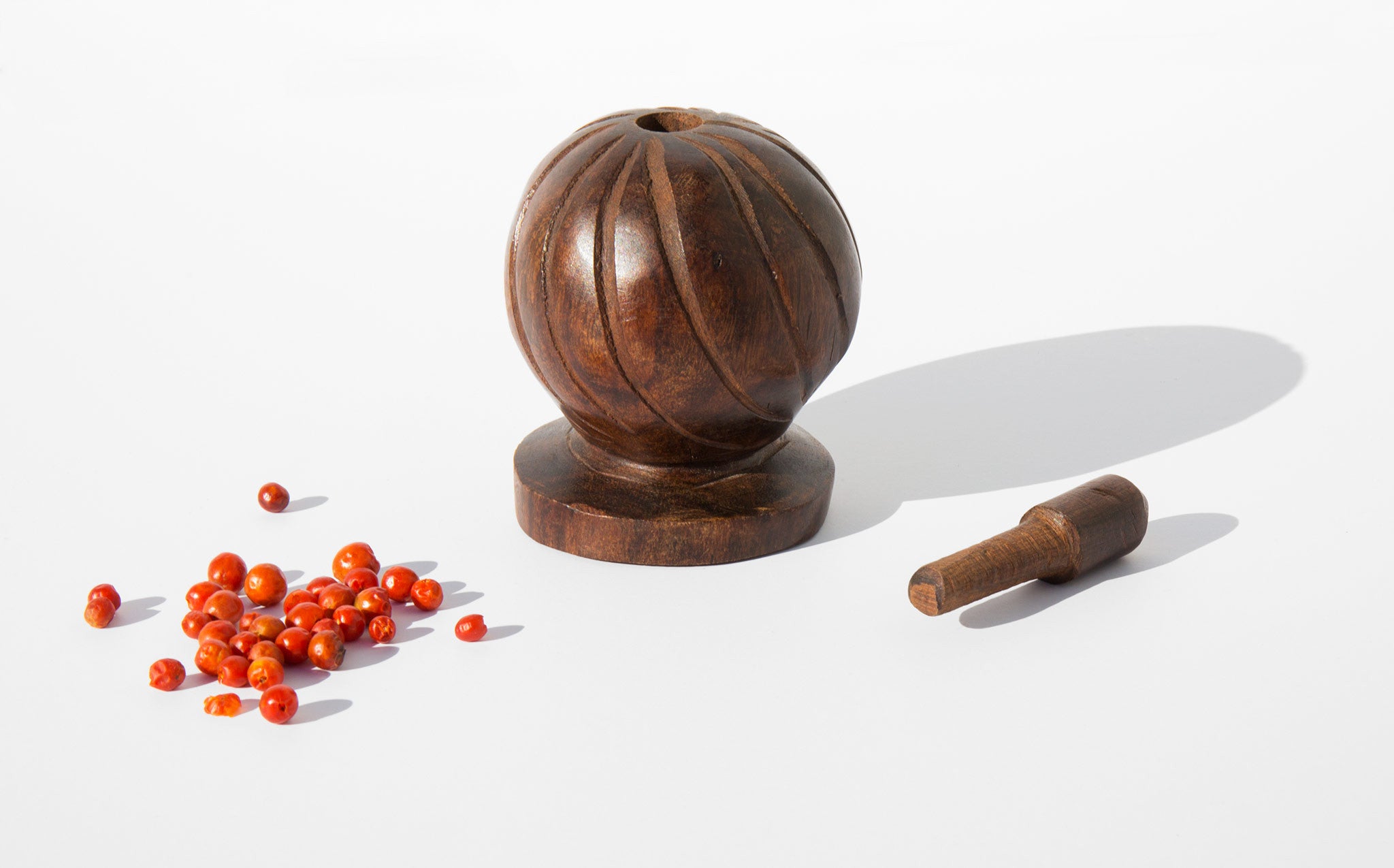 Chiltepin hand grinder, made of solid ironwood and carved by artisans in Magdalena Mexico.