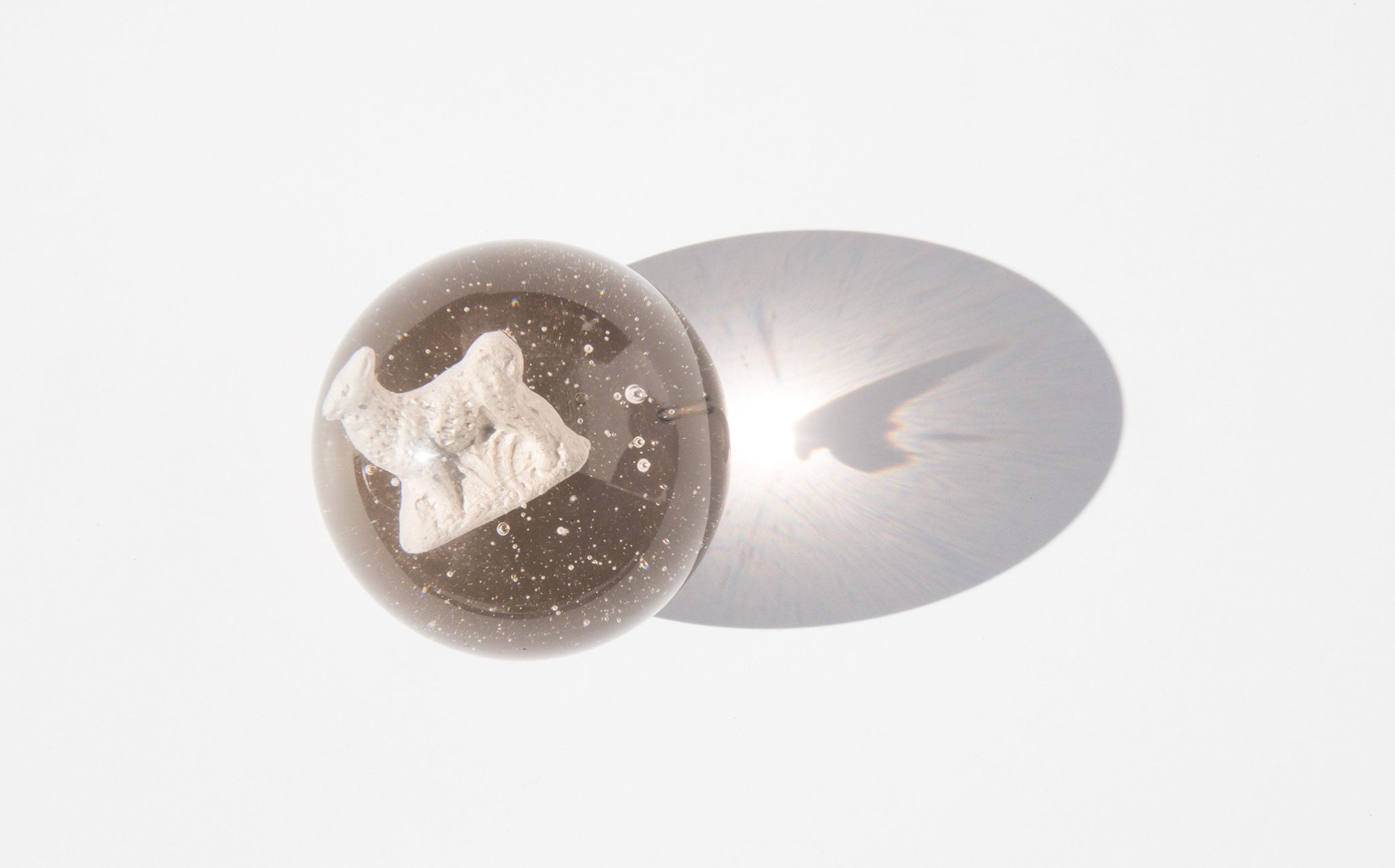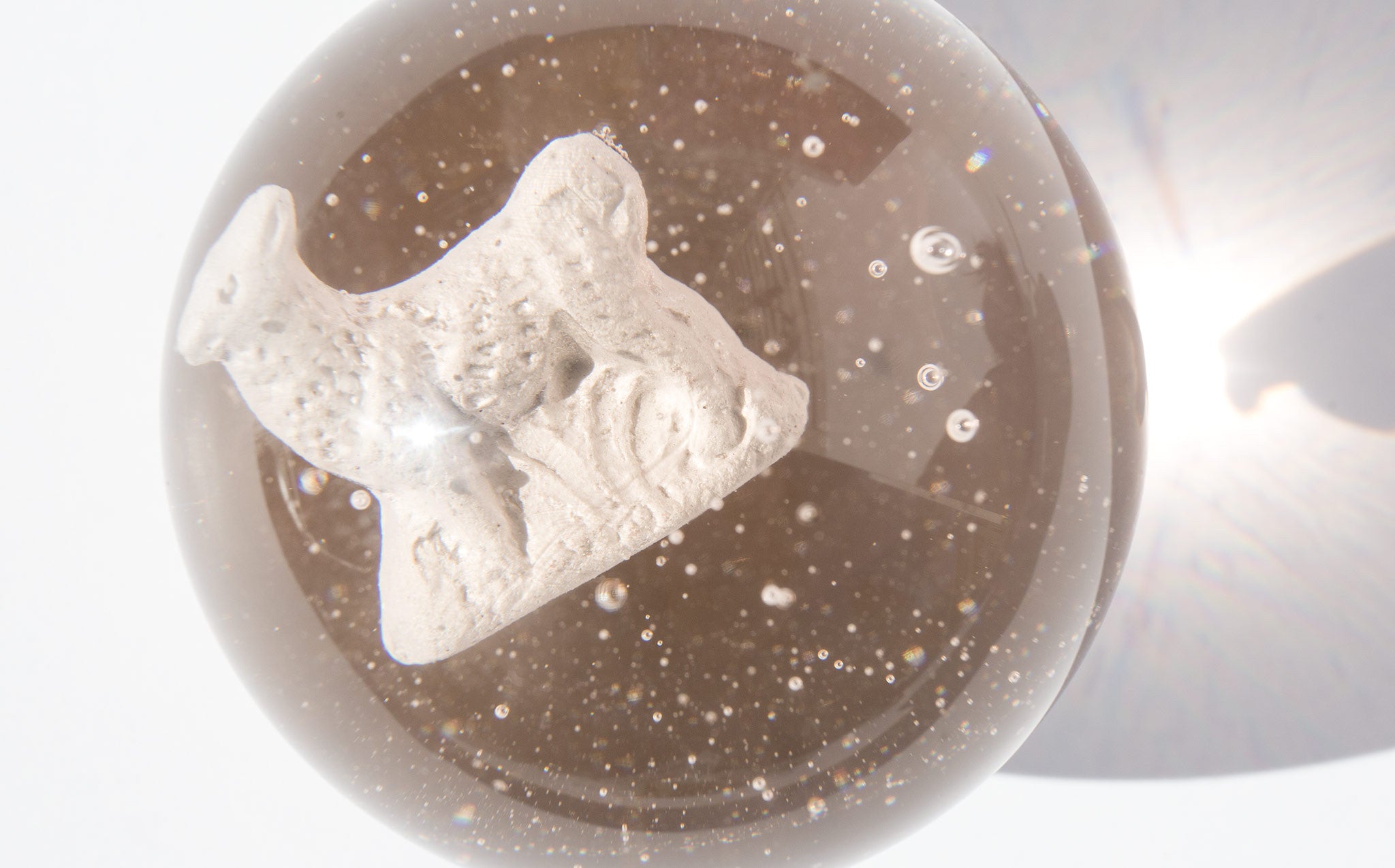 A sulphide refers to a white clay figure that was inserted into molten glass. The insertion was done by hand and the quality of each sulphide marble was greatly affected by the skill of its maker. The artisan has to try to center the figure as best he could, and the clay figure had to be heated to the same temperature as the glass or the marble would crack or shatter during the process. Additionally, the maker needed just enough air to be trapped around the clay figure to give it its signature silvery sheen but too much air would obscure the viewing of the figure with a reflection when the marble was finished.