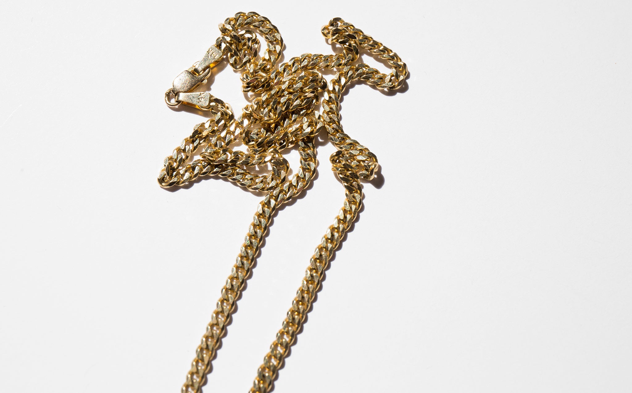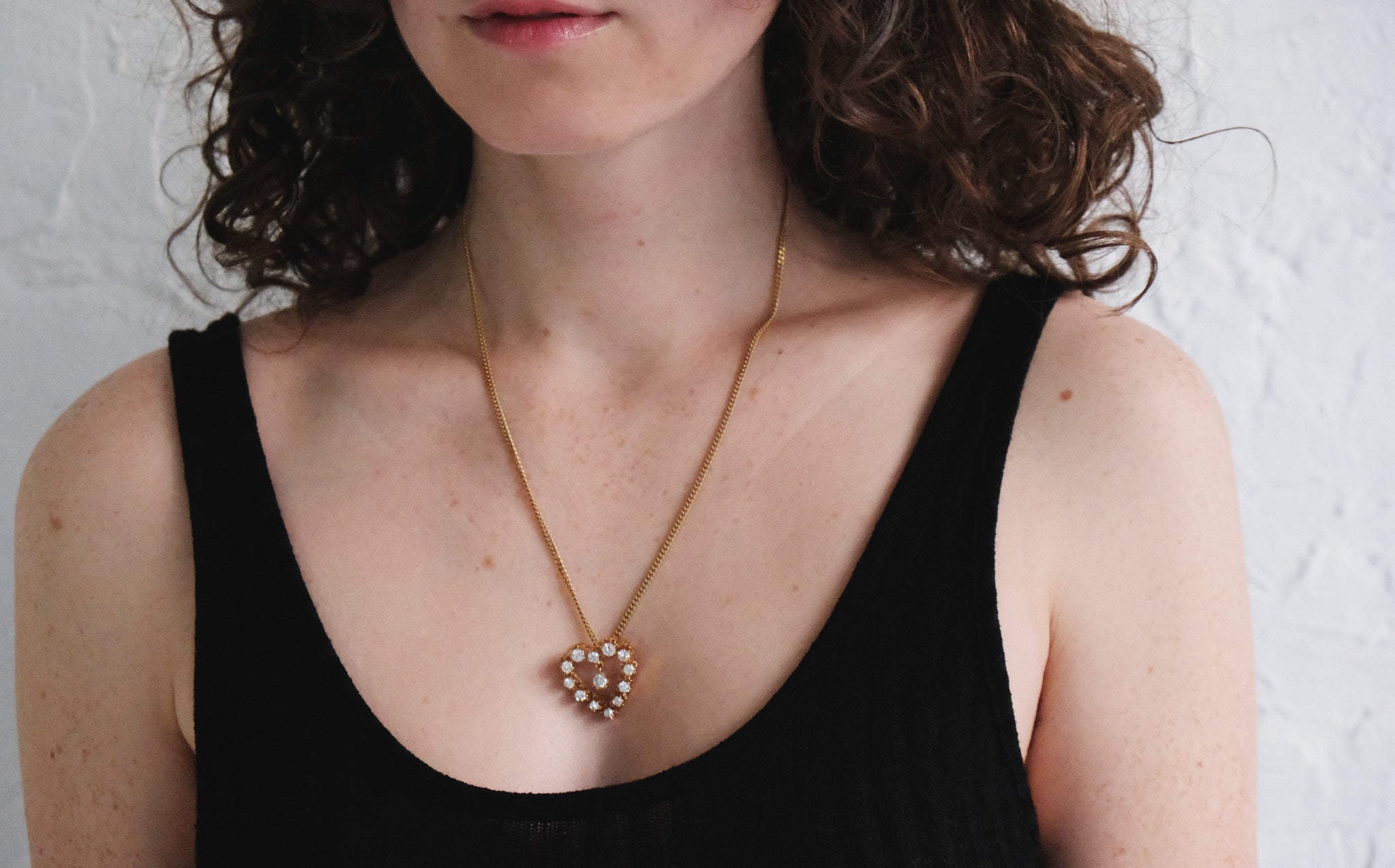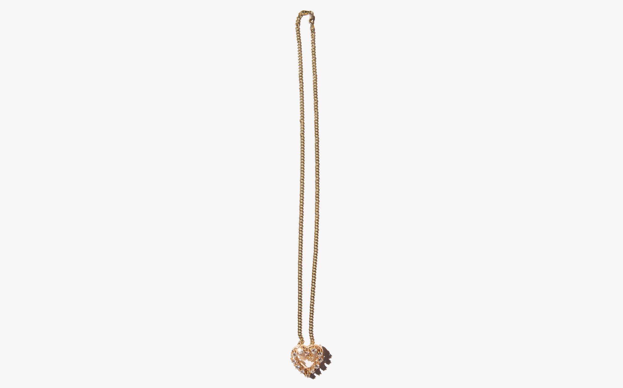 A glittery 14k and diamond heart charm with a total diamond weight of 2 ct on a thick link 14k gold chain.