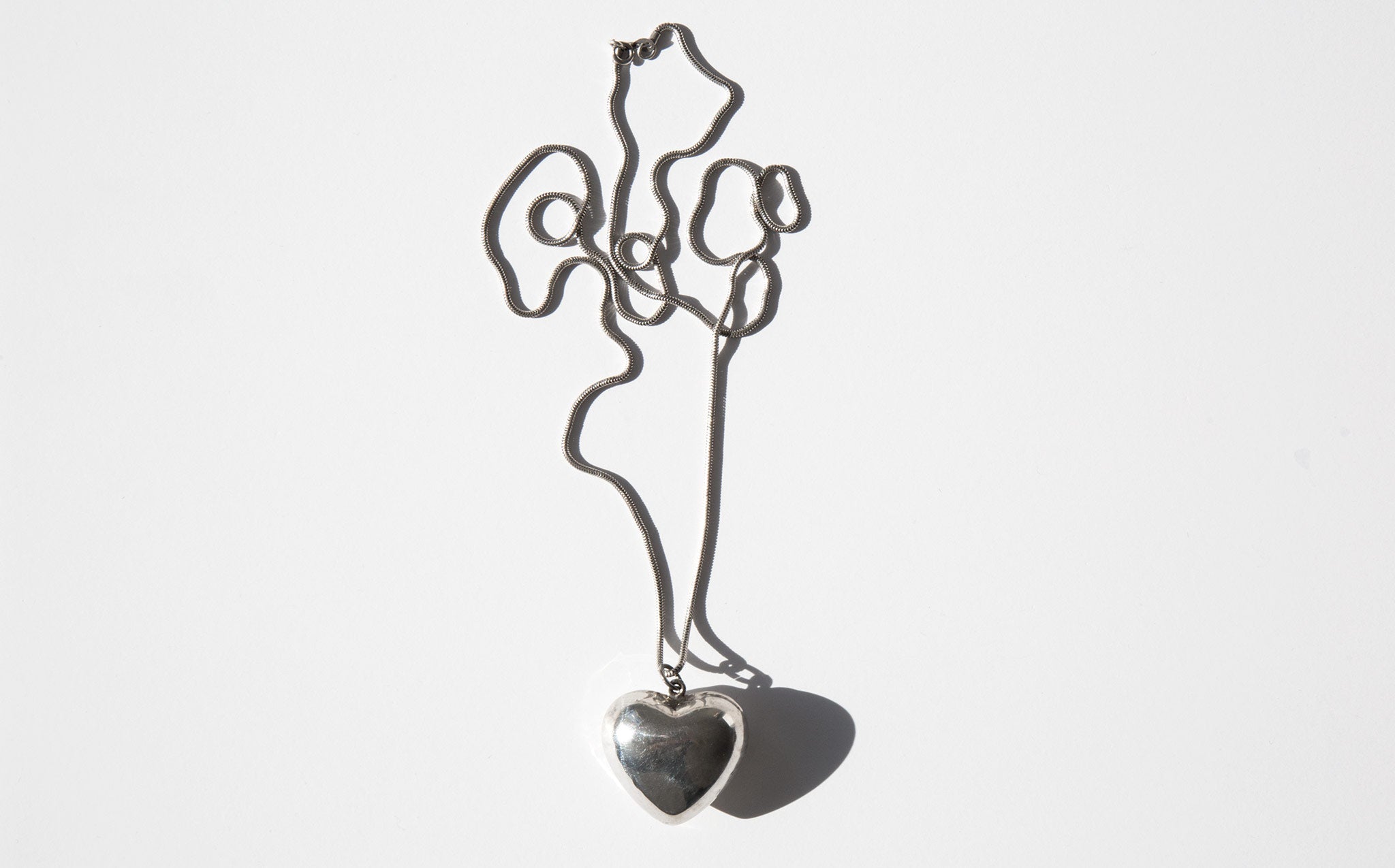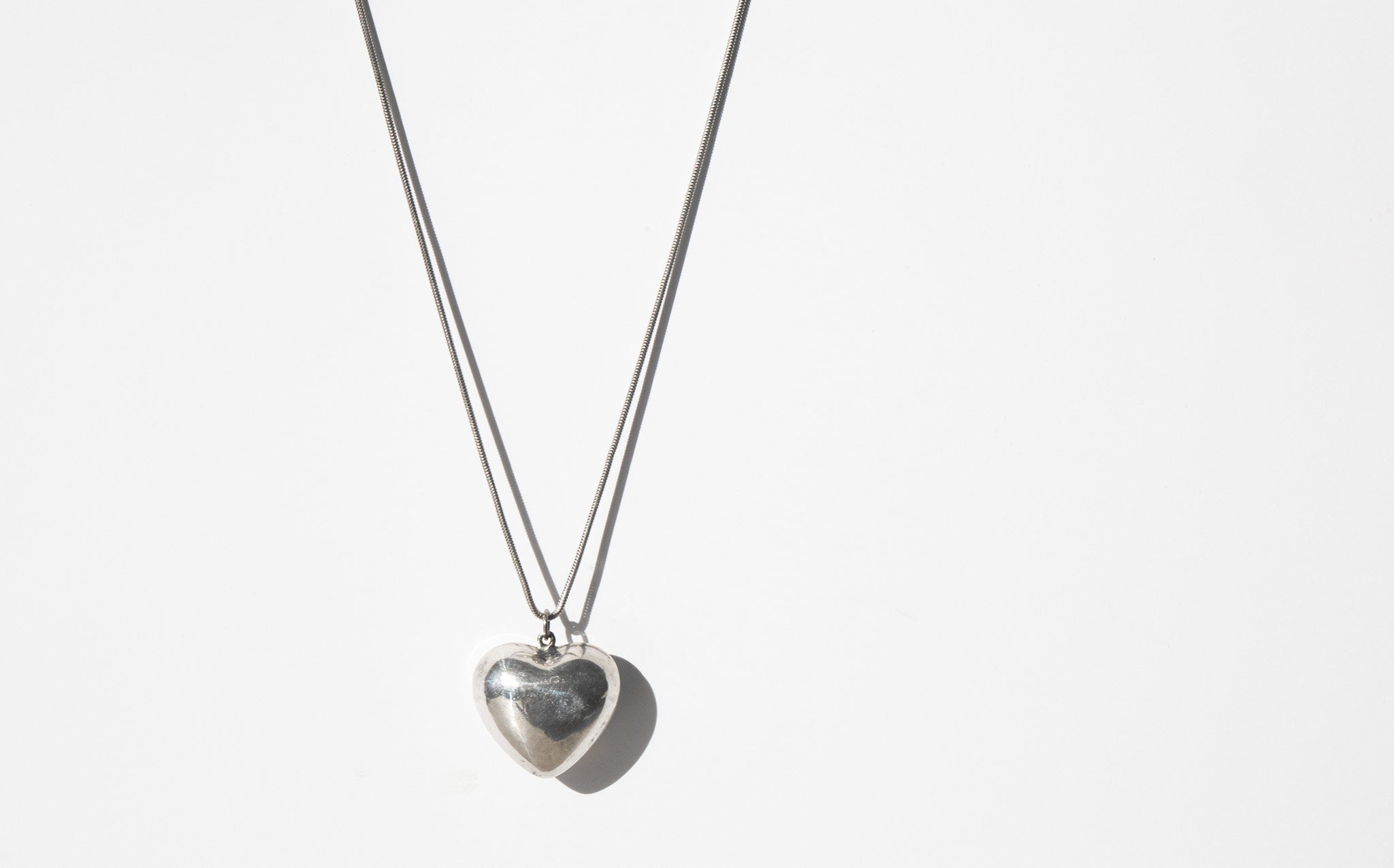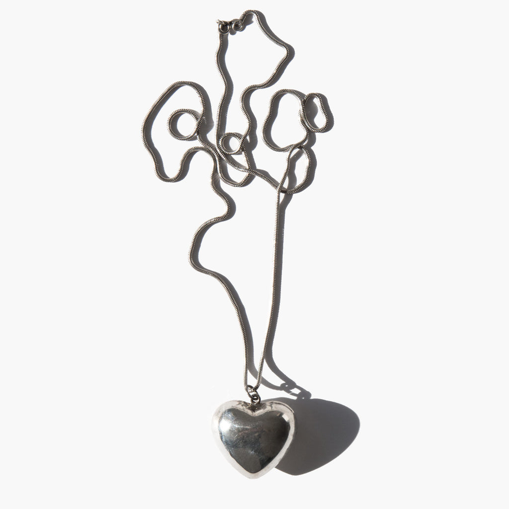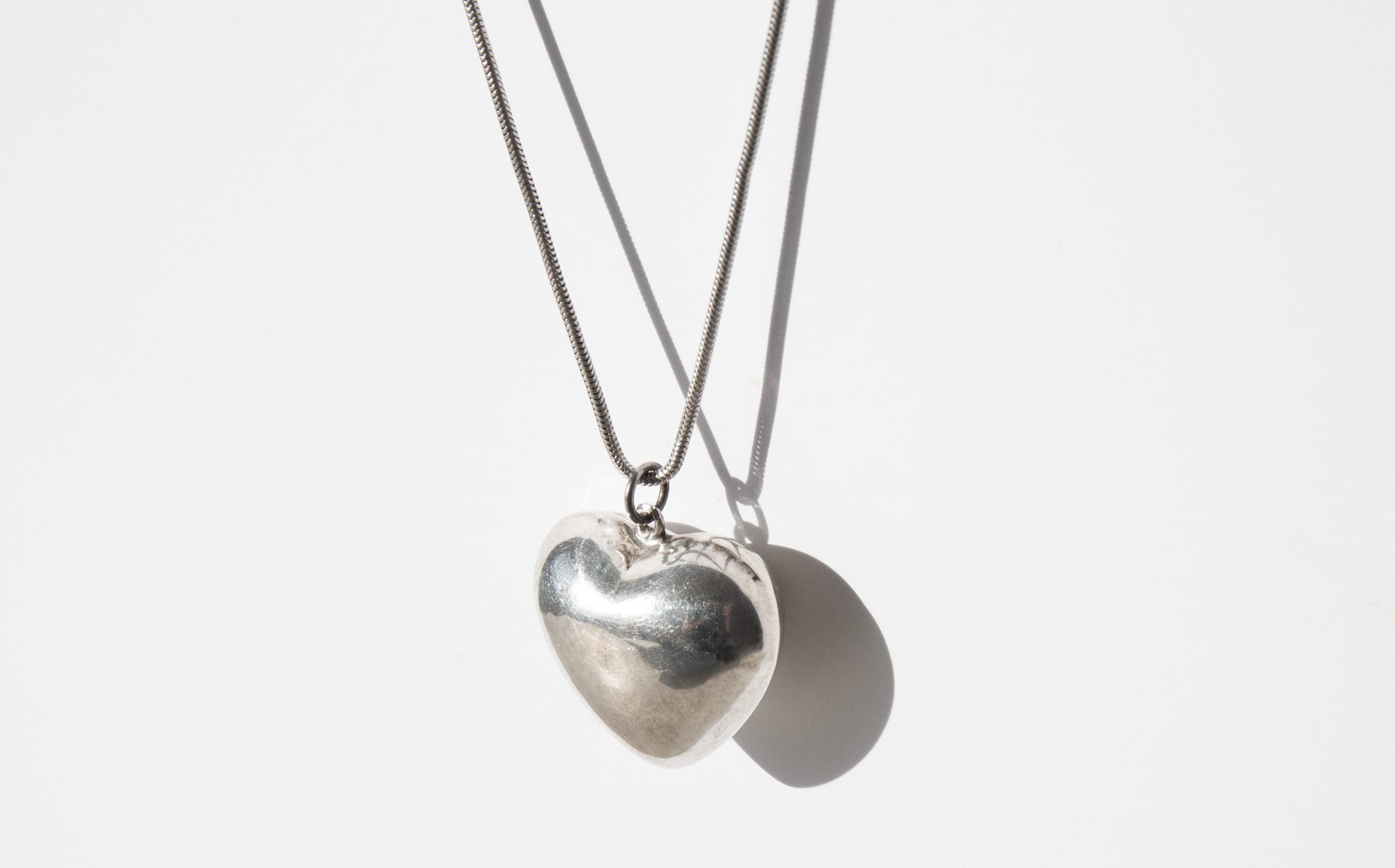 Sterling silver puff heart charm on a sterling silver snake chain.