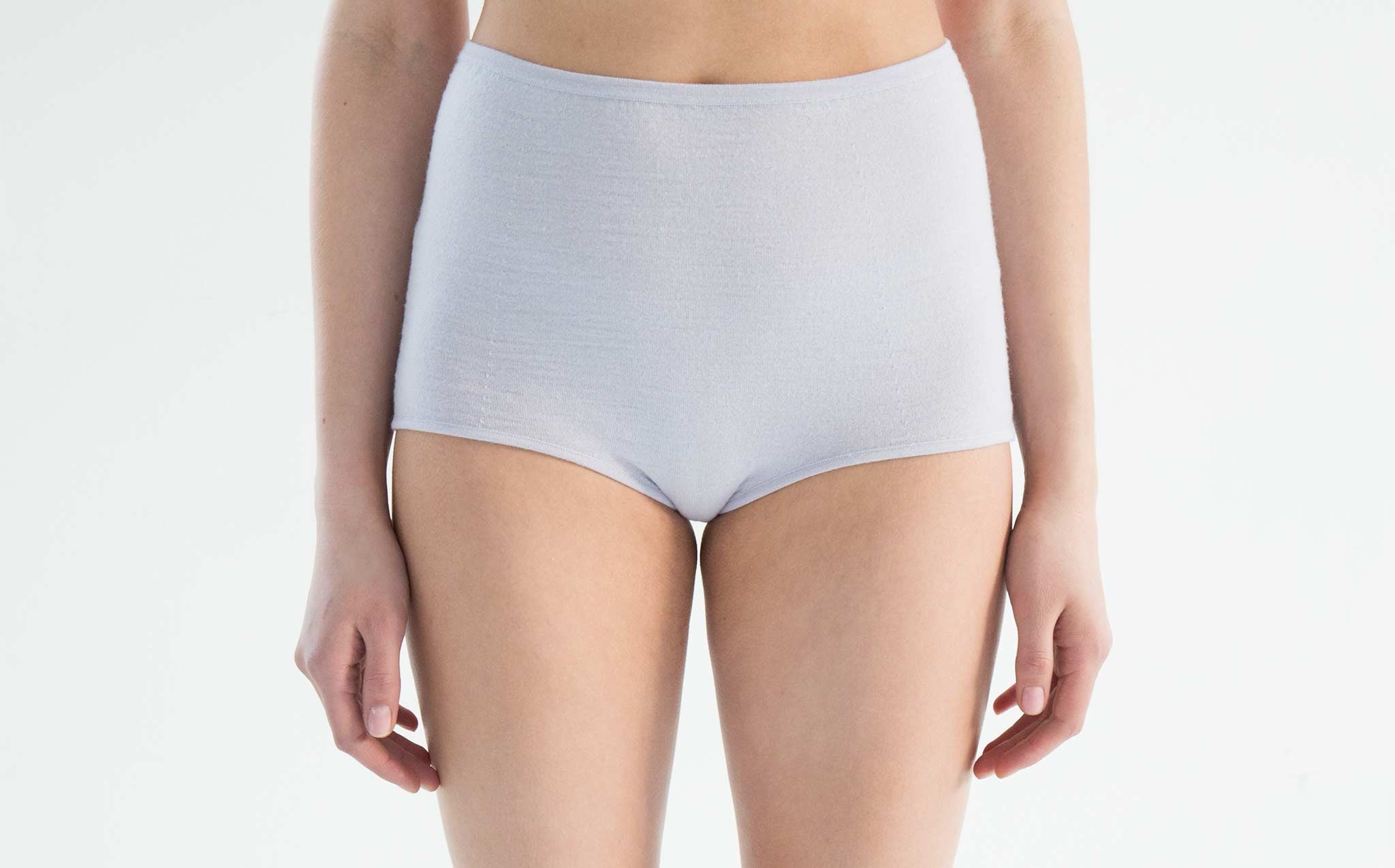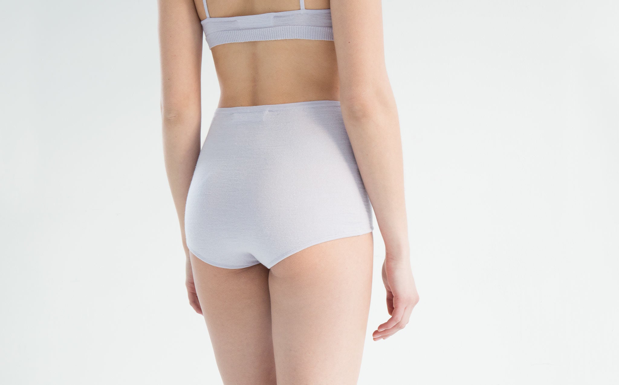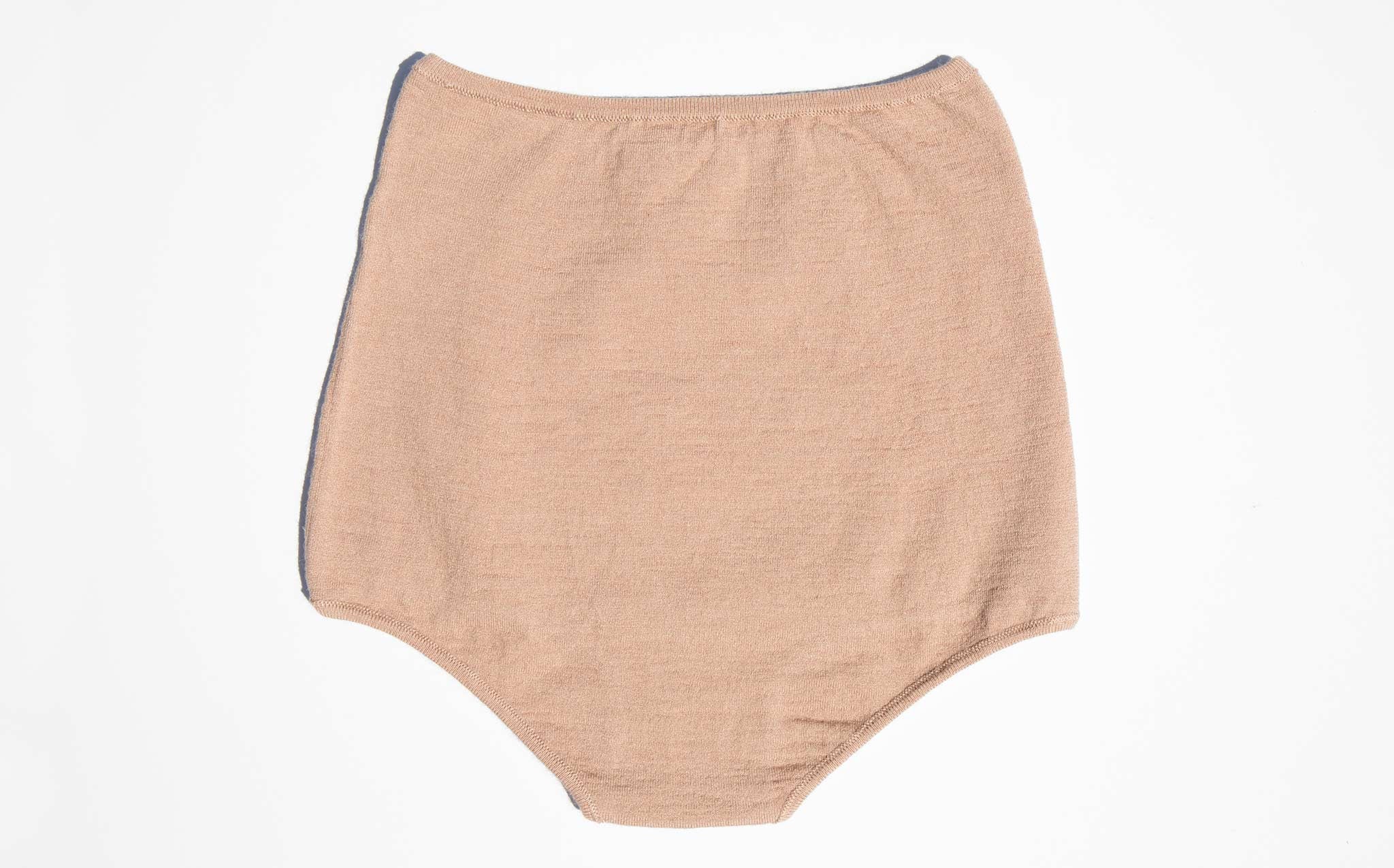 The Hesperios Margot Undies are a luxurious and functional high waisted panty, knit in the USA of an extremely soft mix of baby alpaca and silk. This item is FINAL SALE.