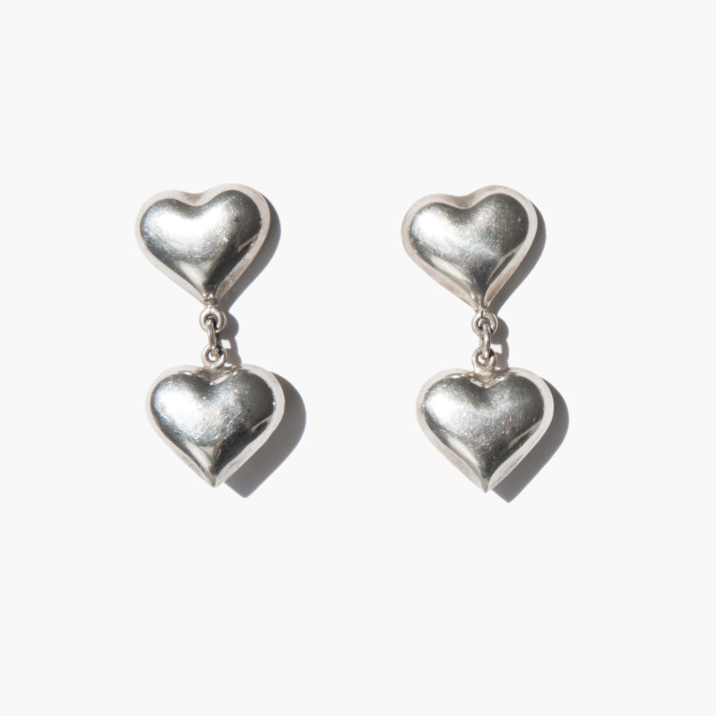 Mexican sterling silver puff heart earrings.