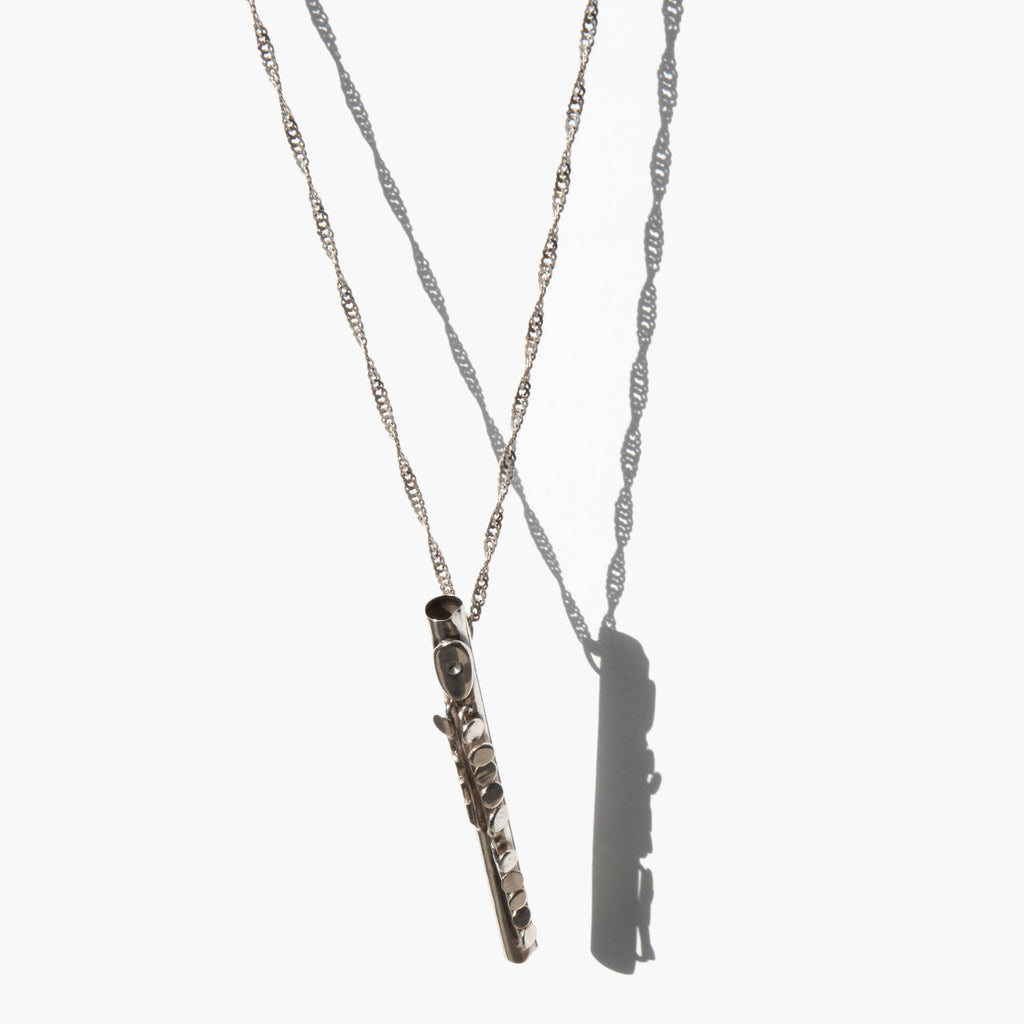 Detailed, handmade sterling silver flute charm on a sterling silver twist link chain. Flutes have symbolized many things in art and literature but are often seen as symbols of alluring sexuality and their music a suggestive invitation.