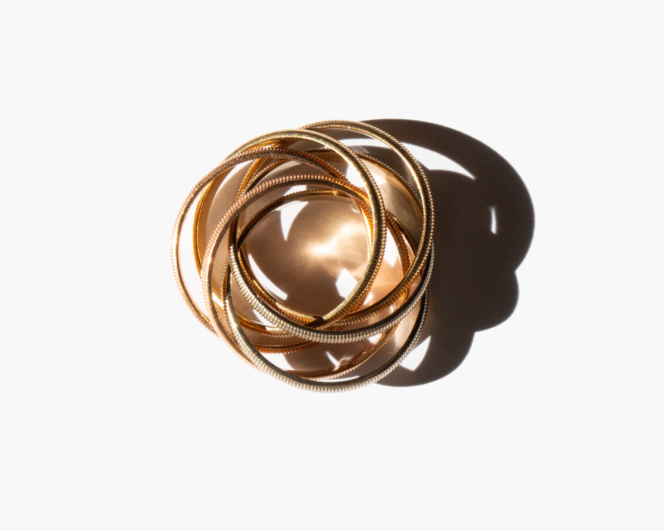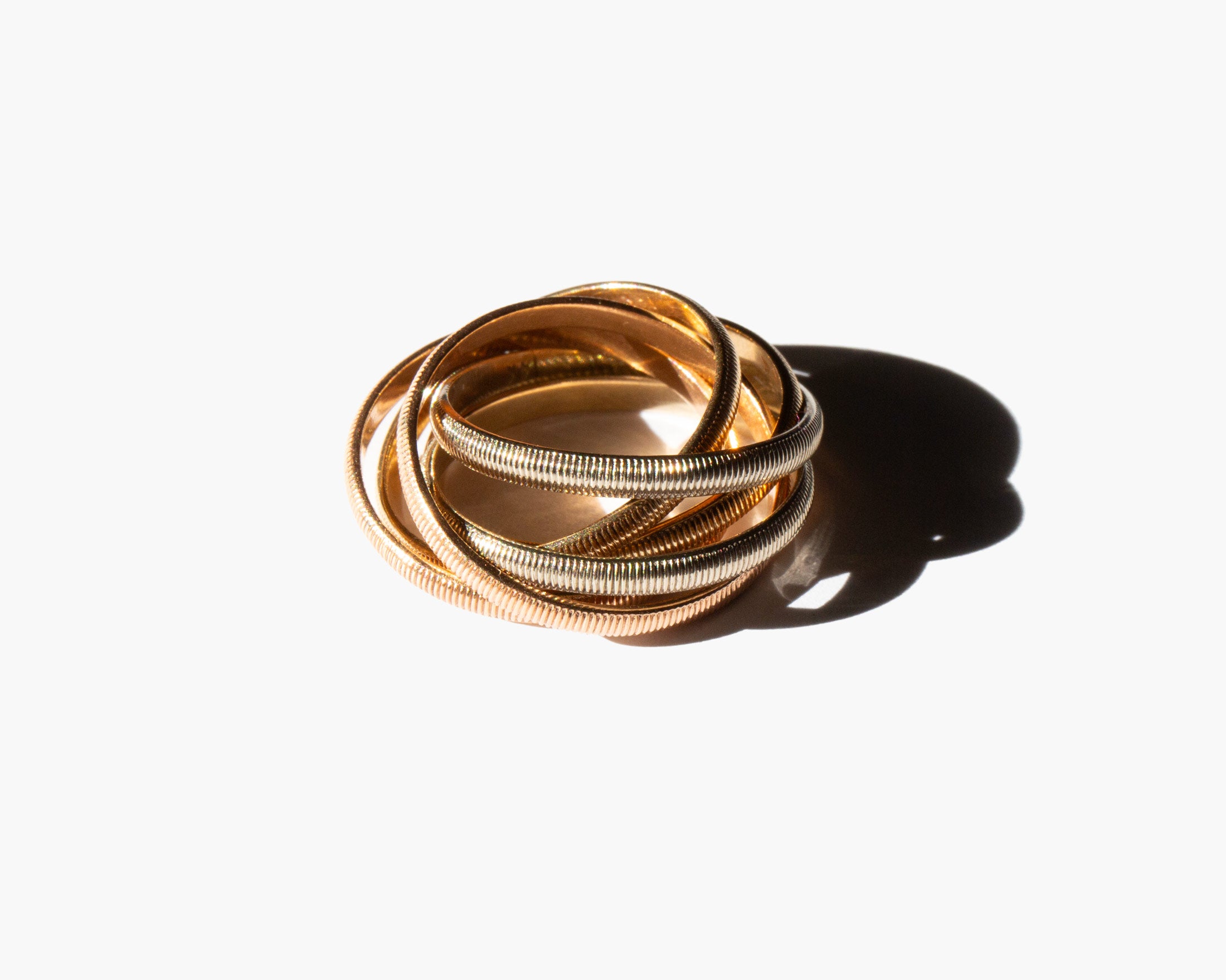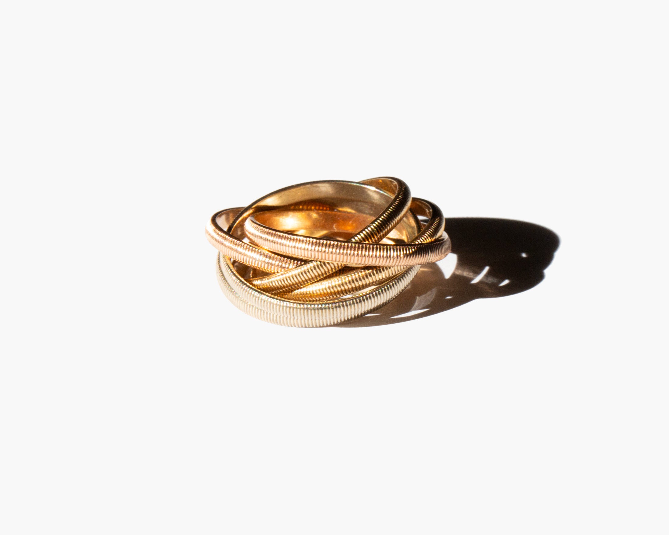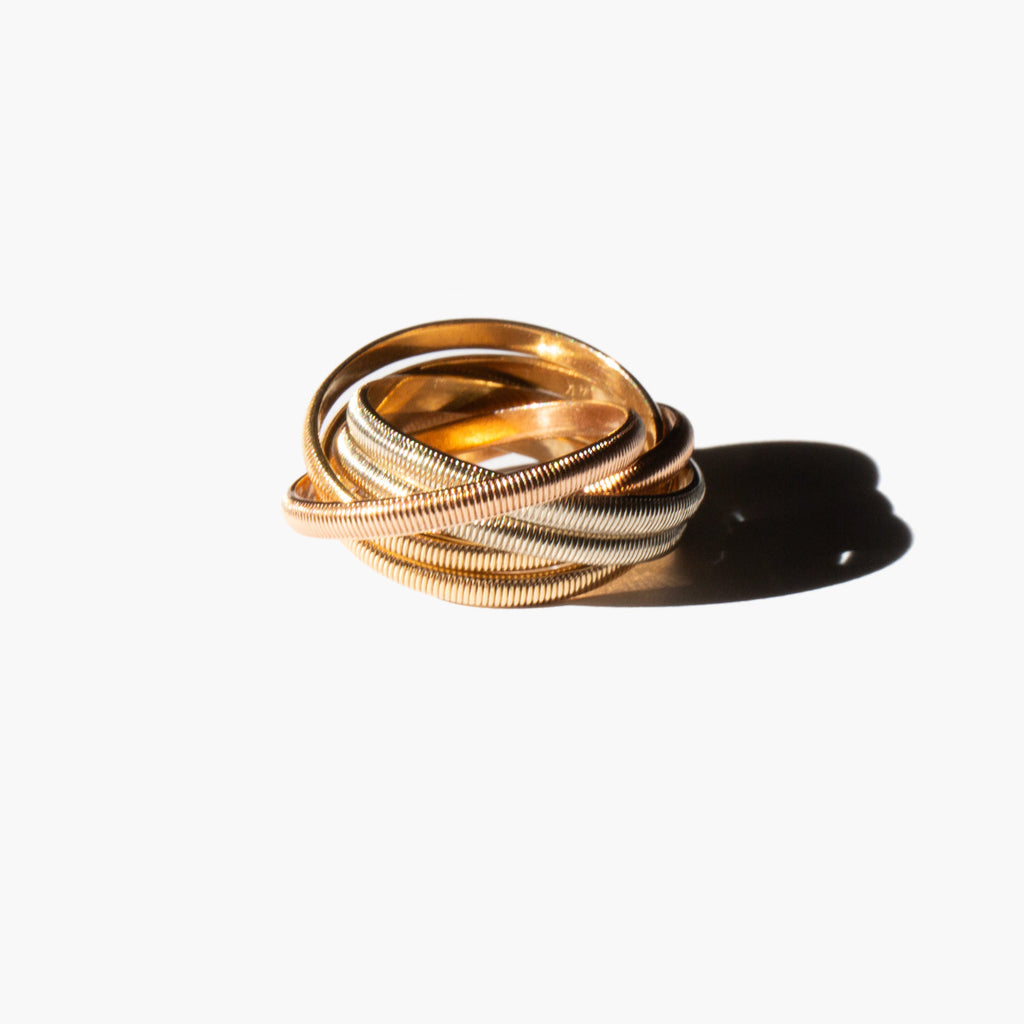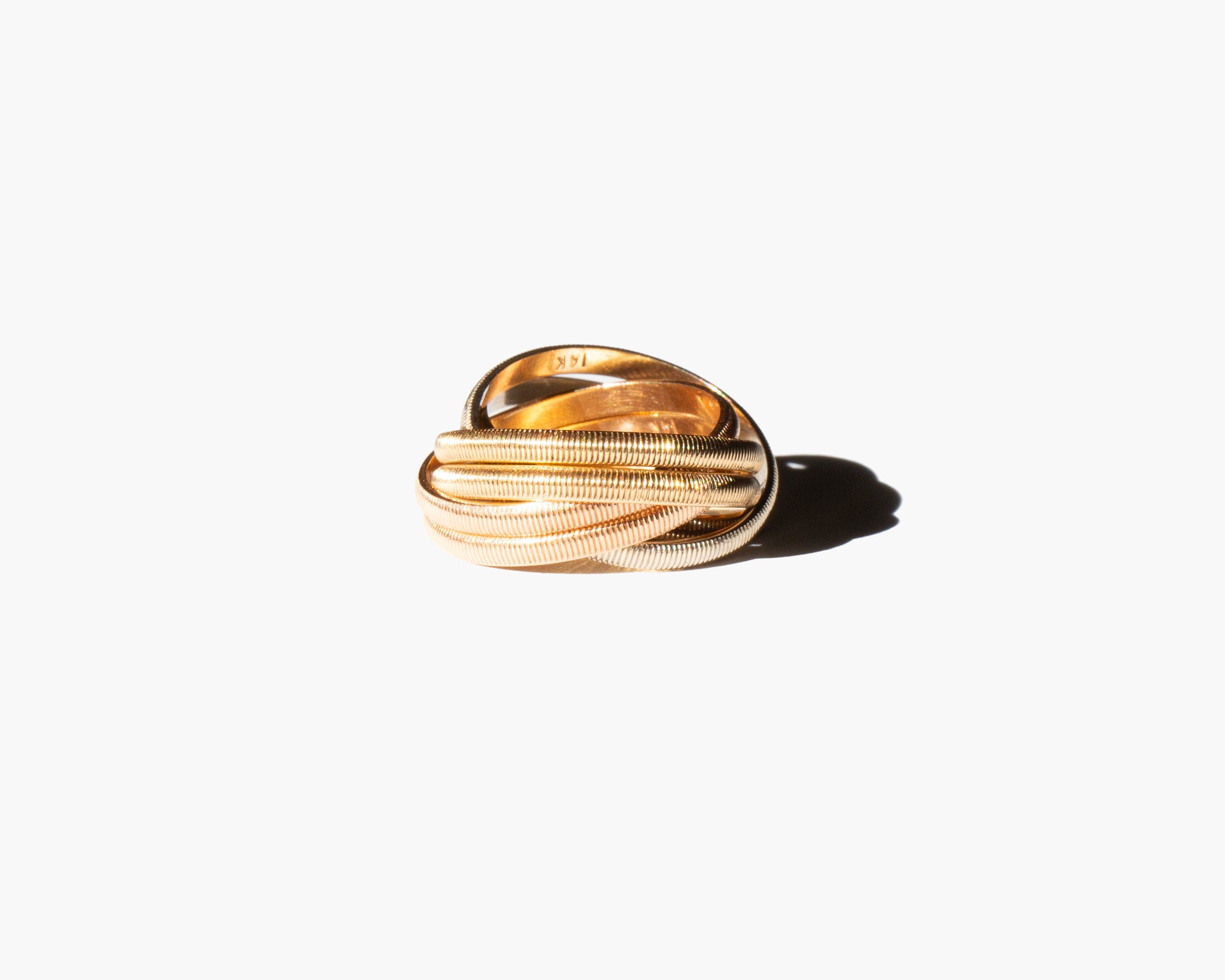 Elegant 14k white, yellow, and rose gold infinity ring.