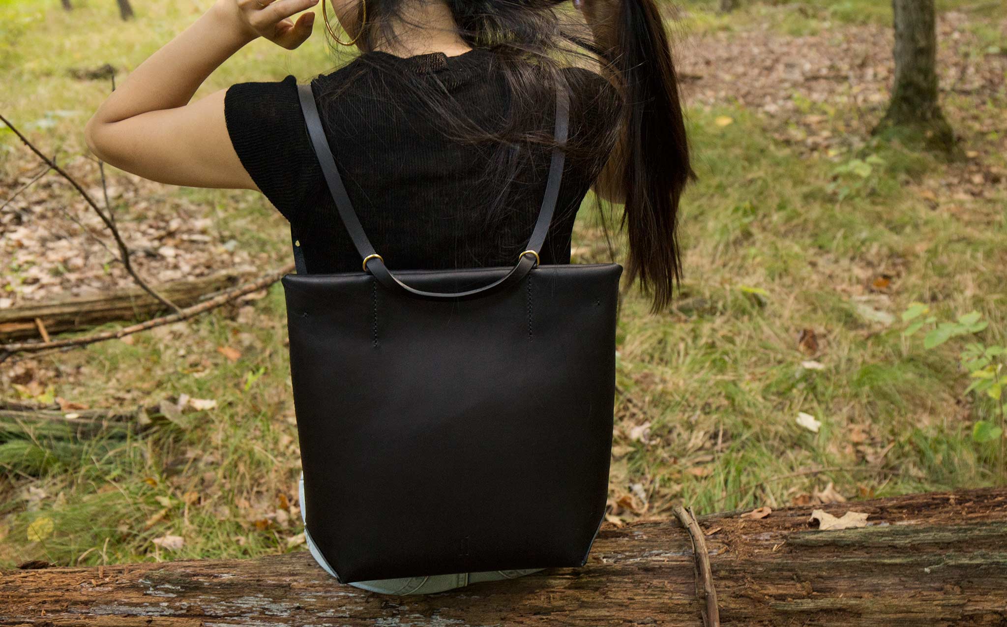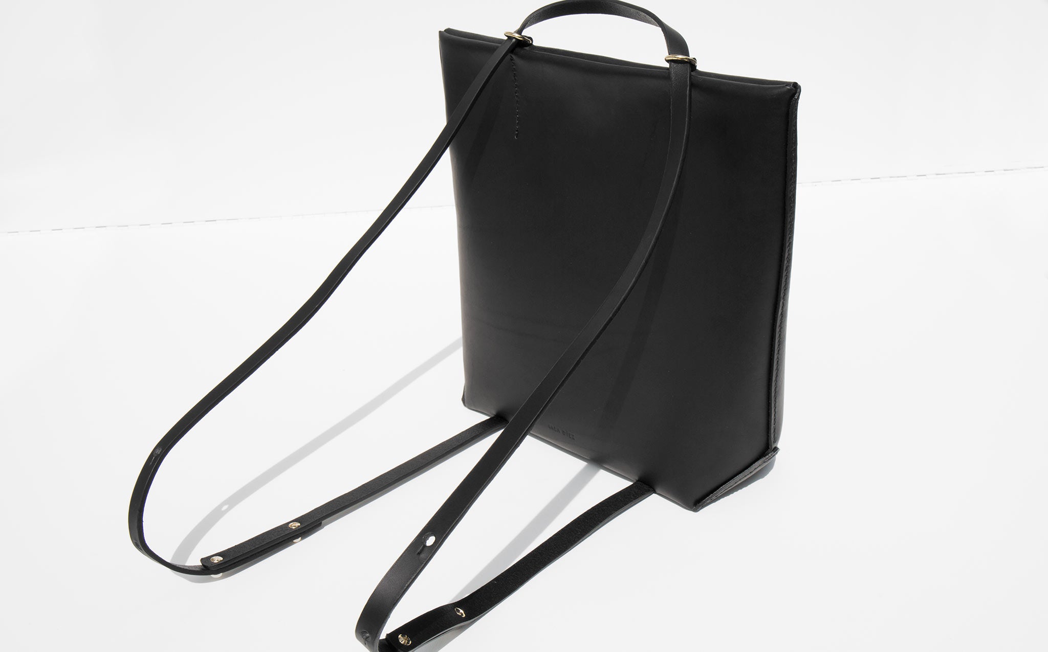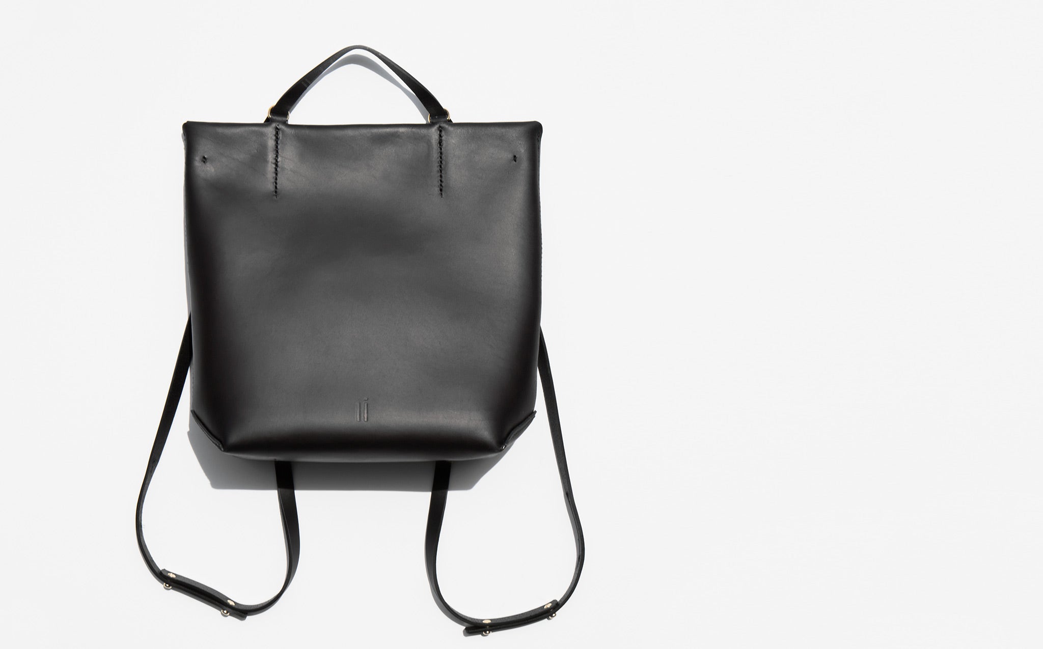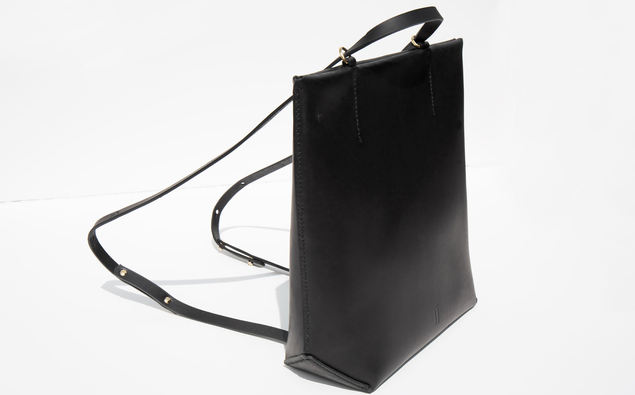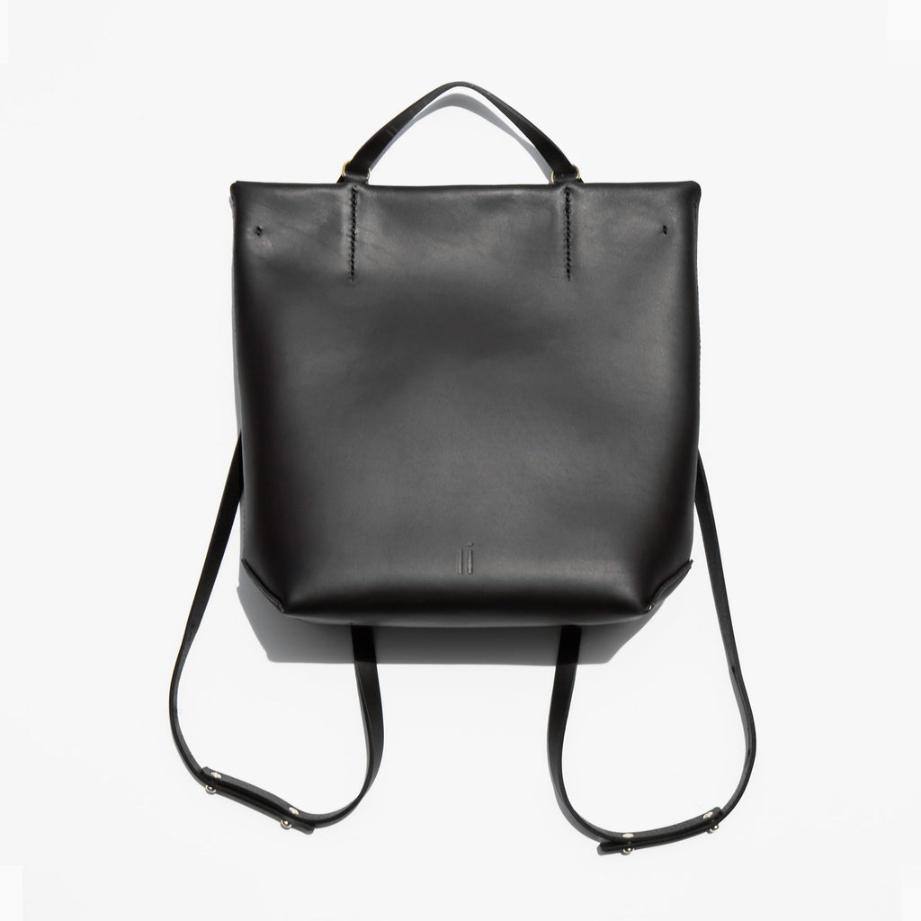The Iala Diez Black Eolie Backpack is a convertible everyday bag that can be carried as a backpack or shoulder bag. Hand sewn in the Iala Diez workshop using vegetable tanned leather from Spain, the clean and elegantly sporty bag is unlined and miraculously lightweight.