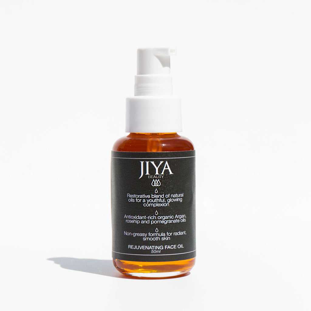 Jiya Beauty Rejuvenating Face Oil is a restorative blend of natural oils for a youthful, glowing complexion. Made with antioxidant-rich organic argan, rosehip and pomegranate oils, this non-greasy formula should be used daily for radiant, smooth, and supple skin.