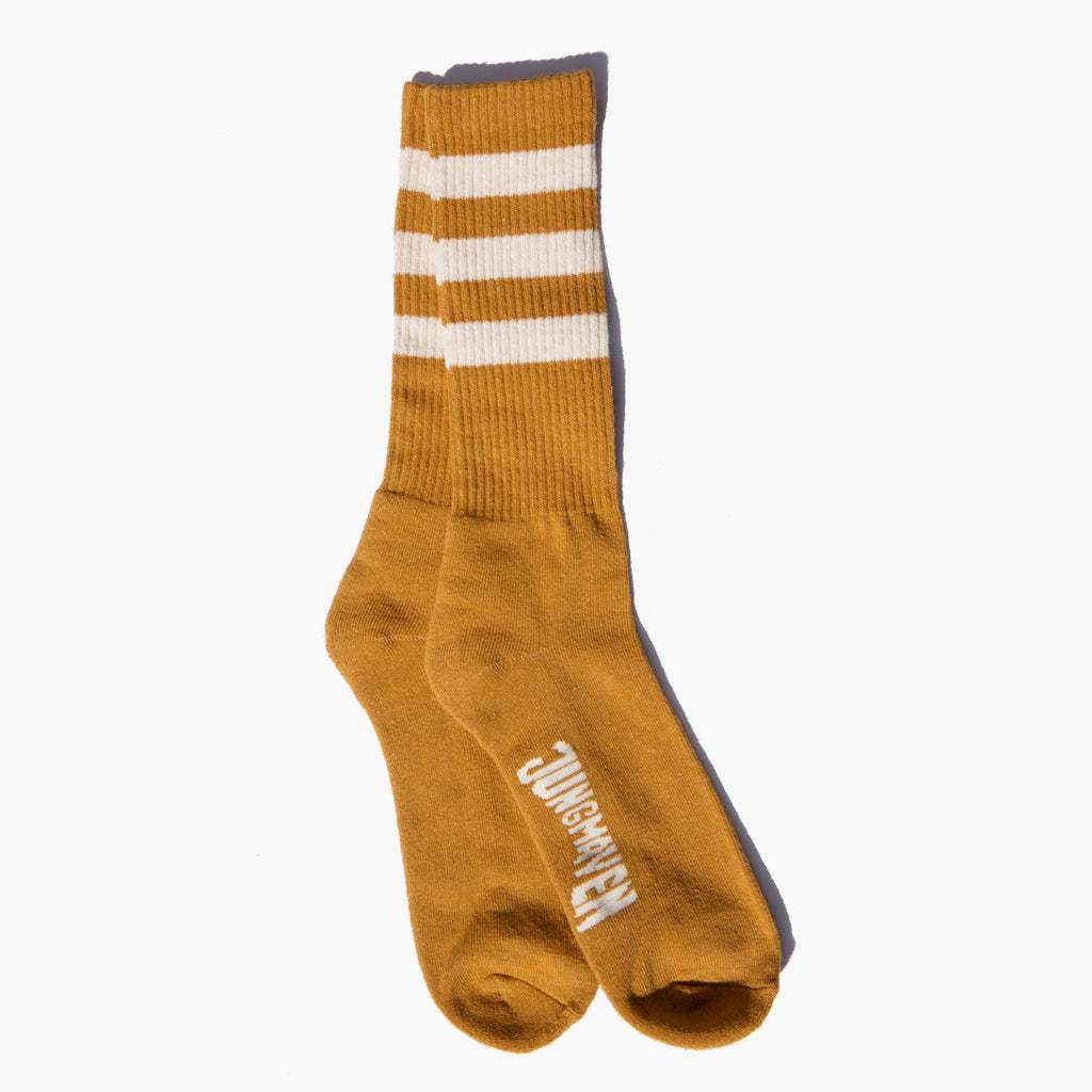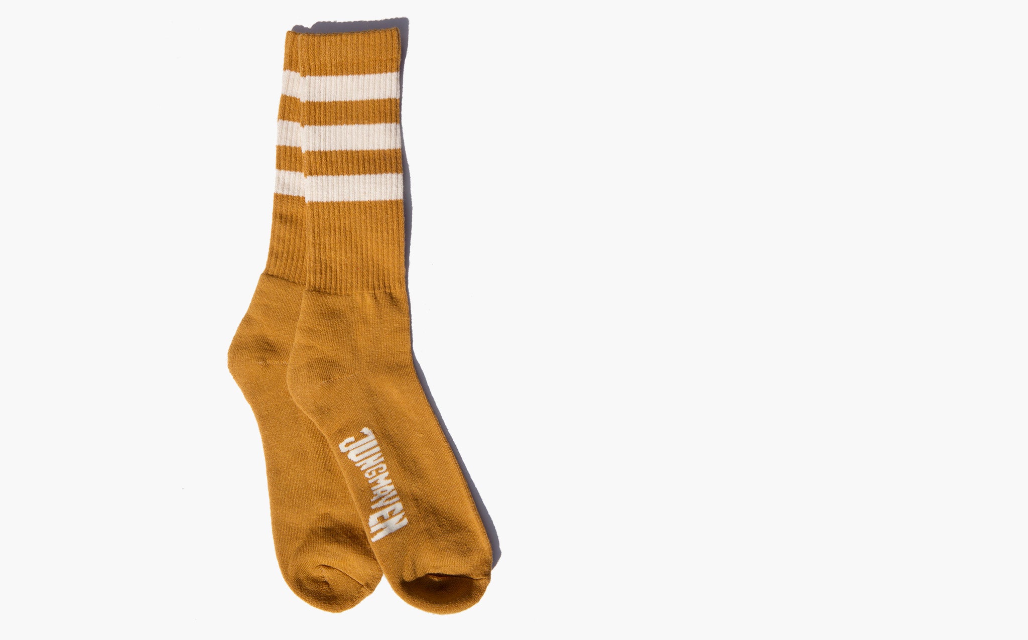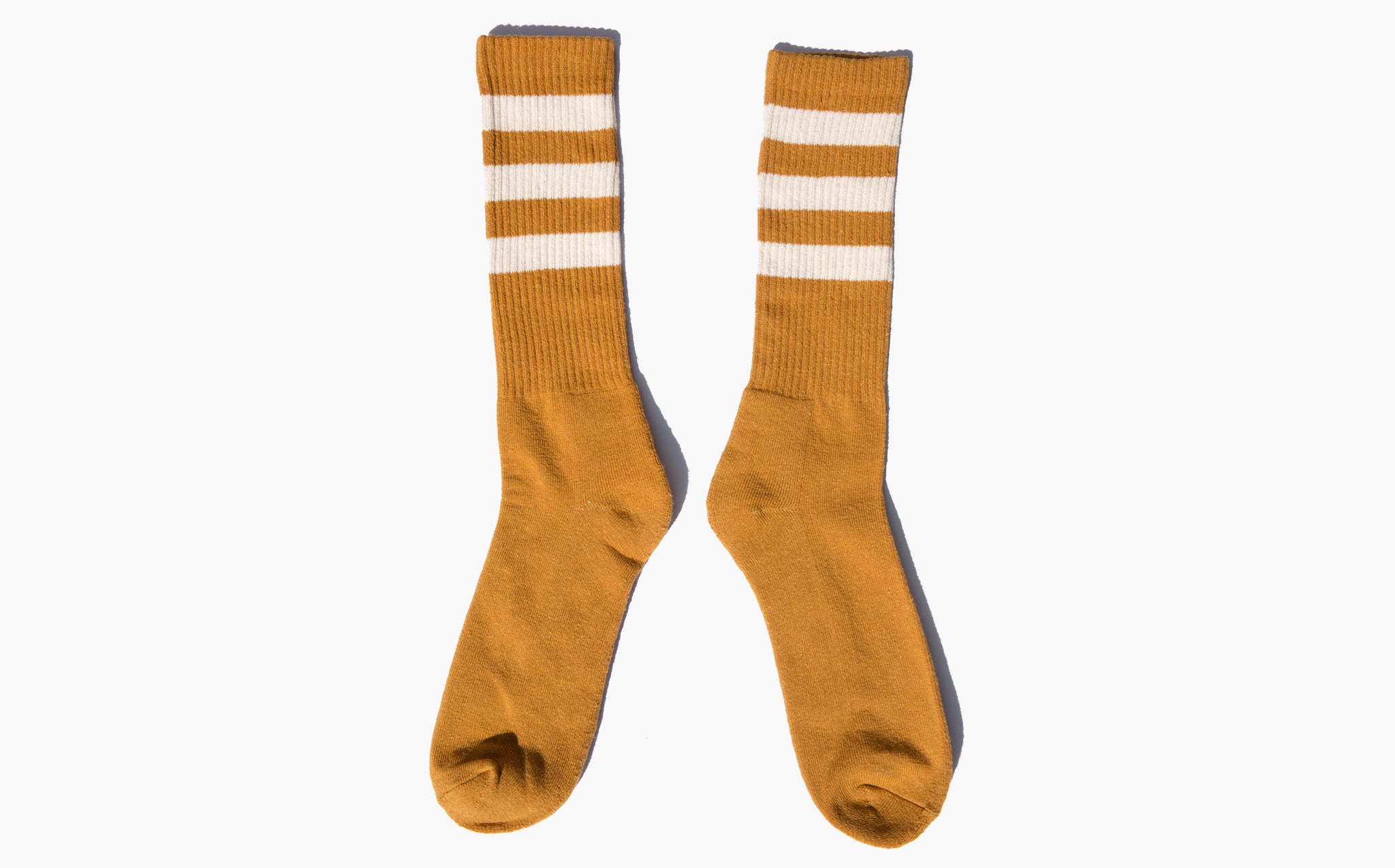 Old school stripe crew socks in a heavenly hemp and cotton blend.