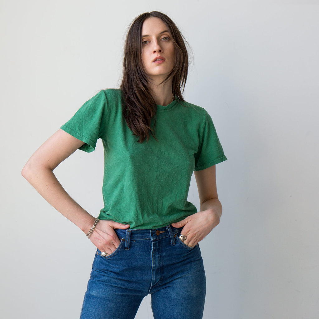 These just may be the perfect T-shirts. The right amount of slouch, the perfect roomy but flattering fit and somehow they magically look almost broken-in, like that T-shirt you still have from college and can't let go of. Designed and produced in Los Angeles of 55% hemp and 45% organic cotton and dyed locally under strict CA standards. To cut back on waste, Jungmaven does not use hangtags and ships its products with no packaging or plastics.