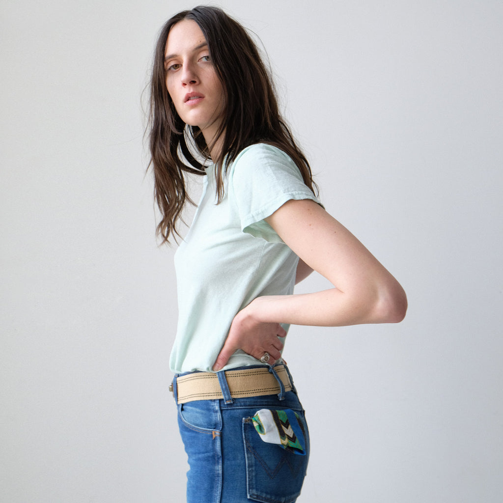 These just may be the perfect T-shirts. The right amount of slouch, the perfect roomy but flattering fit and somehow they magically look almost broken-in, like that T-shirt you still have from college and can't let go of. Designed and produced in Los Angeles of 55% hemp and 45% organic cotton and dyed locally under strict CA standards. To cut back on waste, Jungmaven does not use hangtags and ships its products with no packaging or plastics.