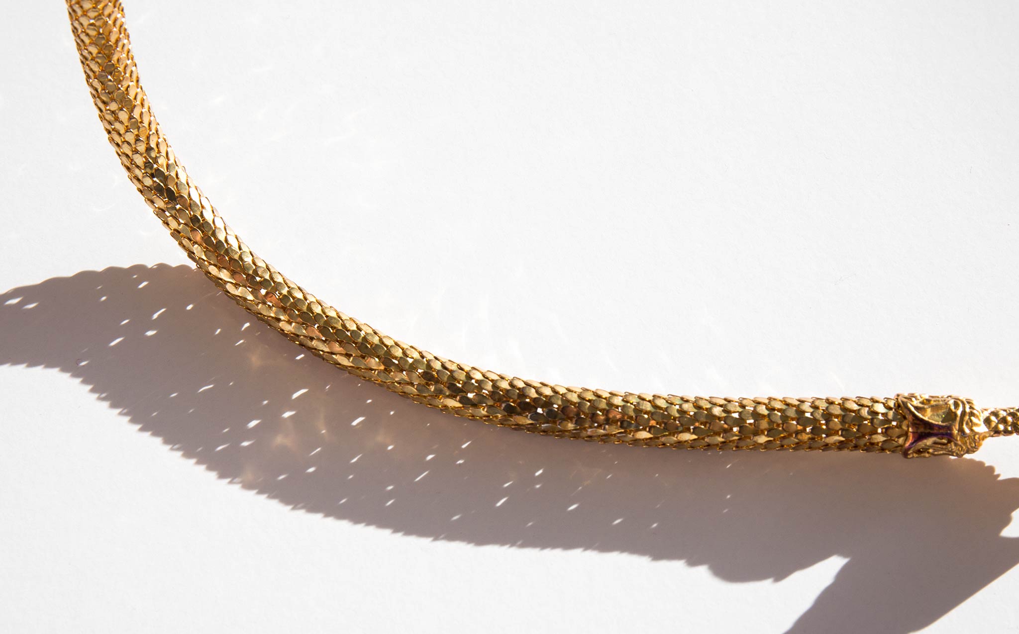 This necklace is vintage and shows some signs of age including darkened metal in some areas.