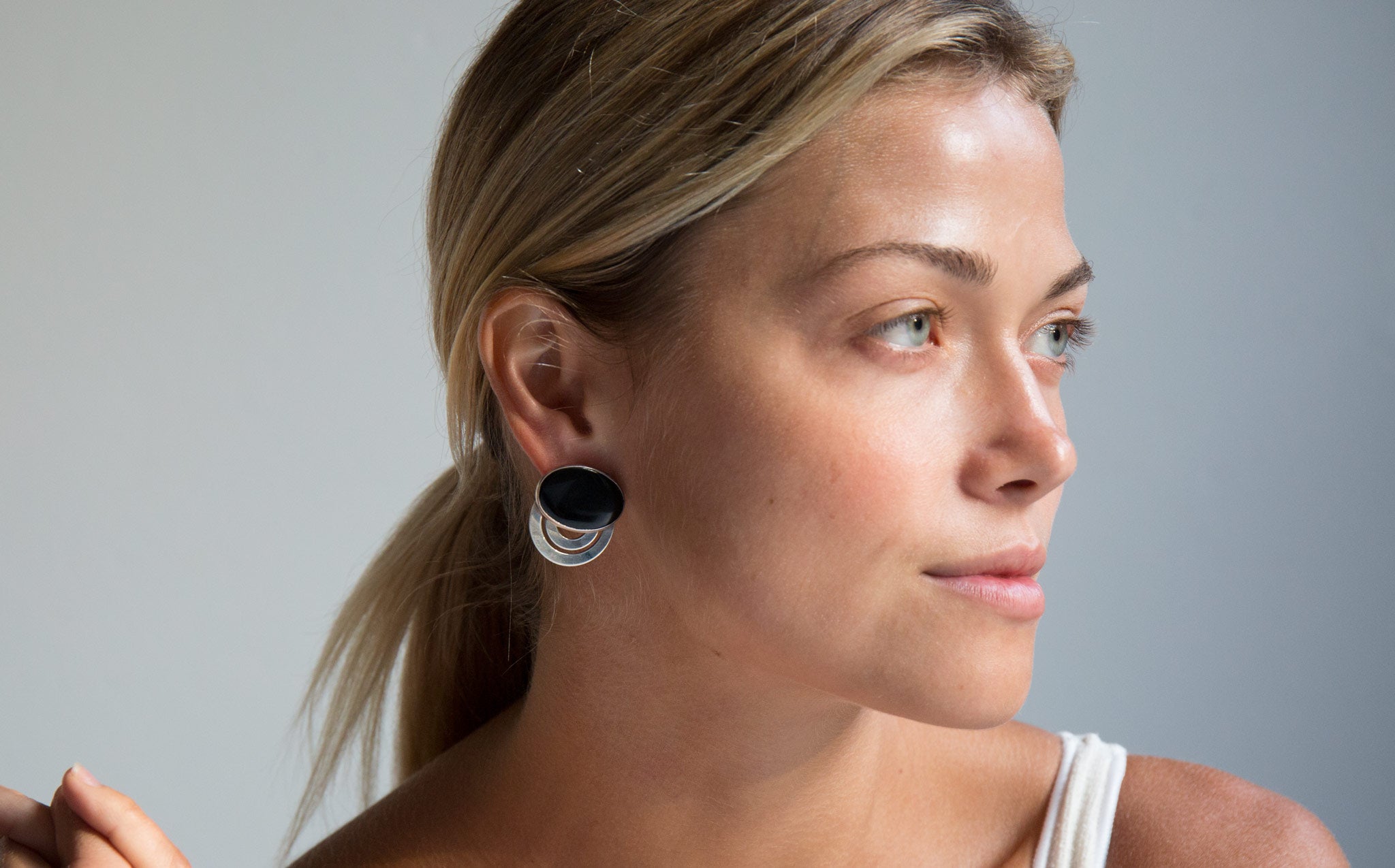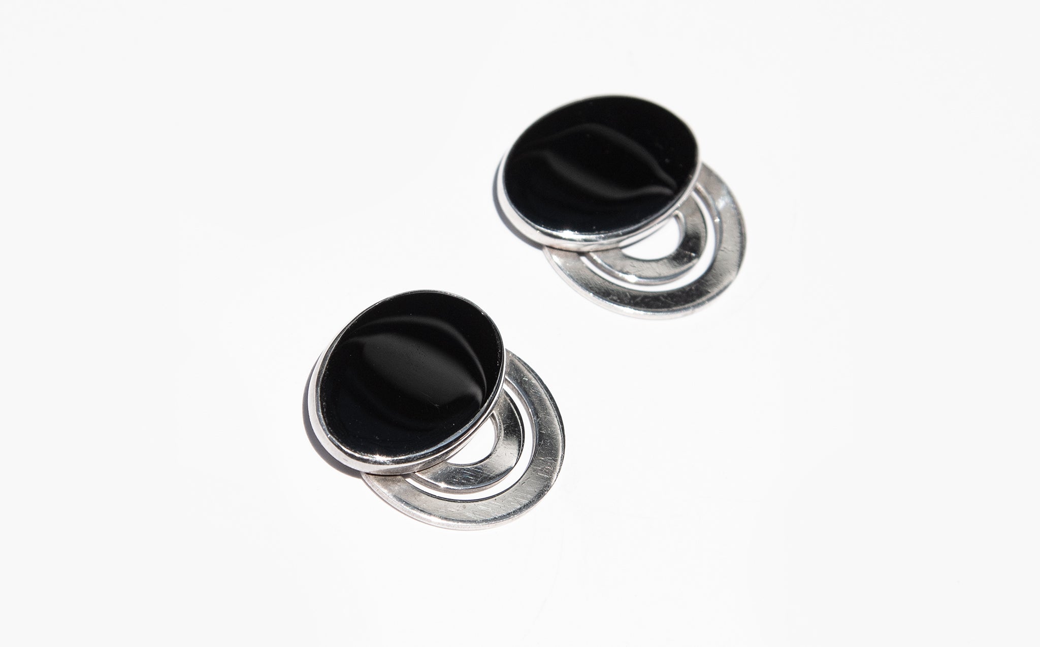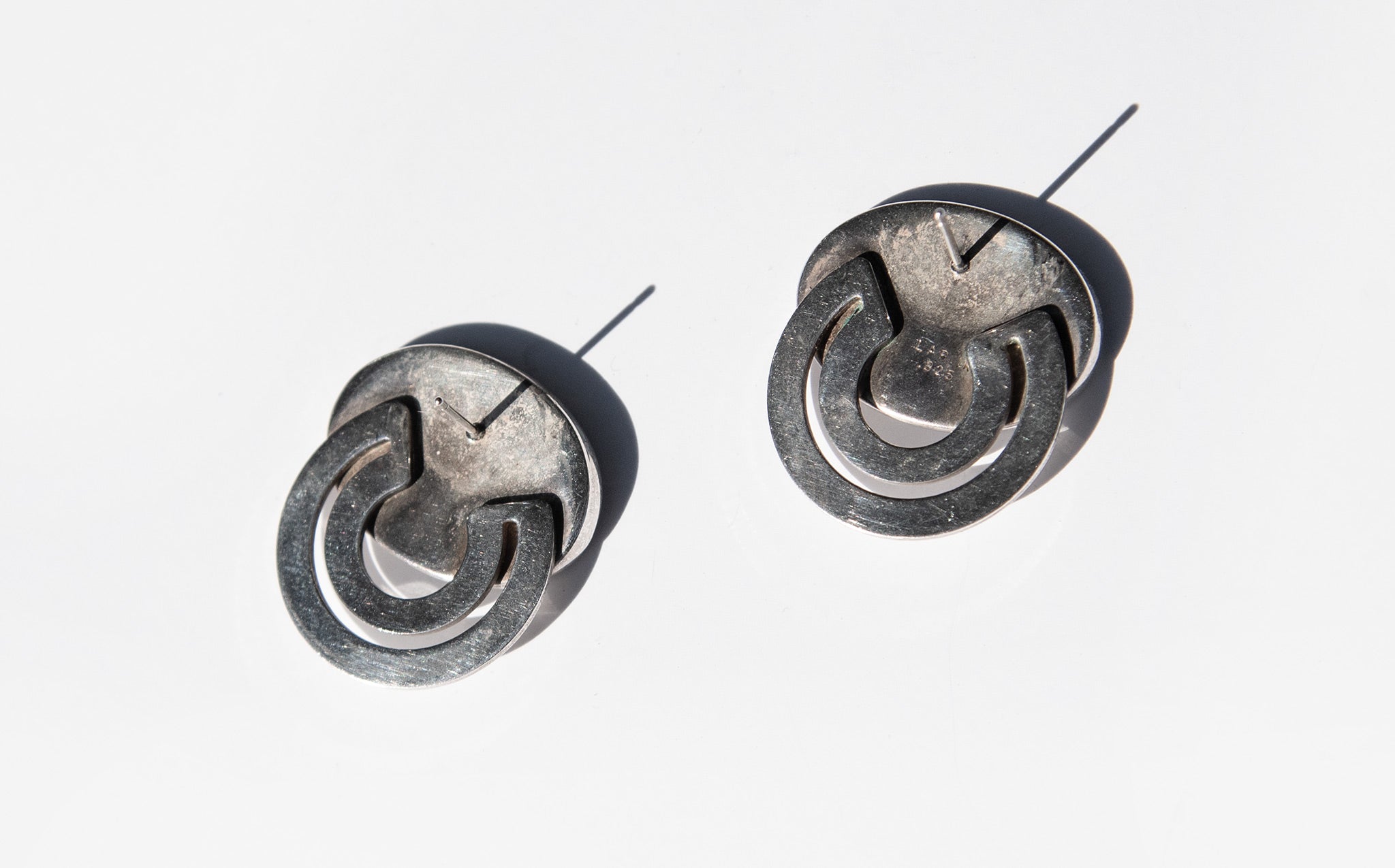 Sterling silver art deco style earrings that lay flat against the ear.