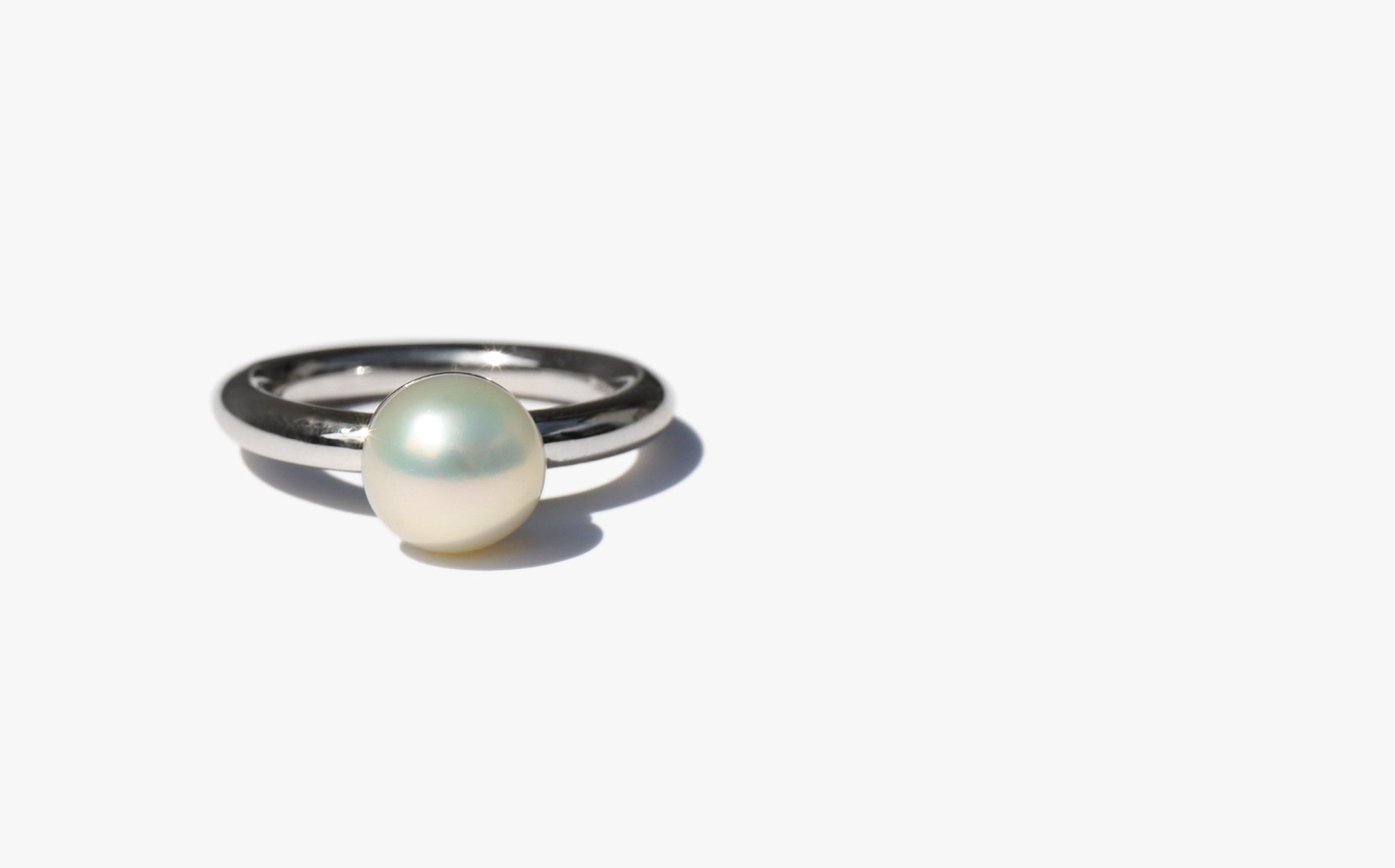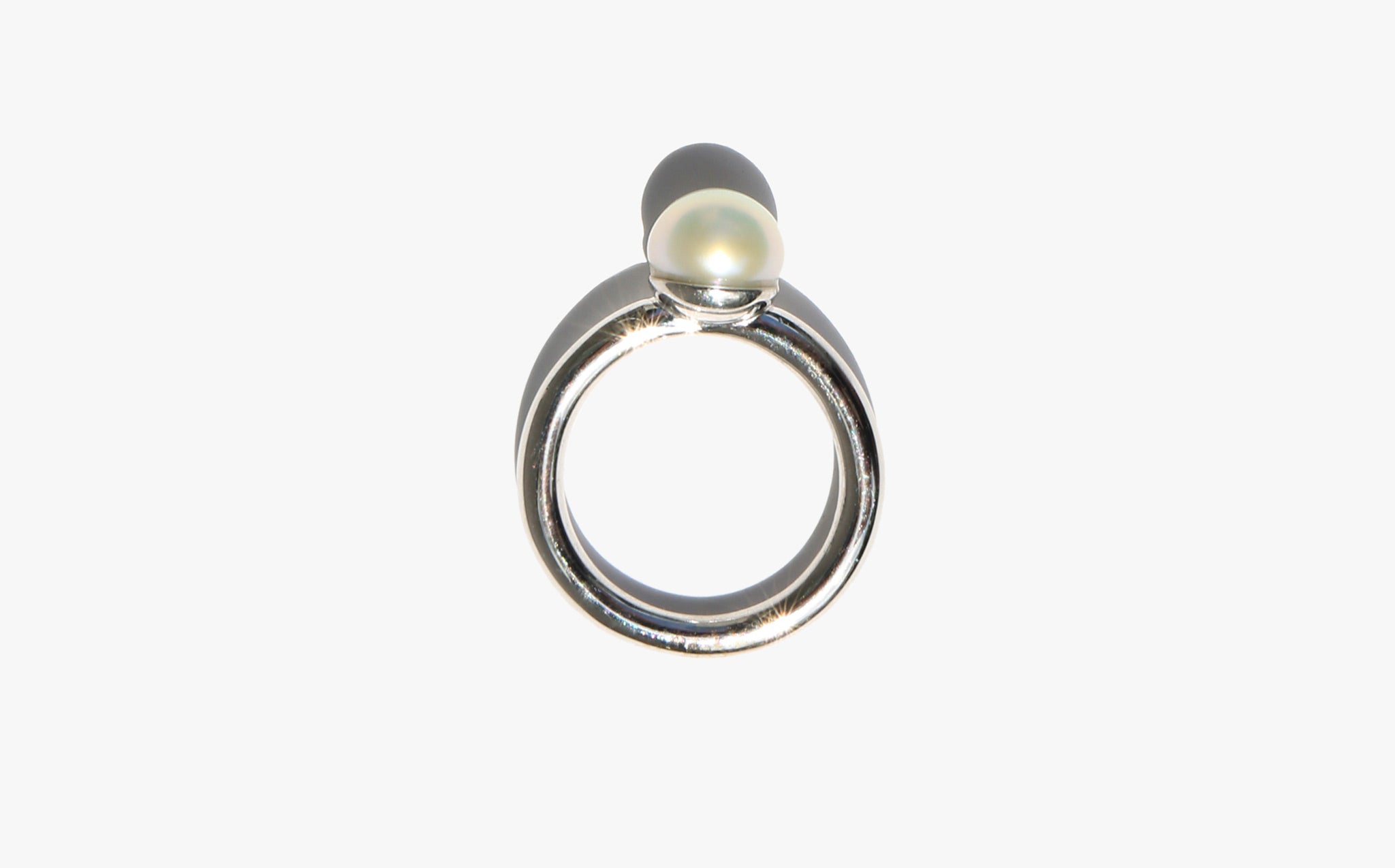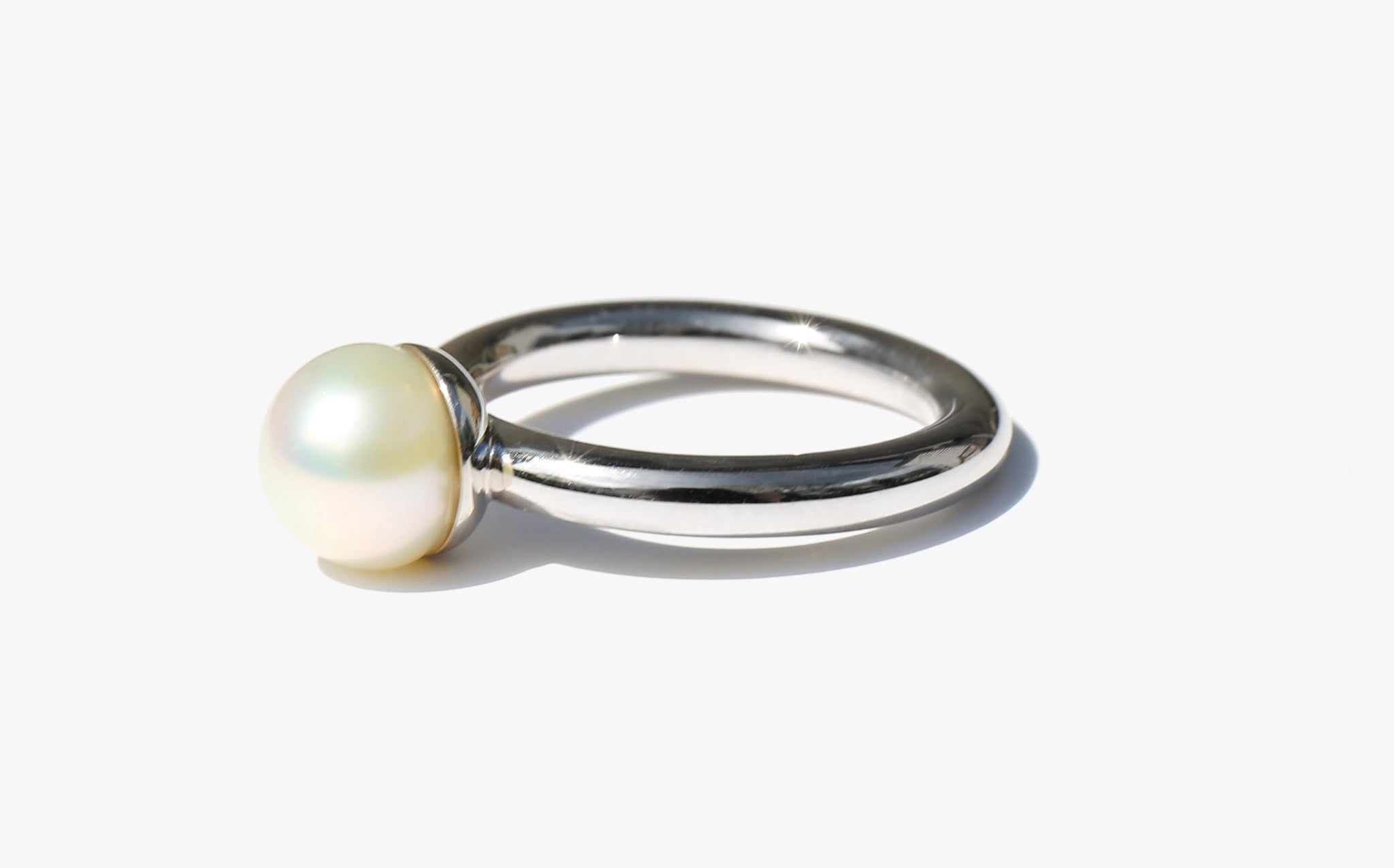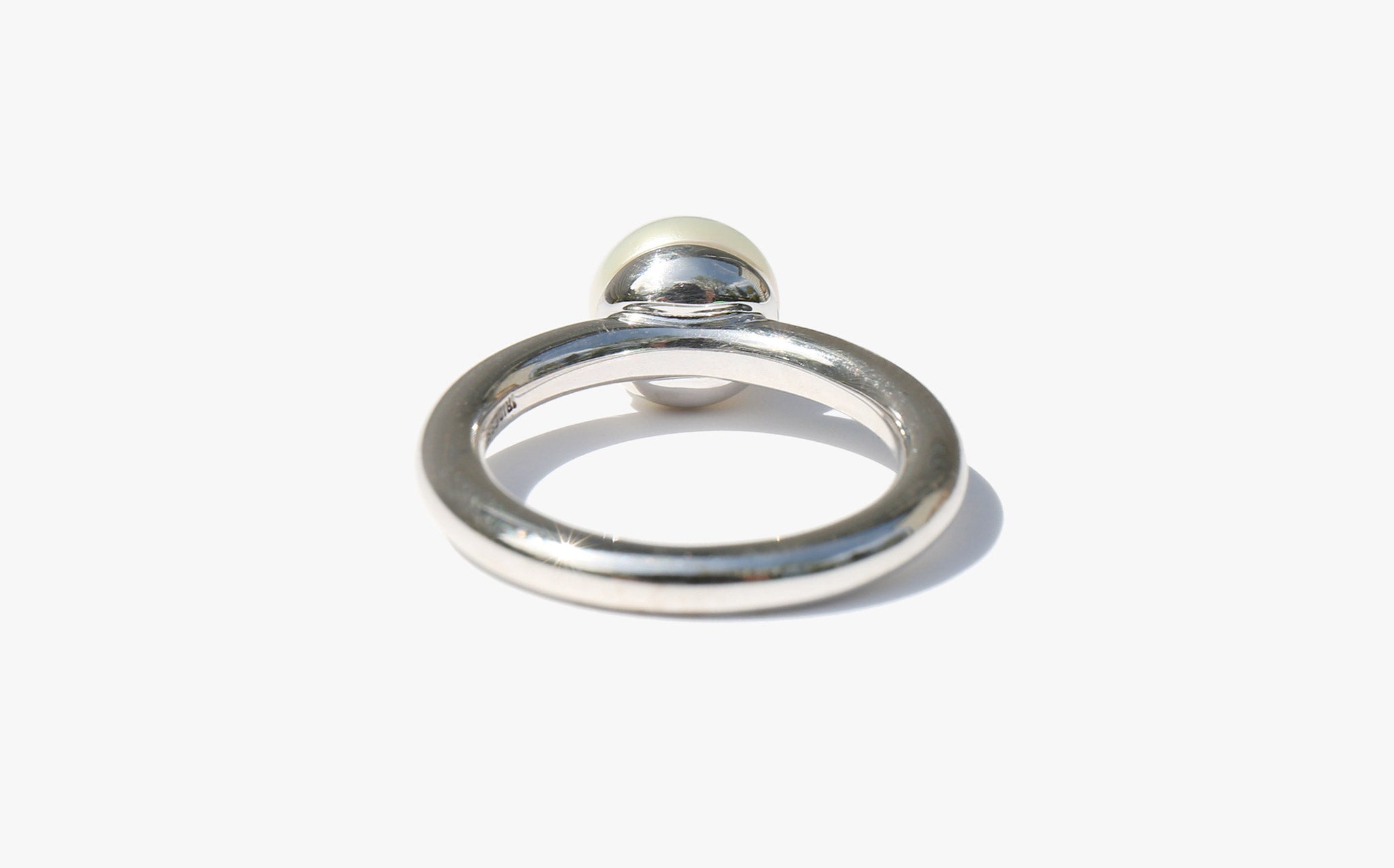 Stunning cultured pearl in a heavy 18K white gold ring.