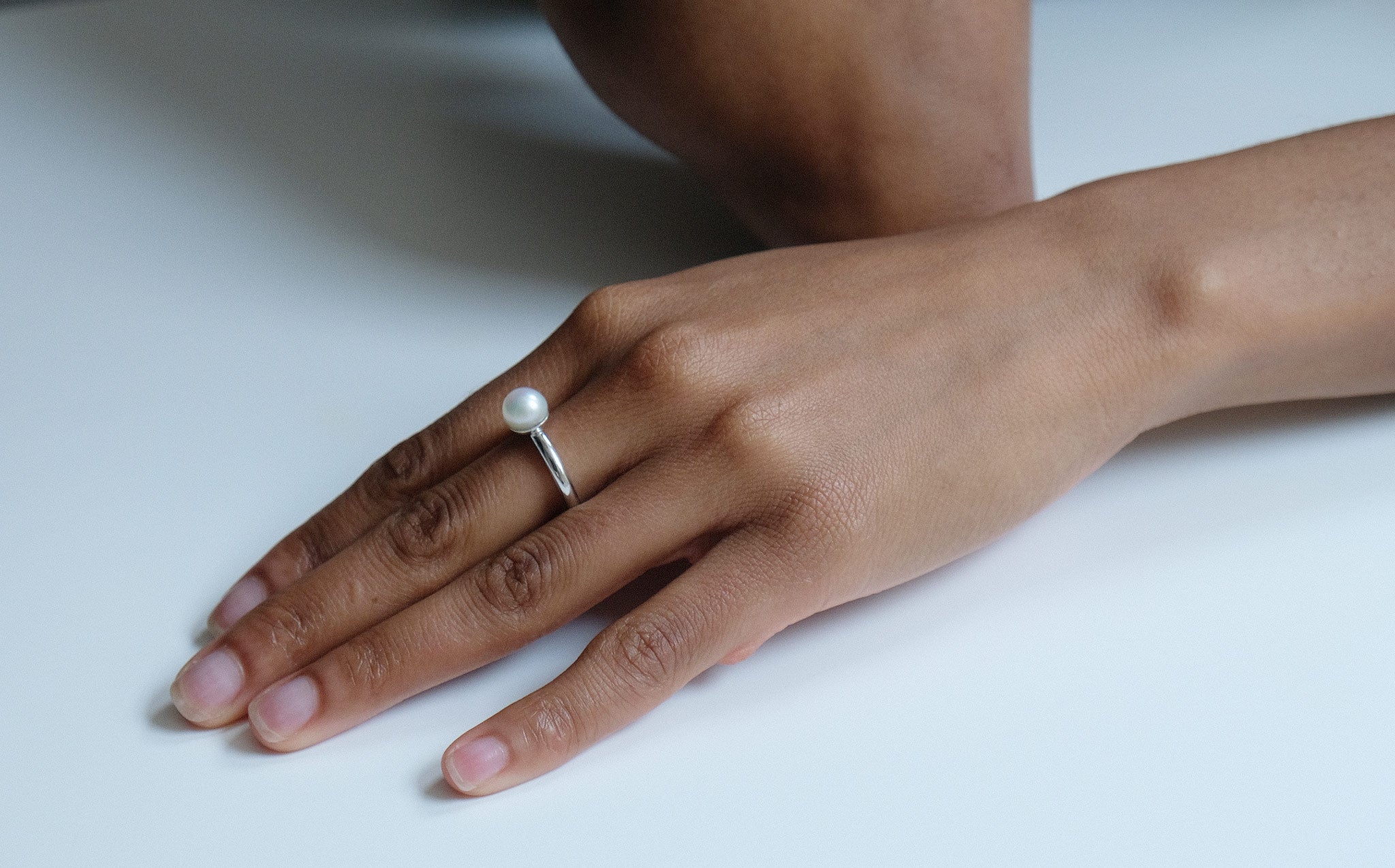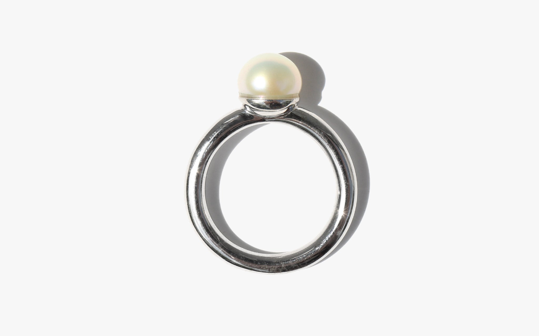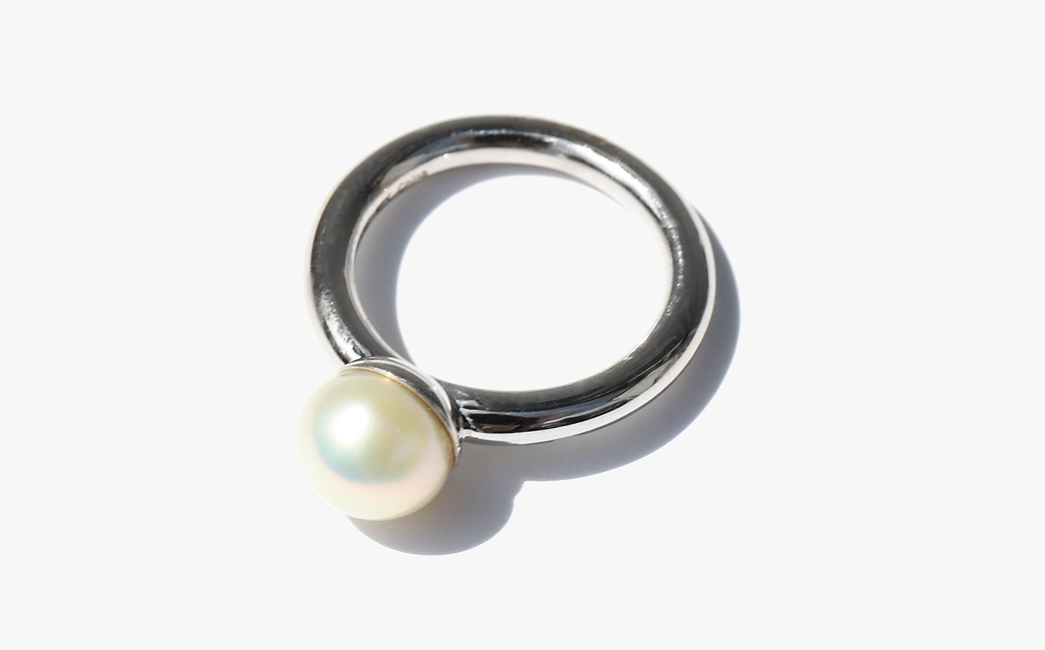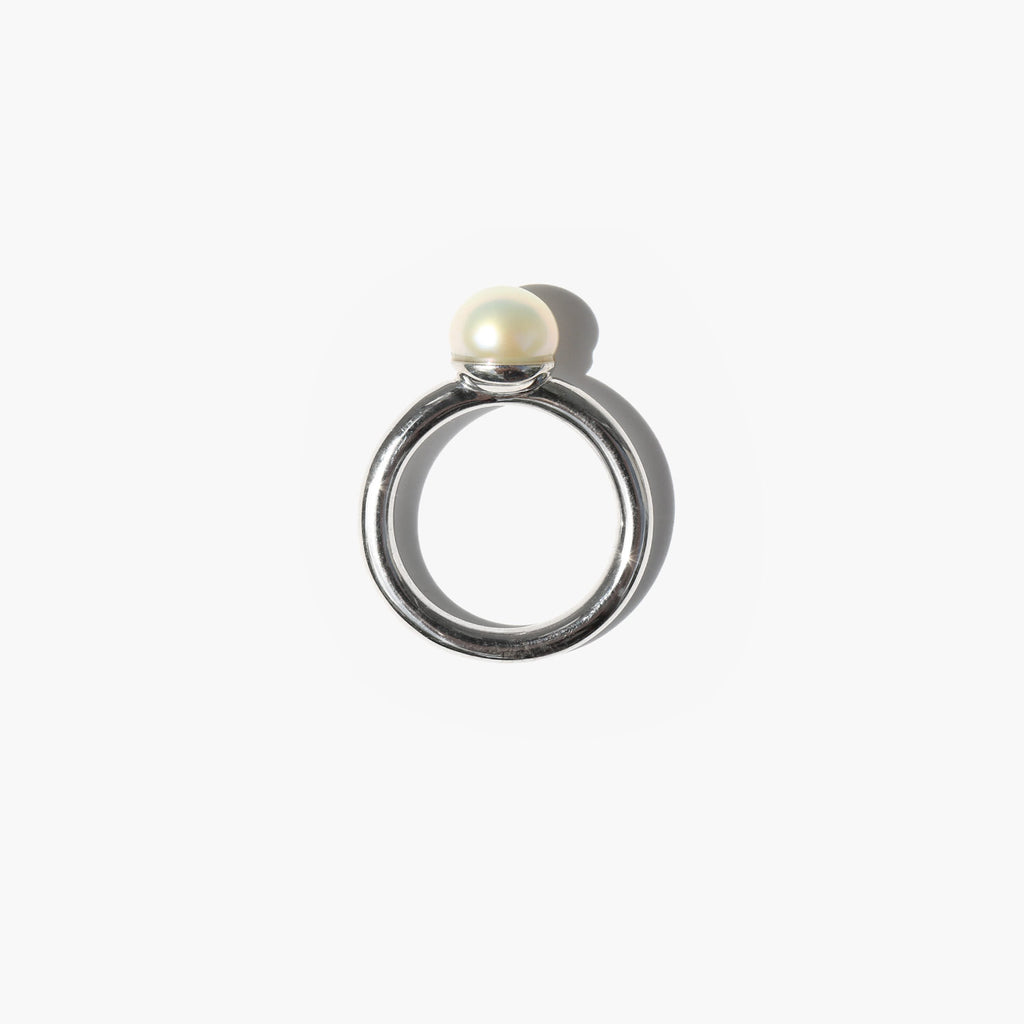 Stunning cultured pearl in a heavy 18K white gold ring.