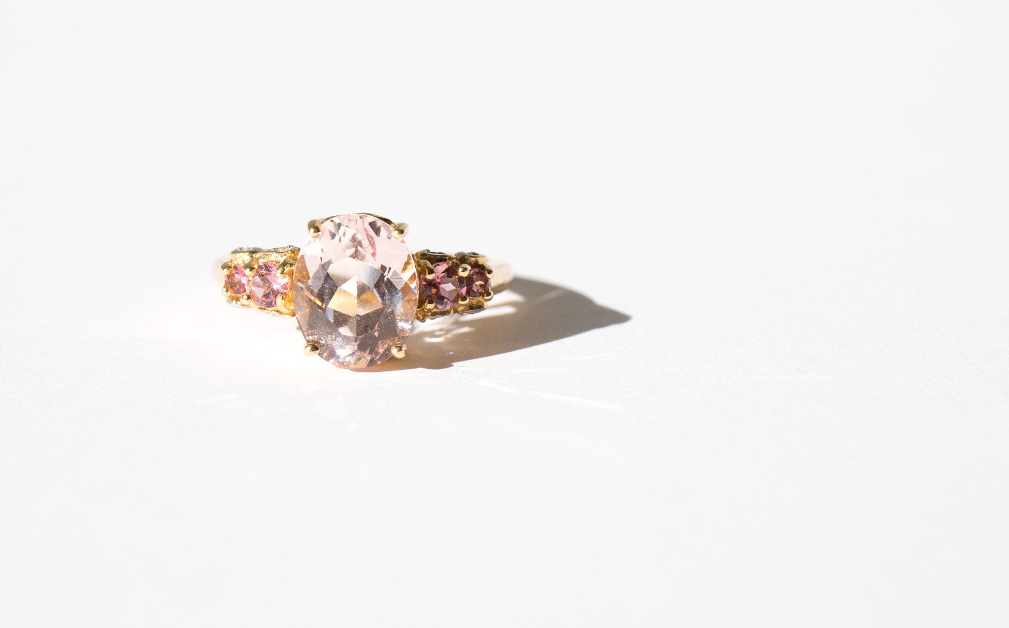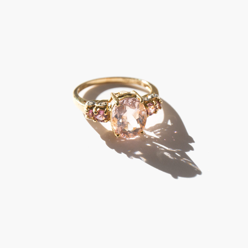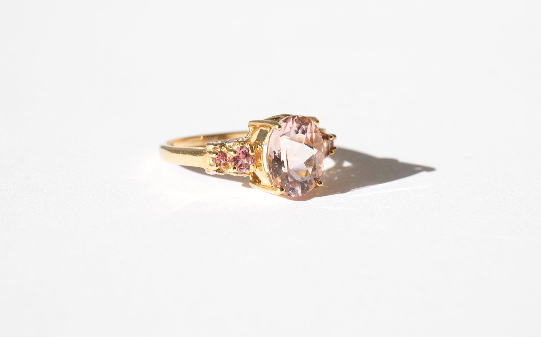 Lovely blush colored morganite and pink tourmaline stones set in 14k gold.