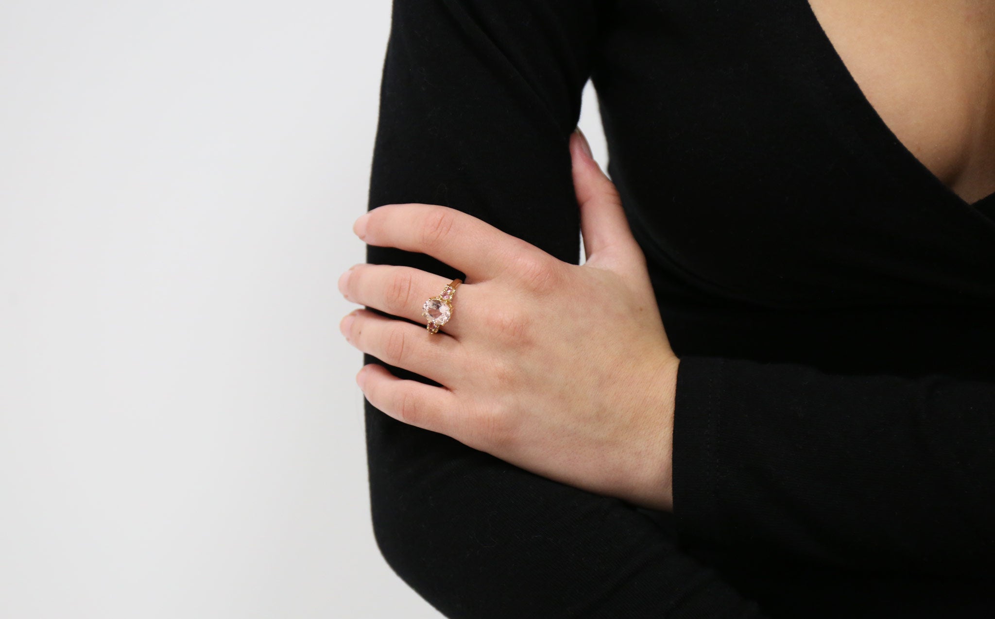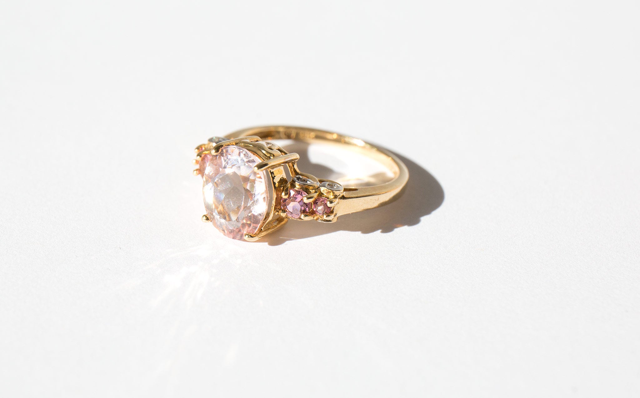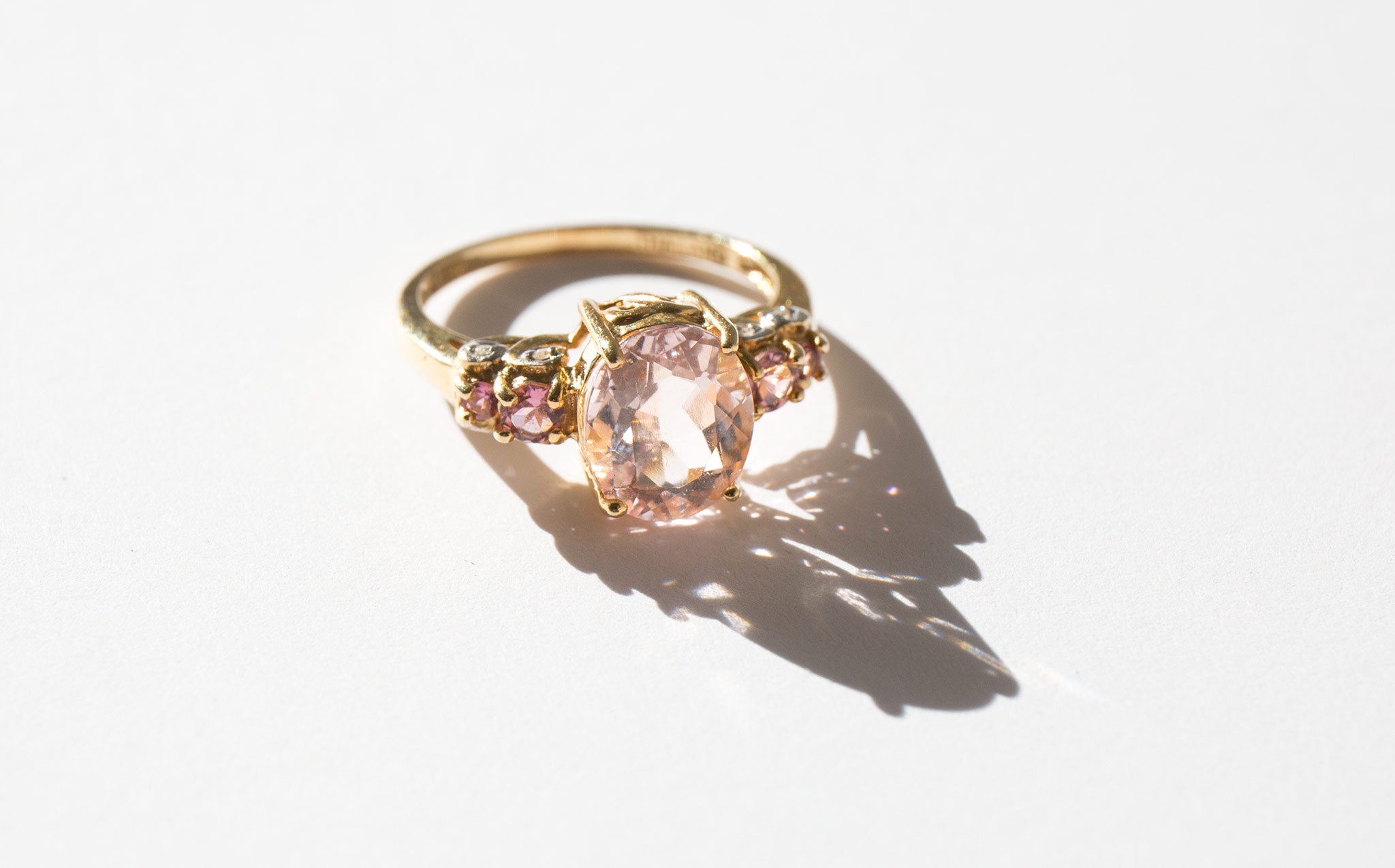 Lovely blush colored morganite and pink tourmaline stones set in 14k gold.