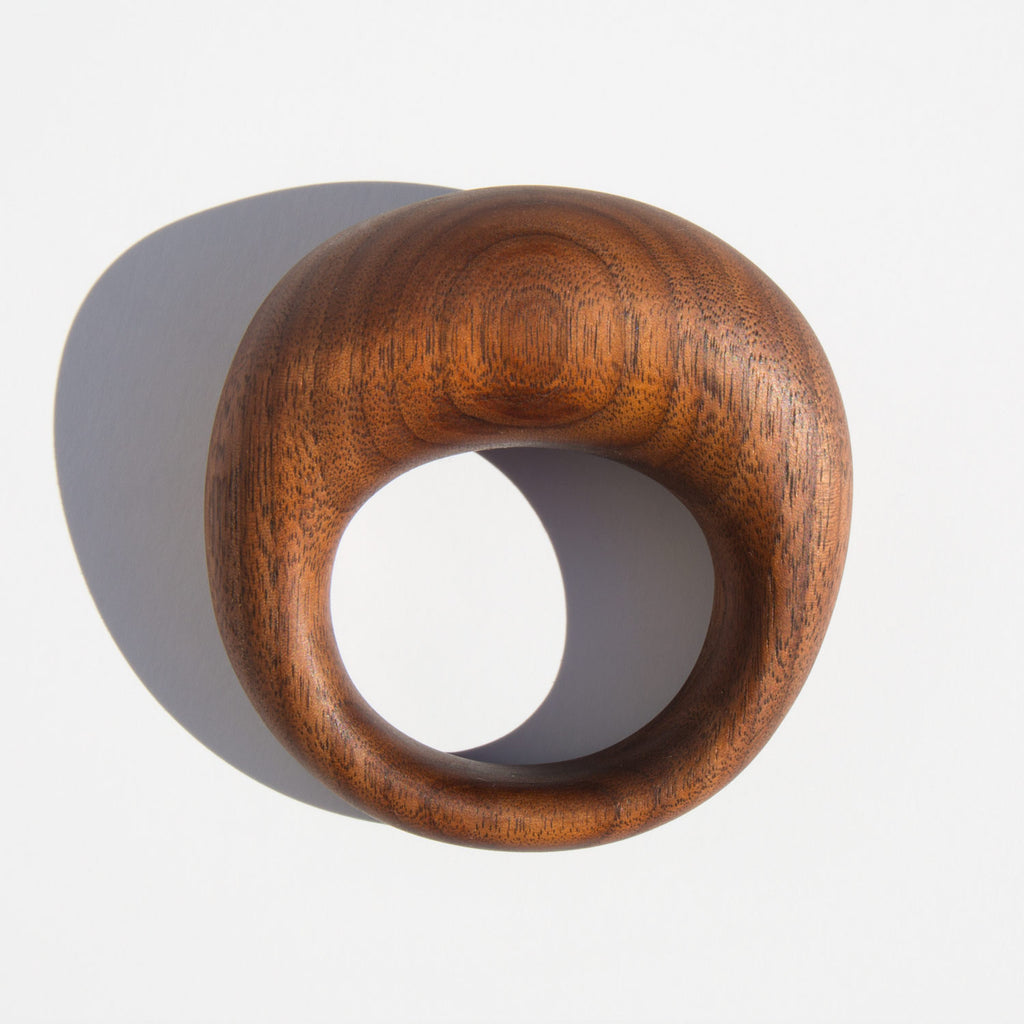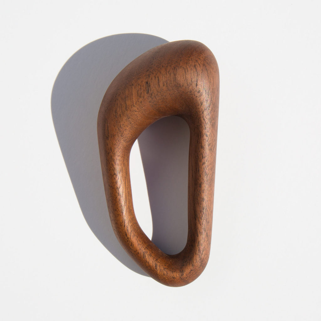 Walnut baby rattle handmade by designers Linda Hsiao and Kagan Taylor in their studio in Los Angeles.
