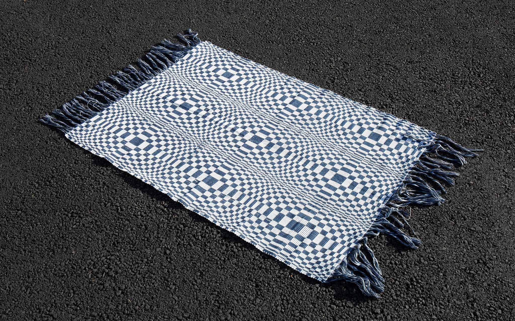 Small area rug hand crafted by Filipino artisans using local cotton. The design is known as "Kusikus" which translates to "whirlwind" – a hypnotizing motif that dates back to the 1500's pre-Spanish colonial Philippines. A mathematical pattern native to Ilocos Norte and Ilocos Sur in the Northern coastal regions, it was traditionally used to protect ships and to confuse and ward off evil spirits.