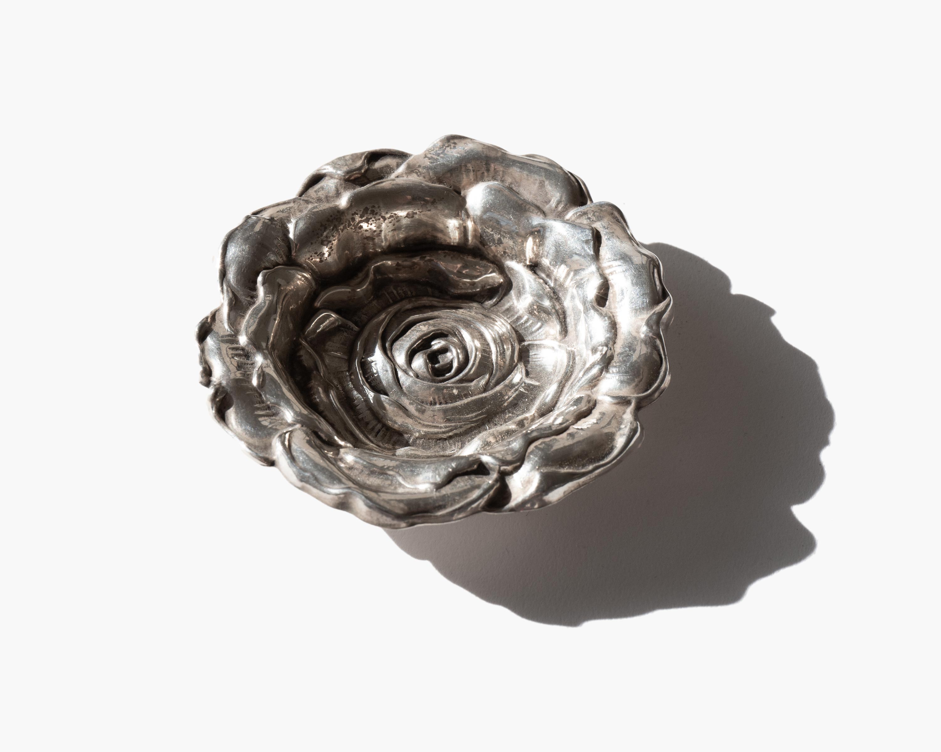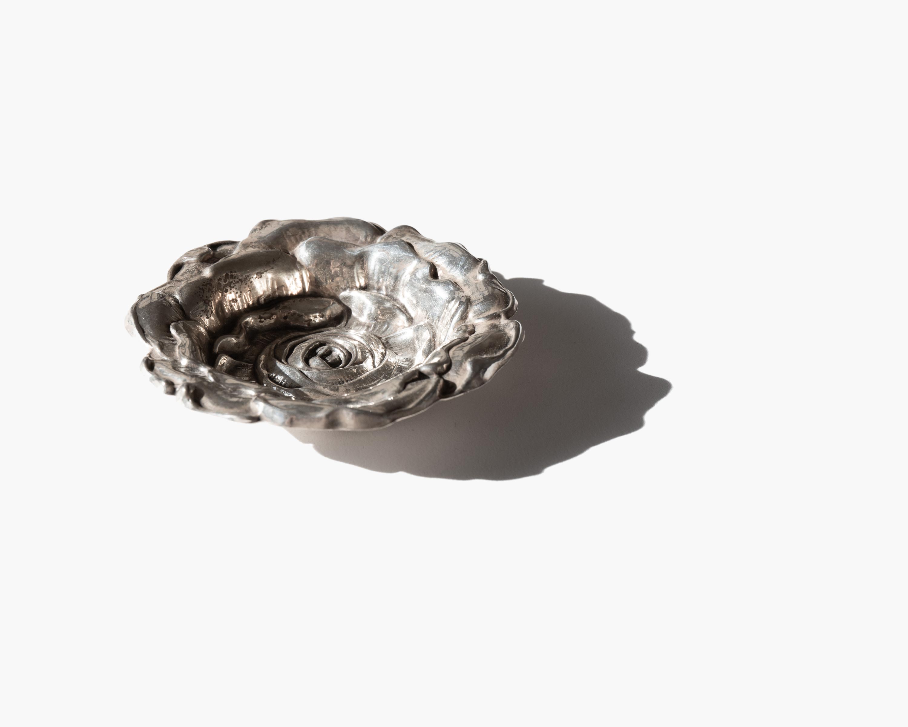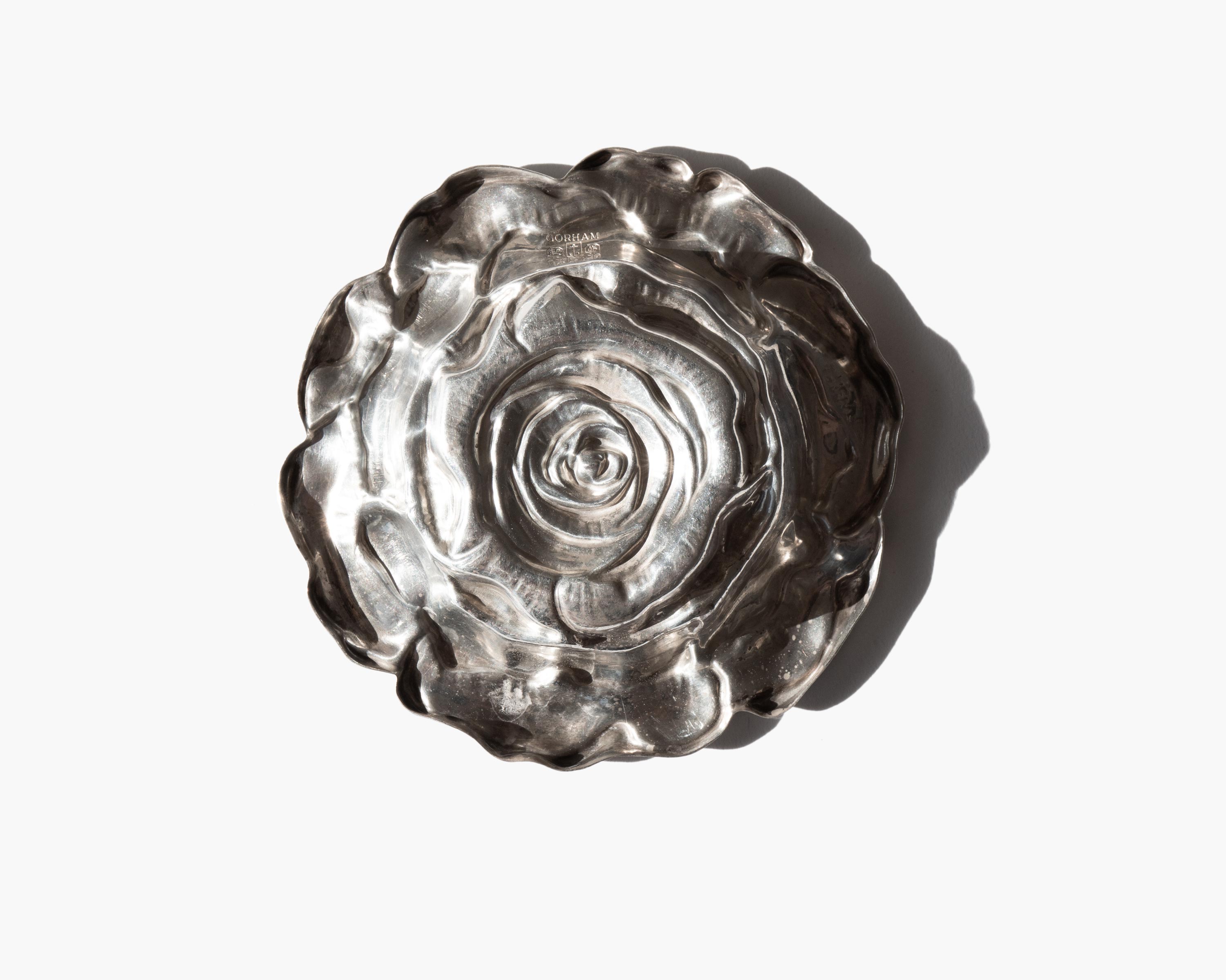 Gorham sterling silver repoussé rose vanity dish.