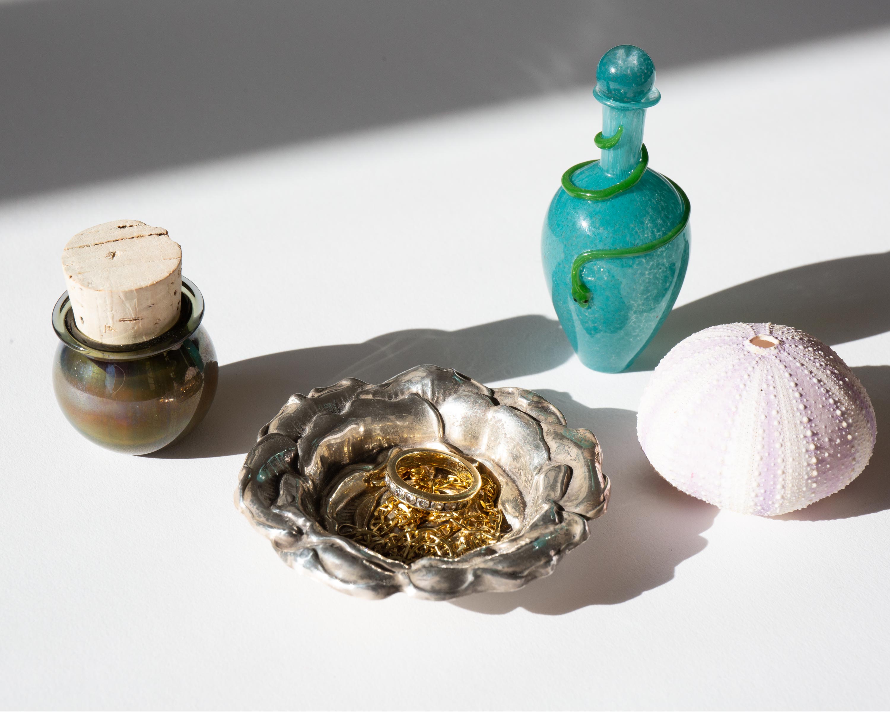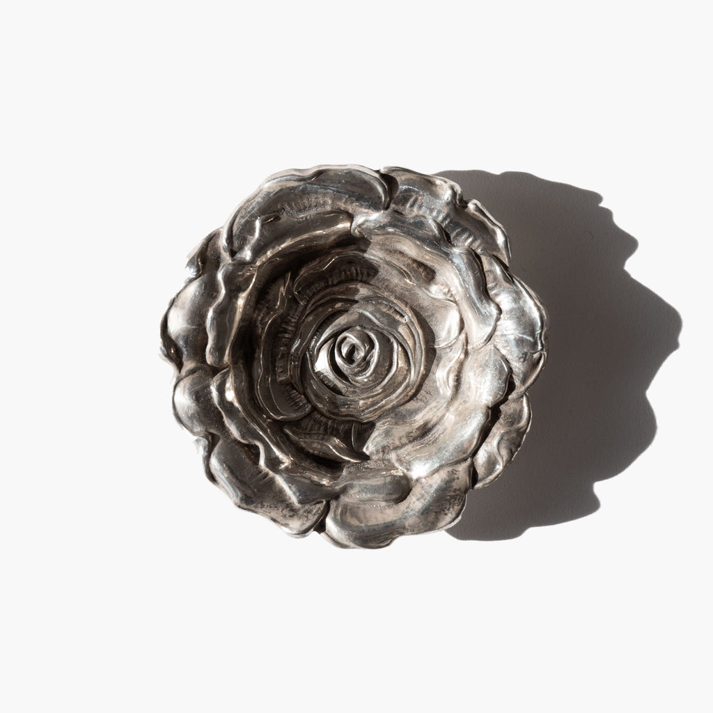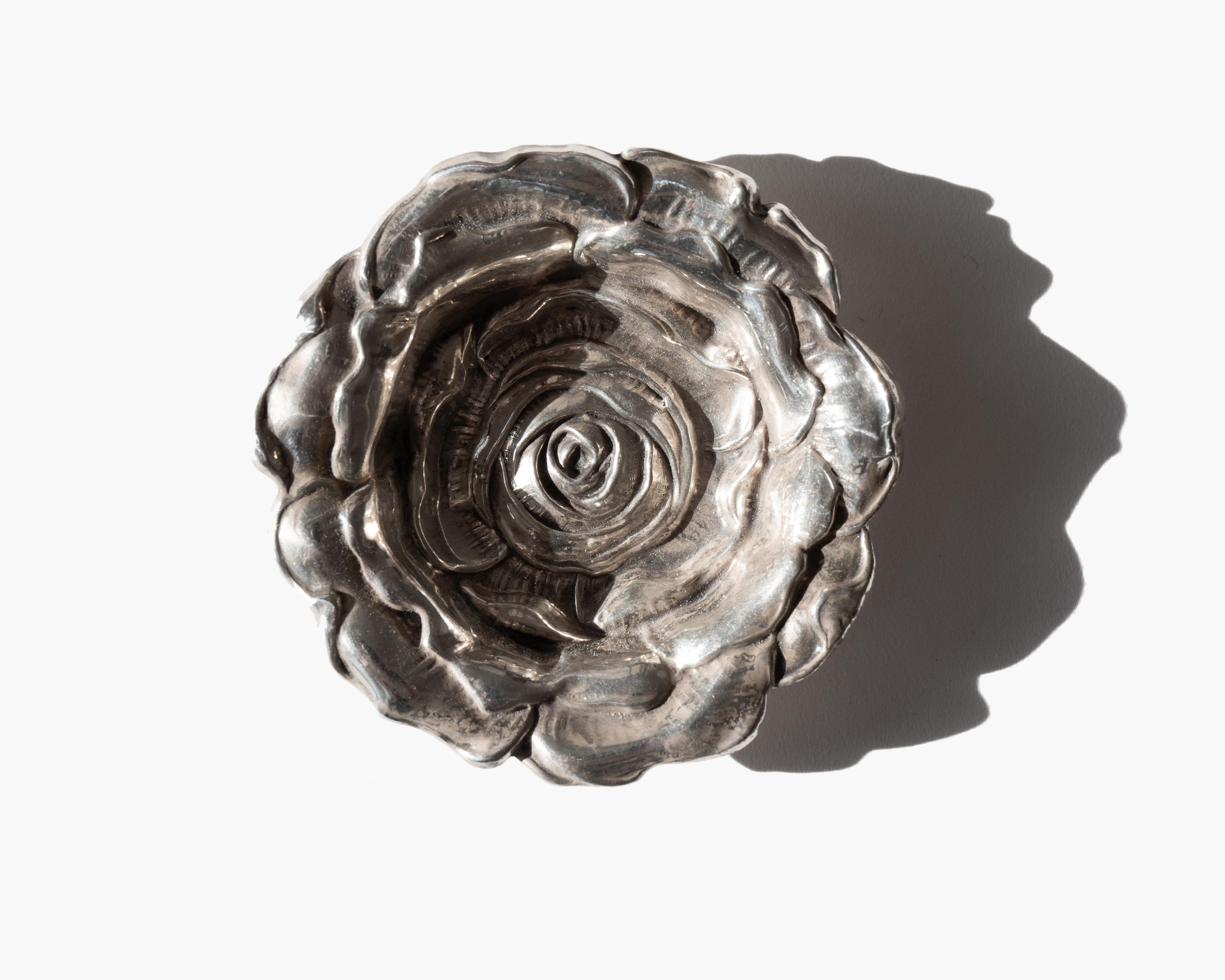 Gorham sterling silver repoussé rose vanity dish.