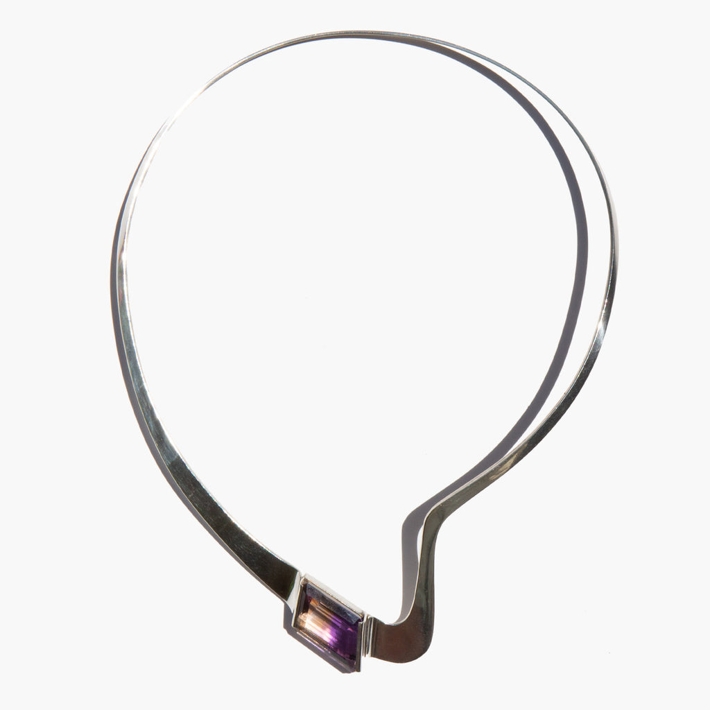 Geometric sterling silver collar with an ametrine accent.