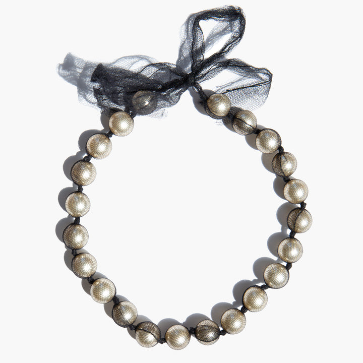 Lanvin Alber Elbaz tulle wrapped faux pearl tie necklace.