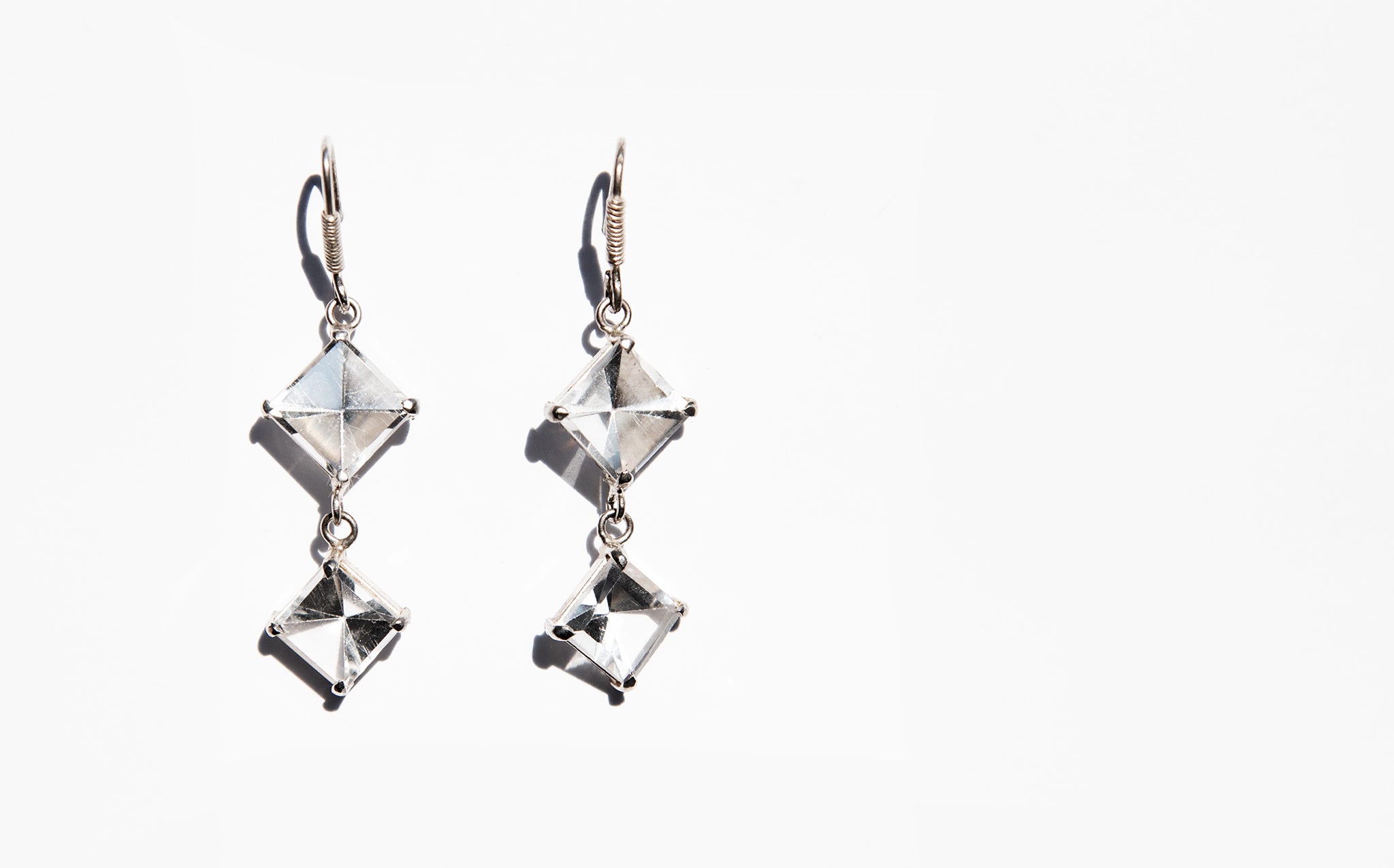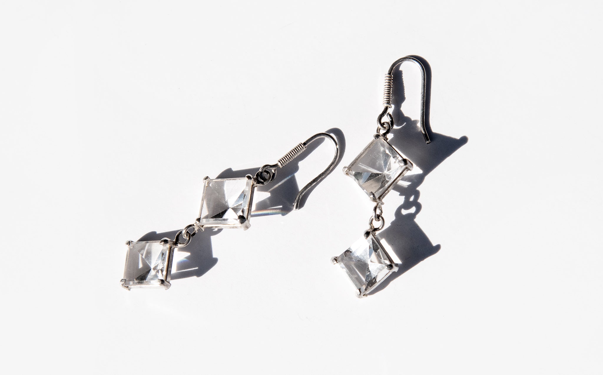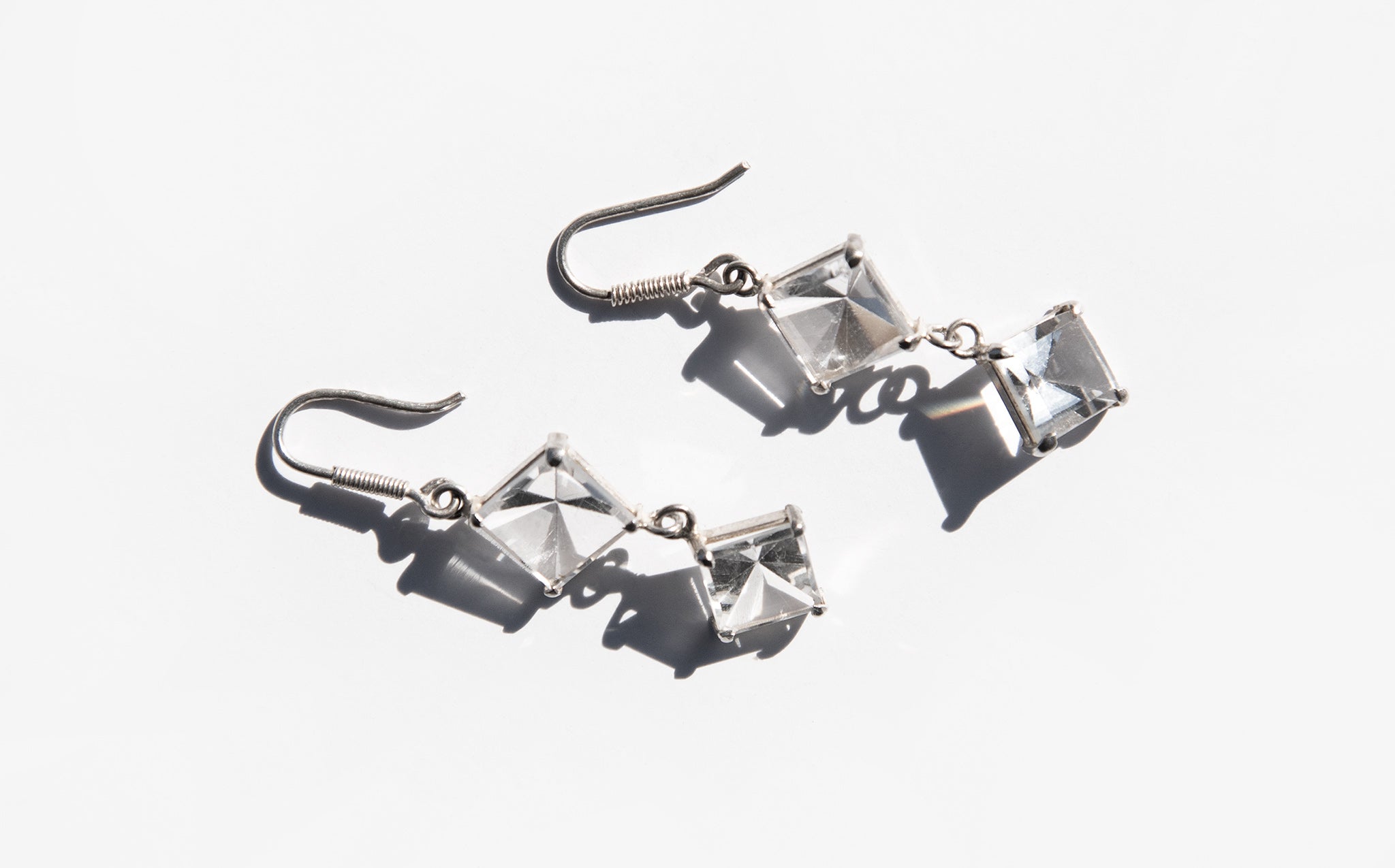 Eye catching cut glass and sterling silver earrings.