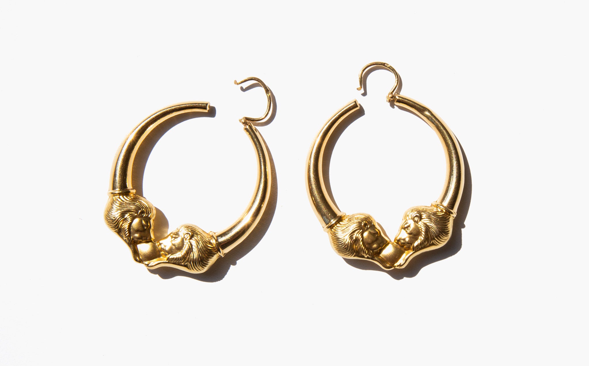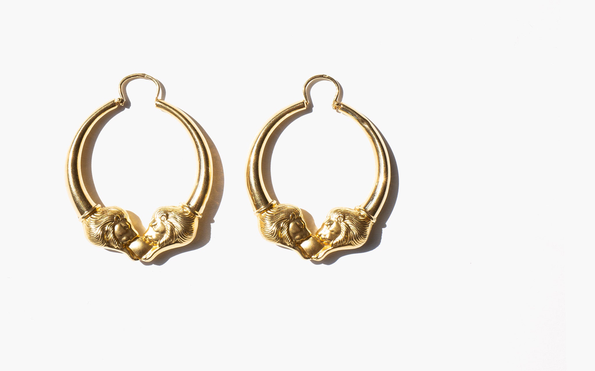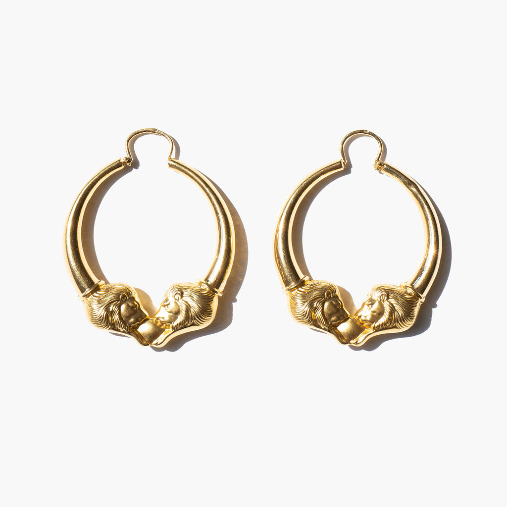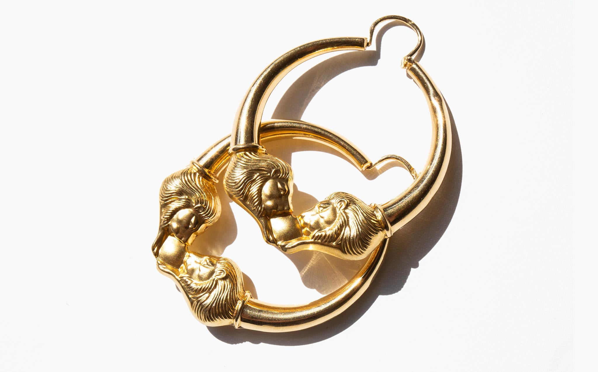 Large and incredible hollow 14k gold double lion head earrings. The lion or "king of beasts" symbolizes independence, courage, and strength of character.