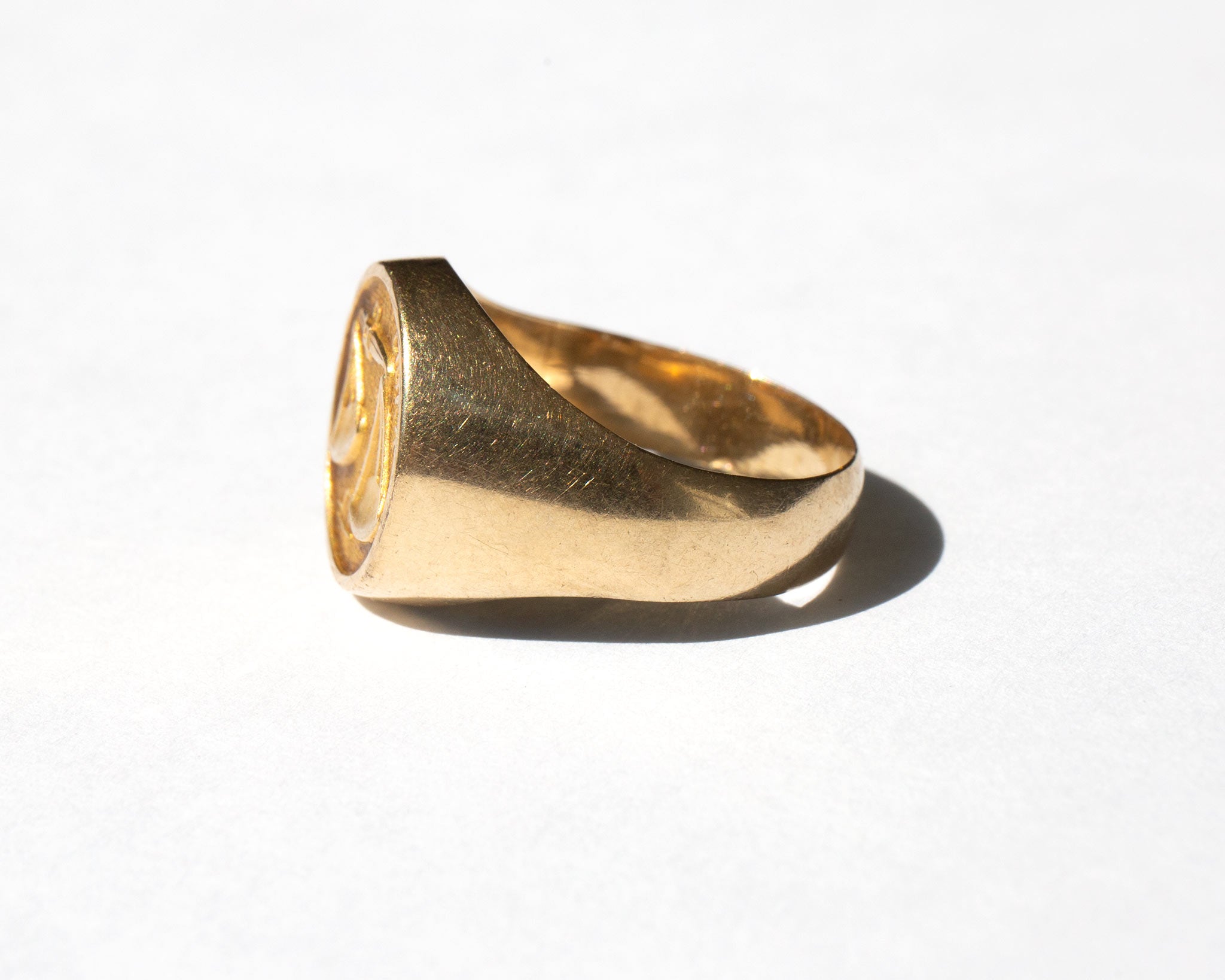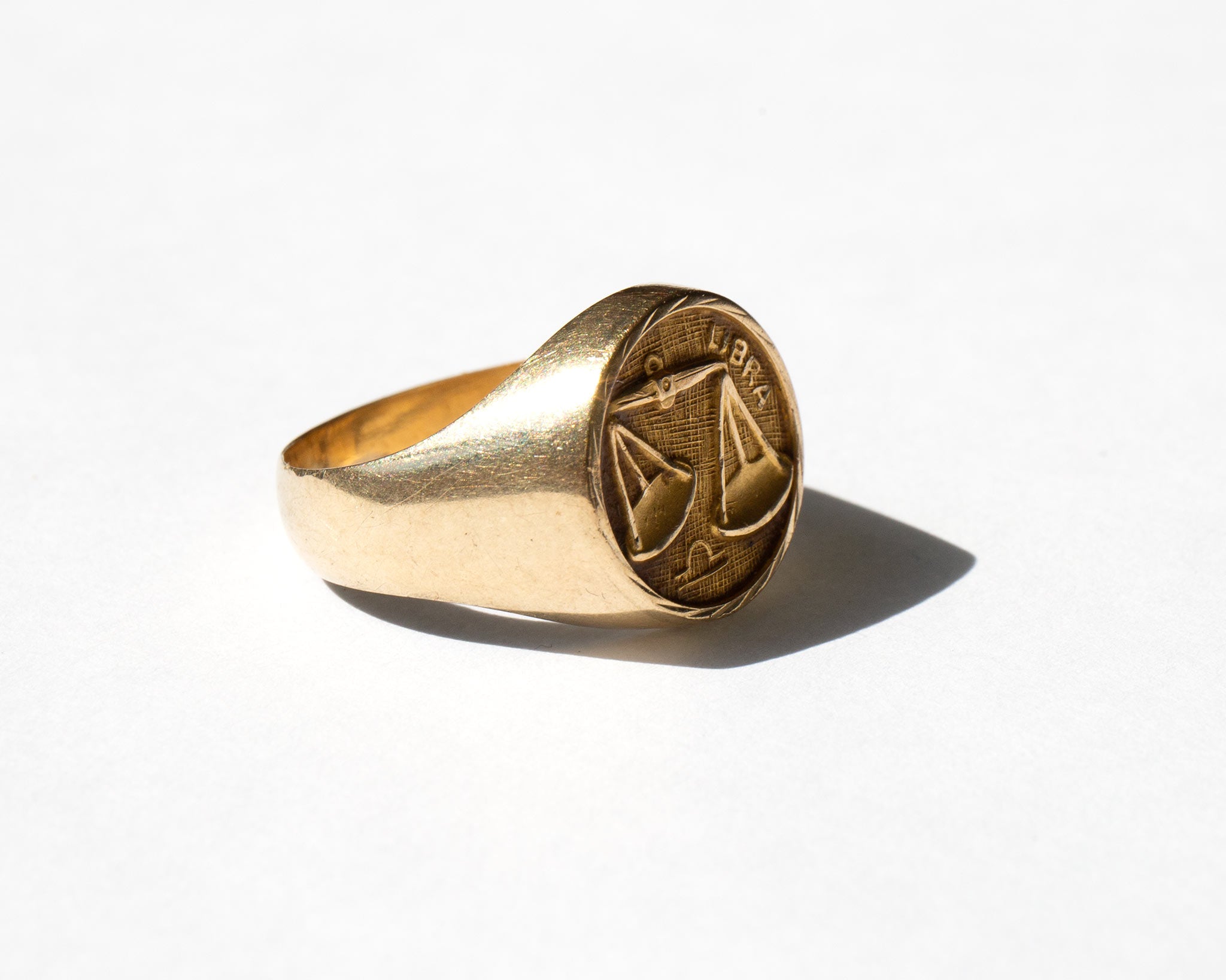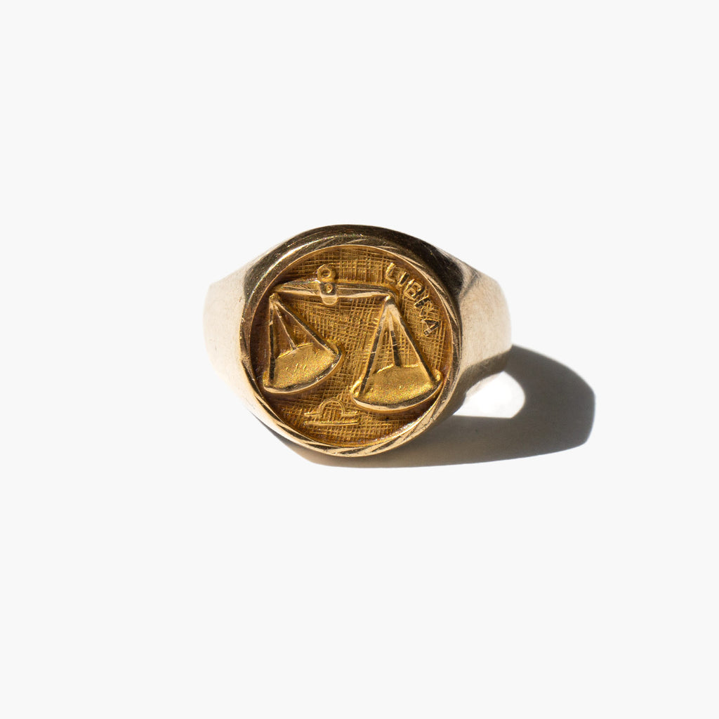 Signet-style 14k gold Libra zodiac ring from the 1960's.