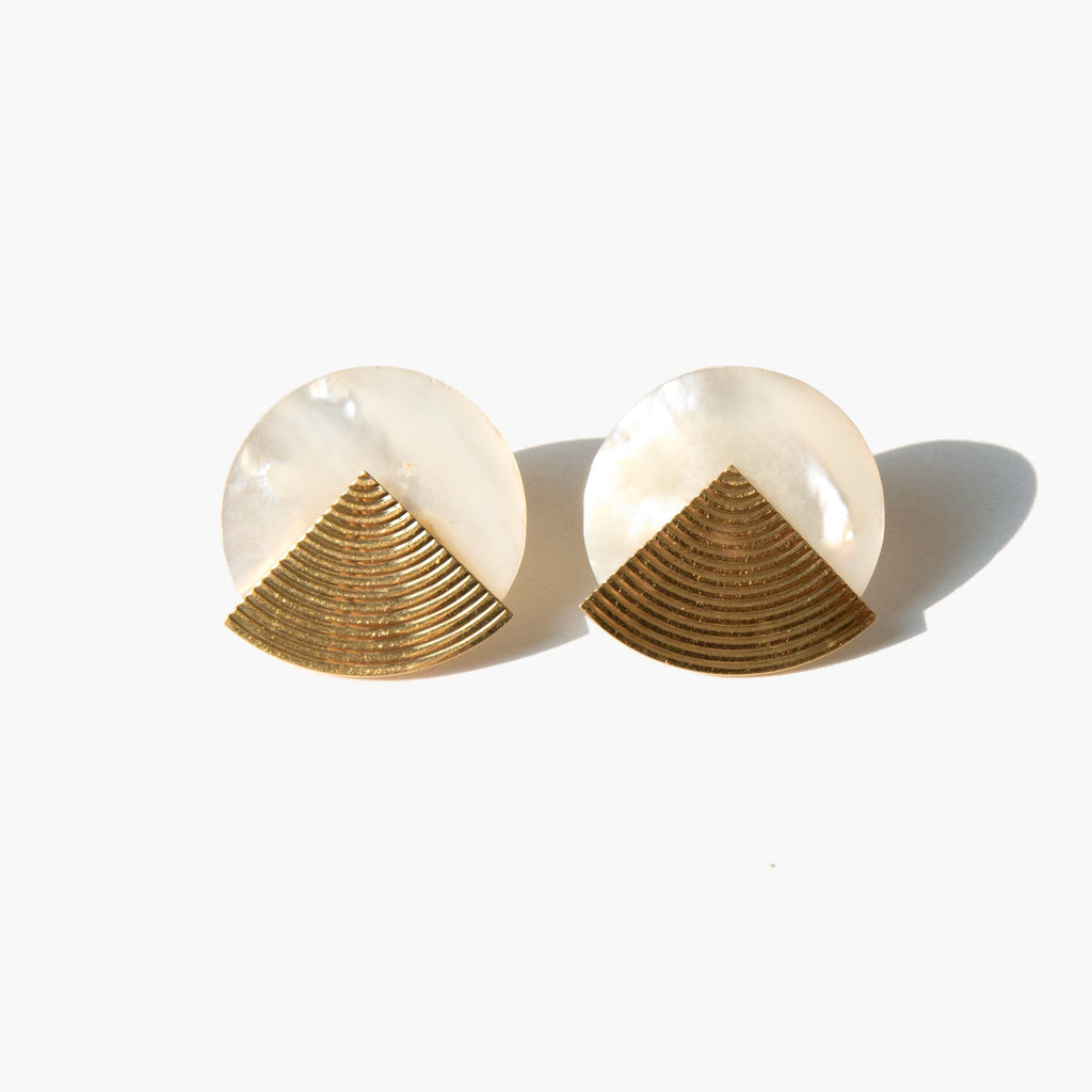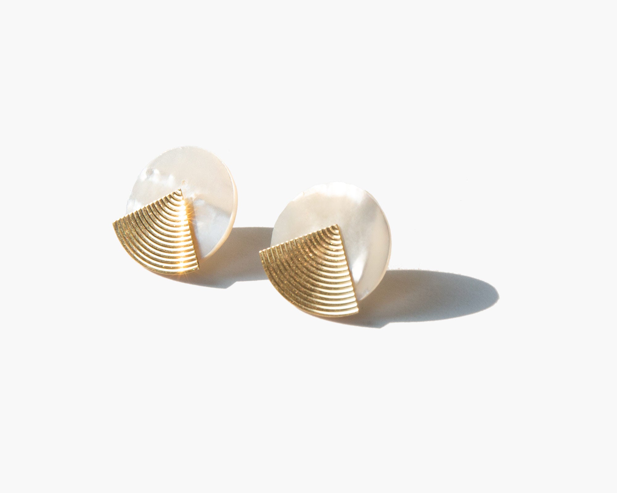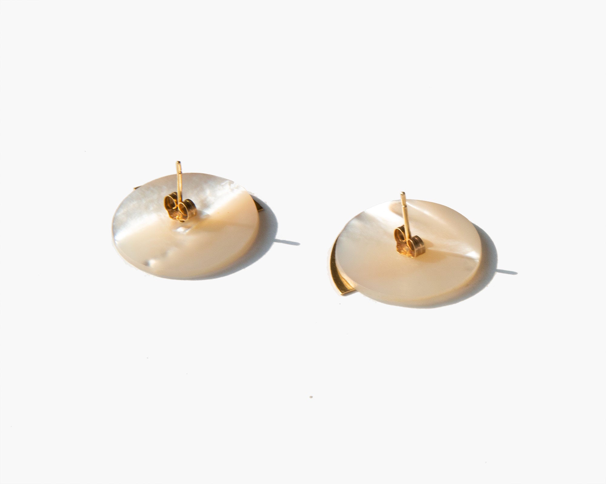 Disk earrings crafted of mother-of-pearl and lustrous 14k gold.