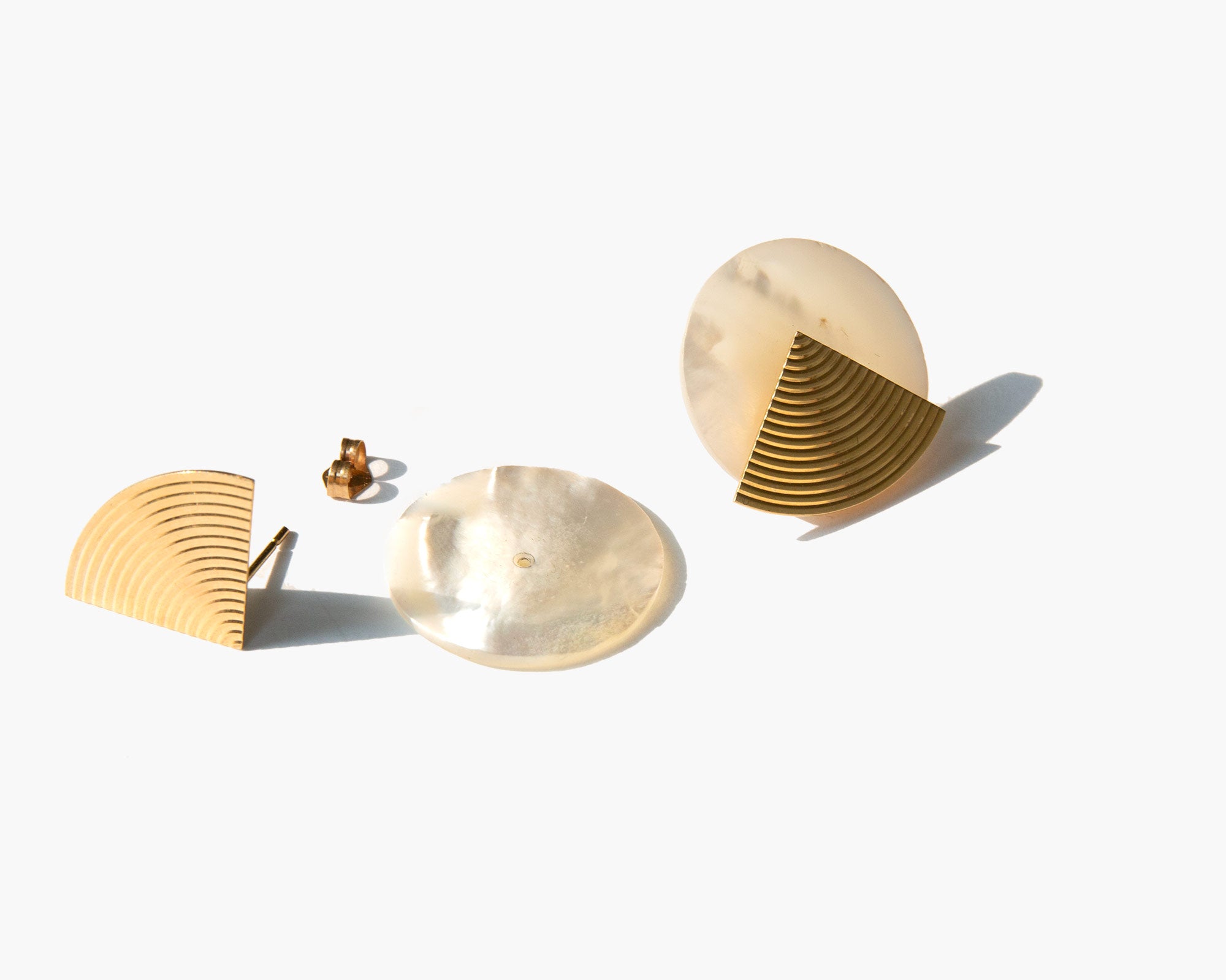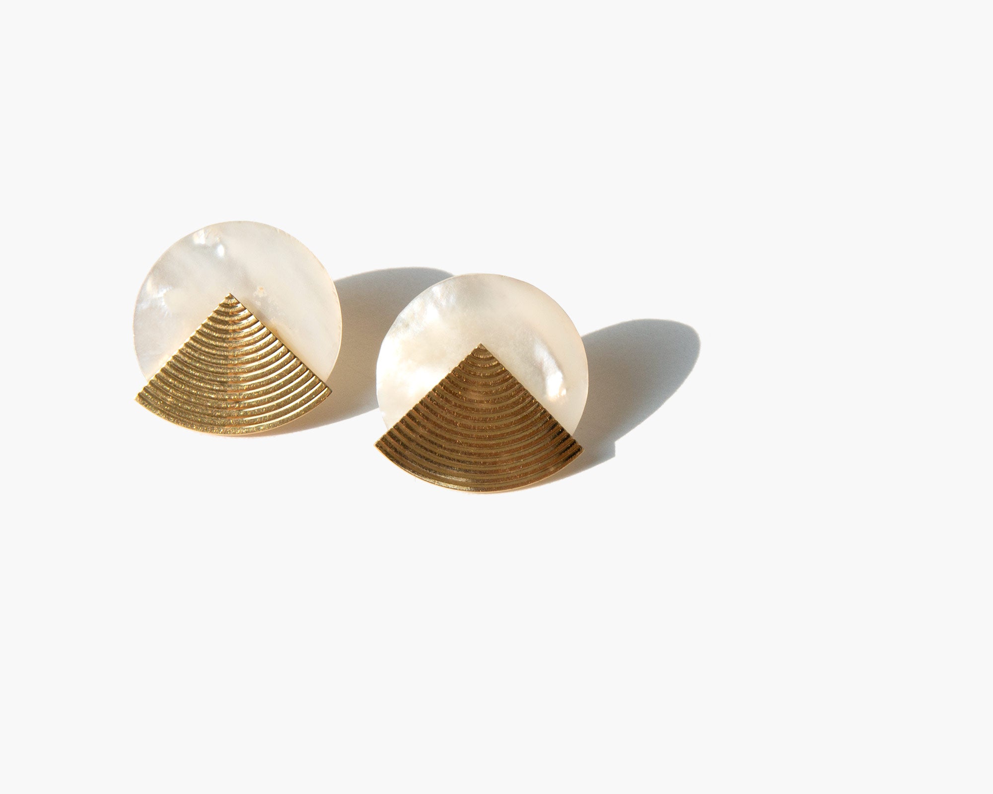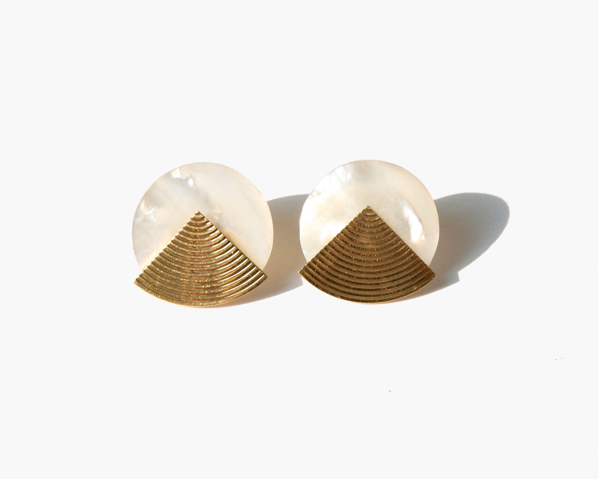 Disk earrings crafted of mother-of-pearl and lustrous 14k gold.