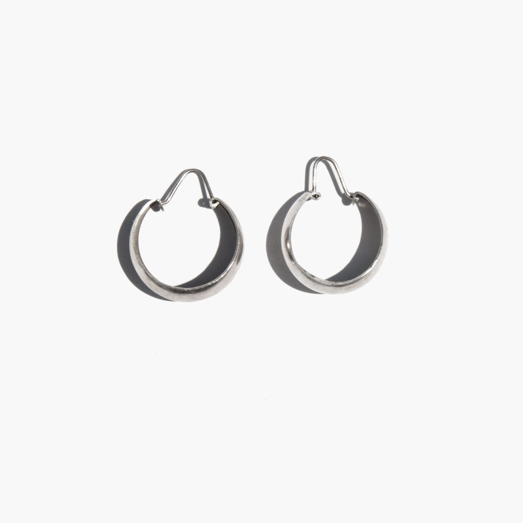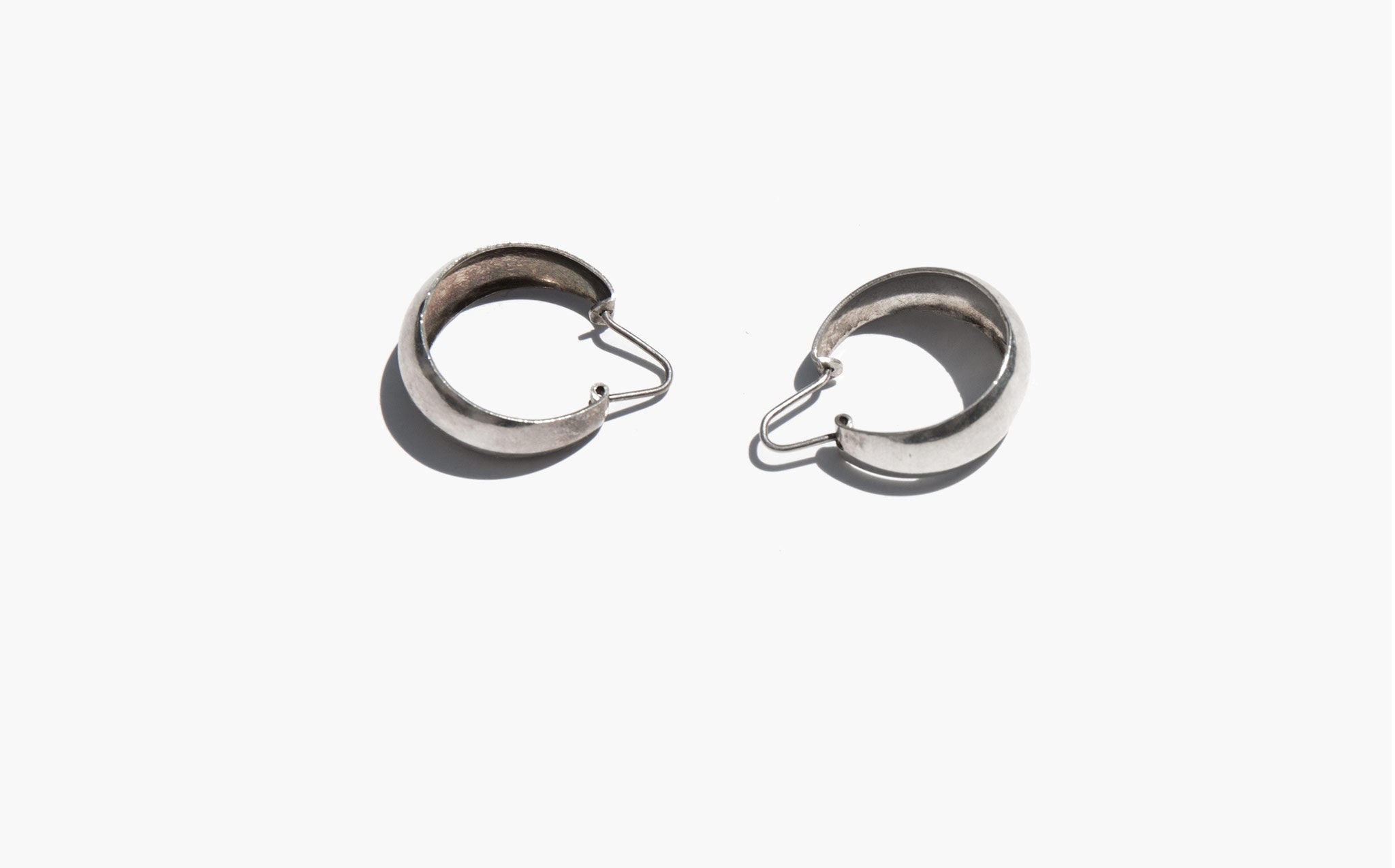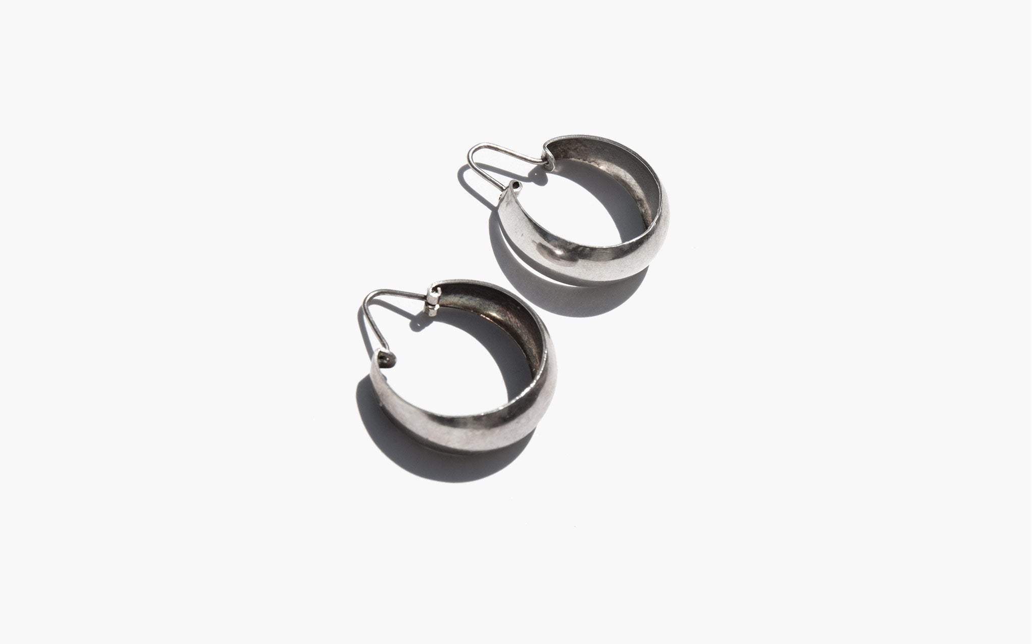 Classic broad sterling silver hoops with hinge closure.