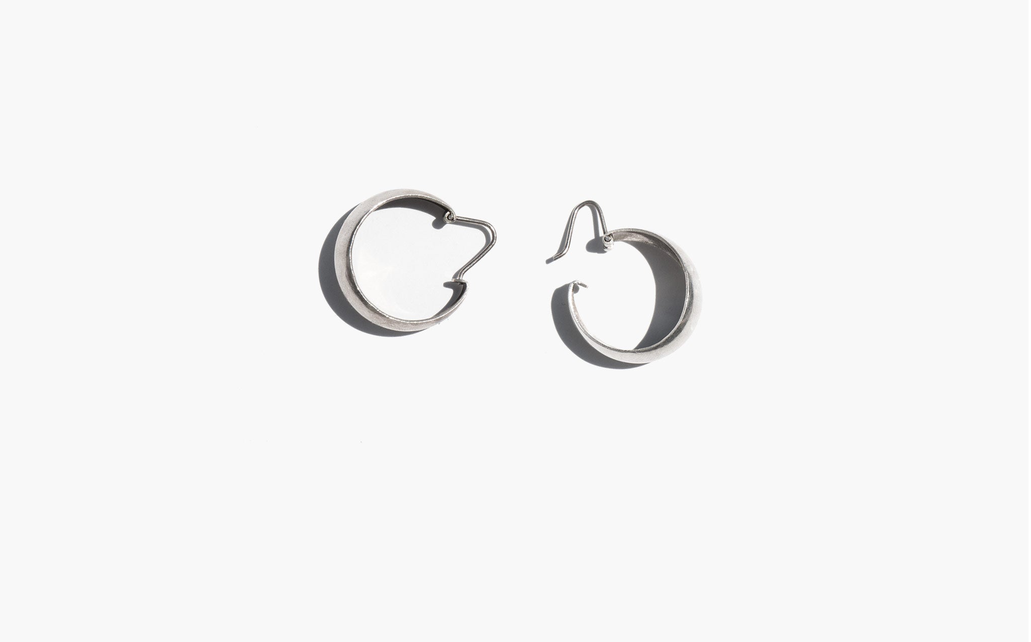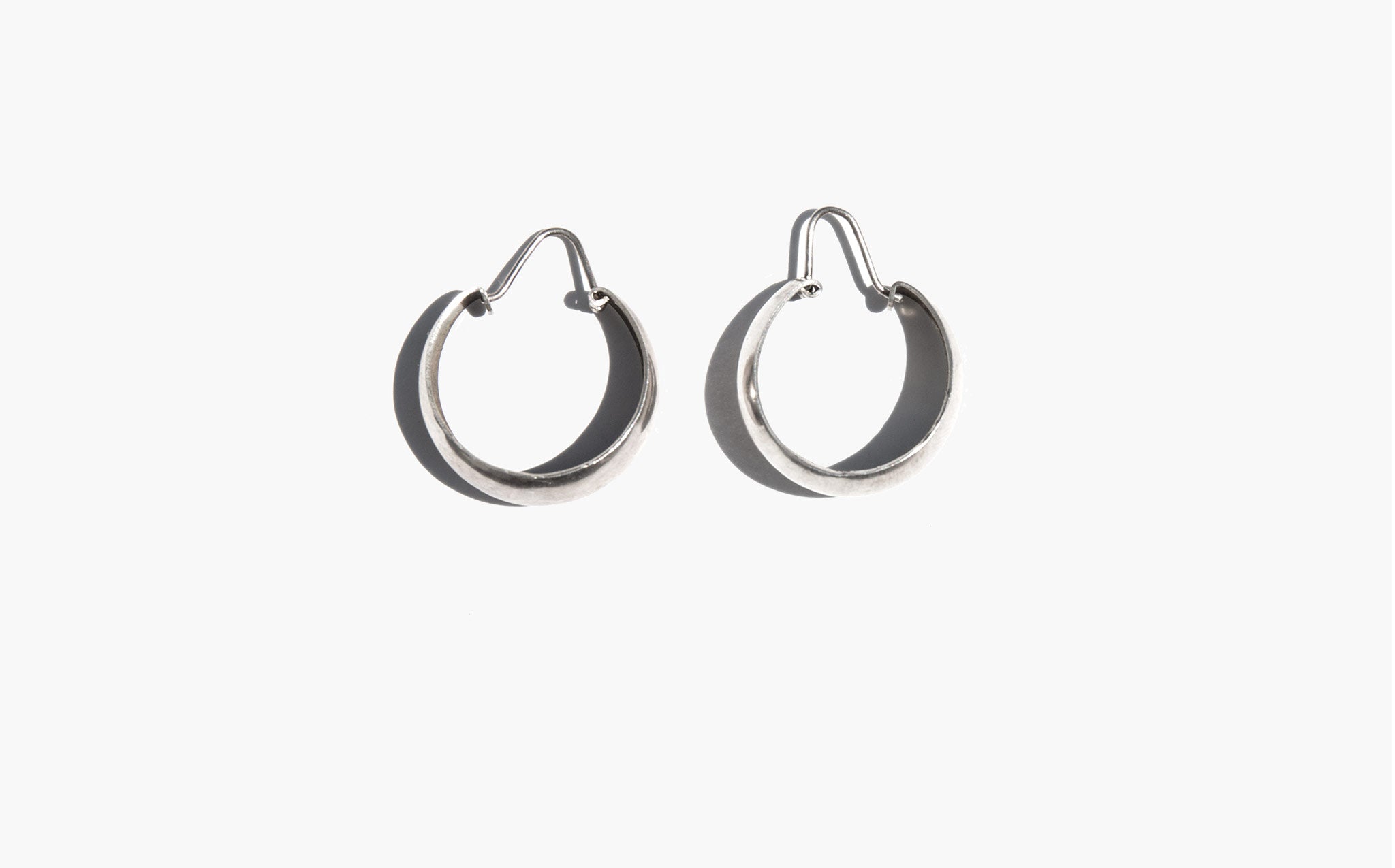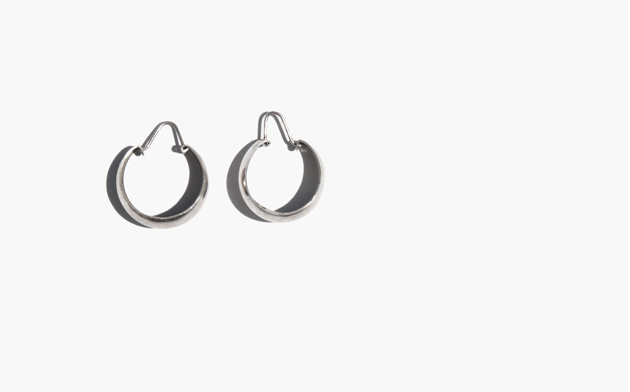 Classic broad sterling silver hoops with hinge closure.