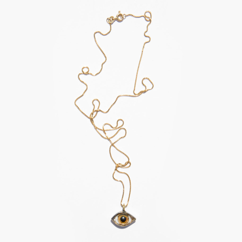 Eye charms have traditionally been worn to ward off Il Malocchio or the evil eye, a curse causing bad luck and injury and thought to be caused by the jealousy and envy of others. This talisman is set in 14K gold and hung from a sparkling and delicate 14K gold chain.