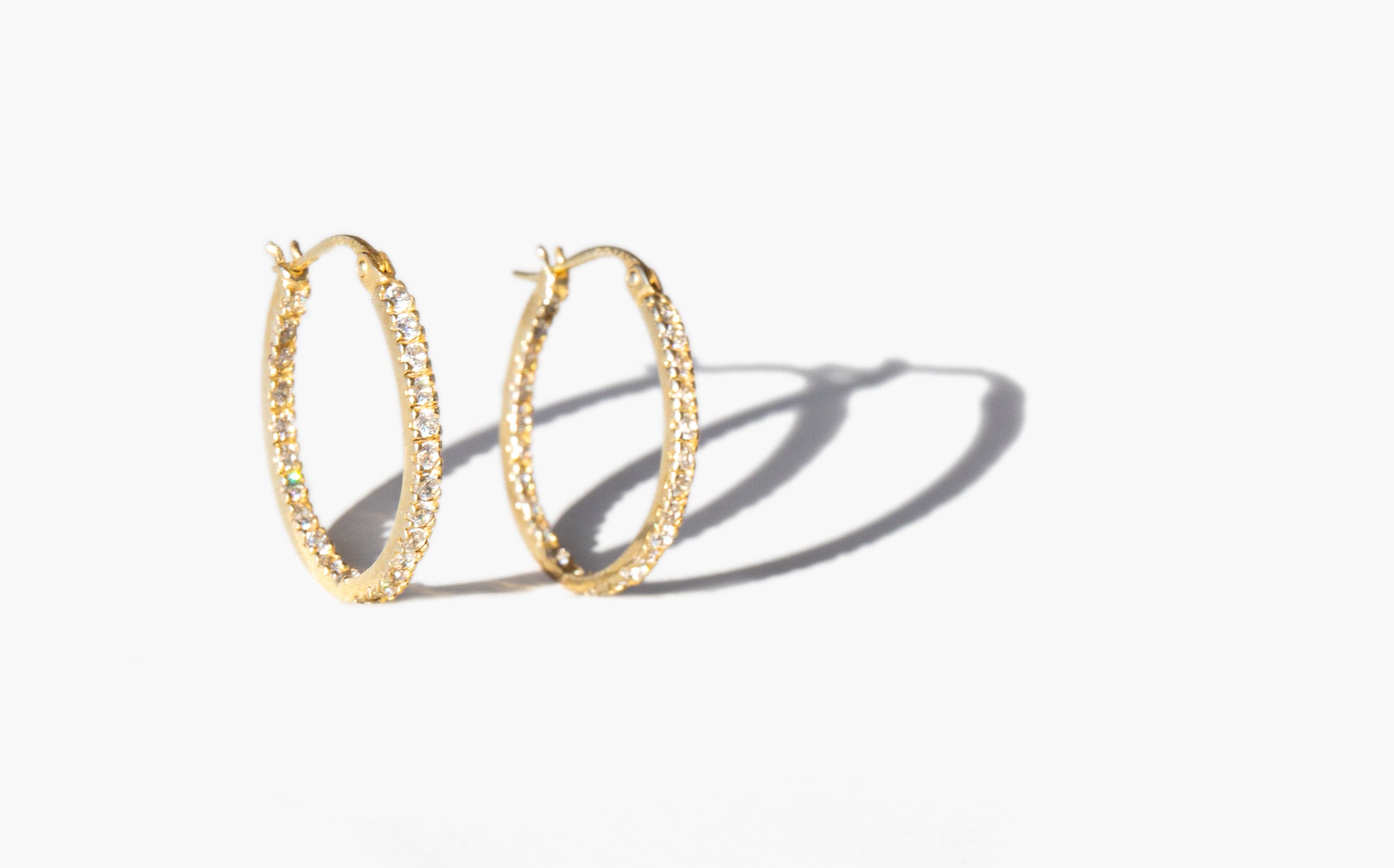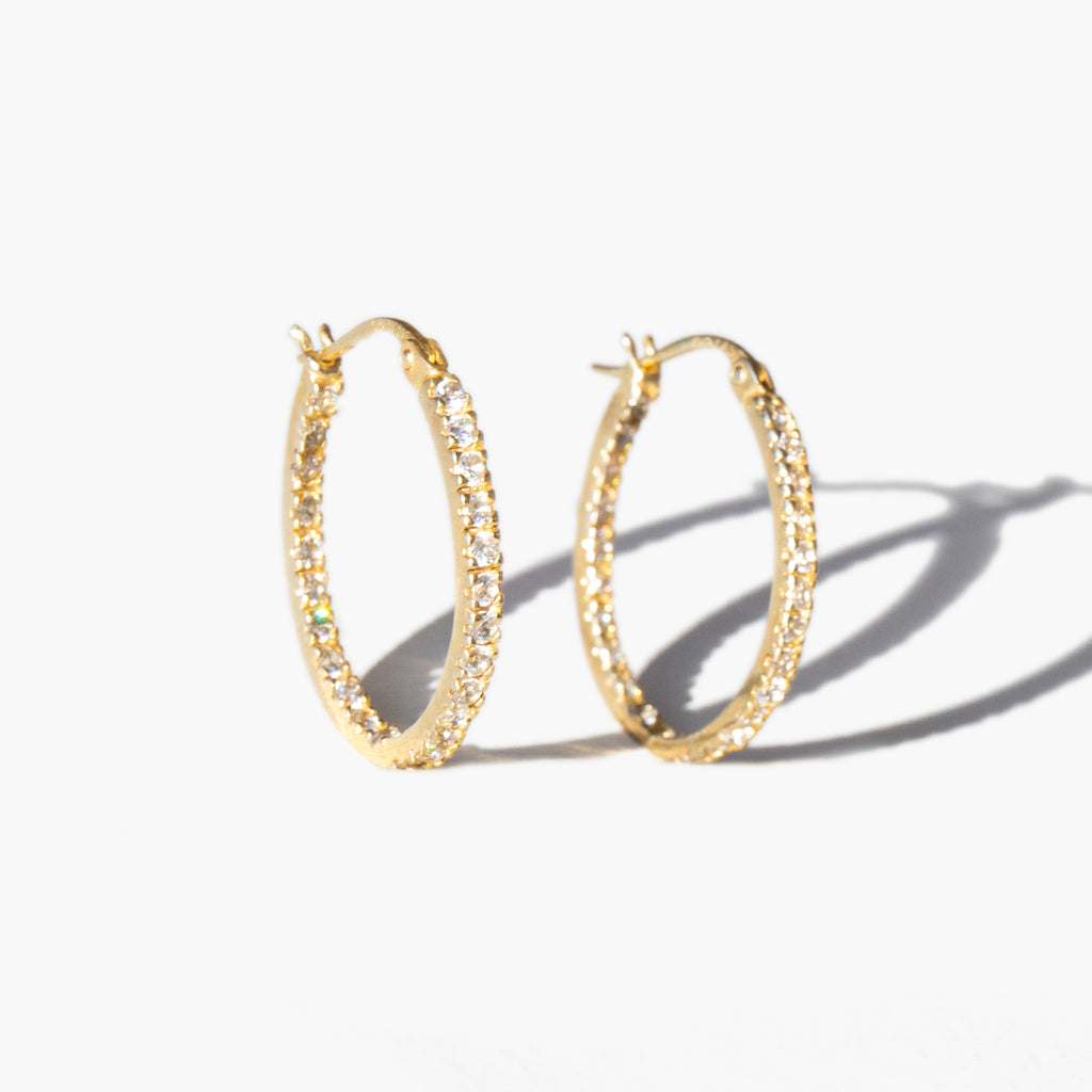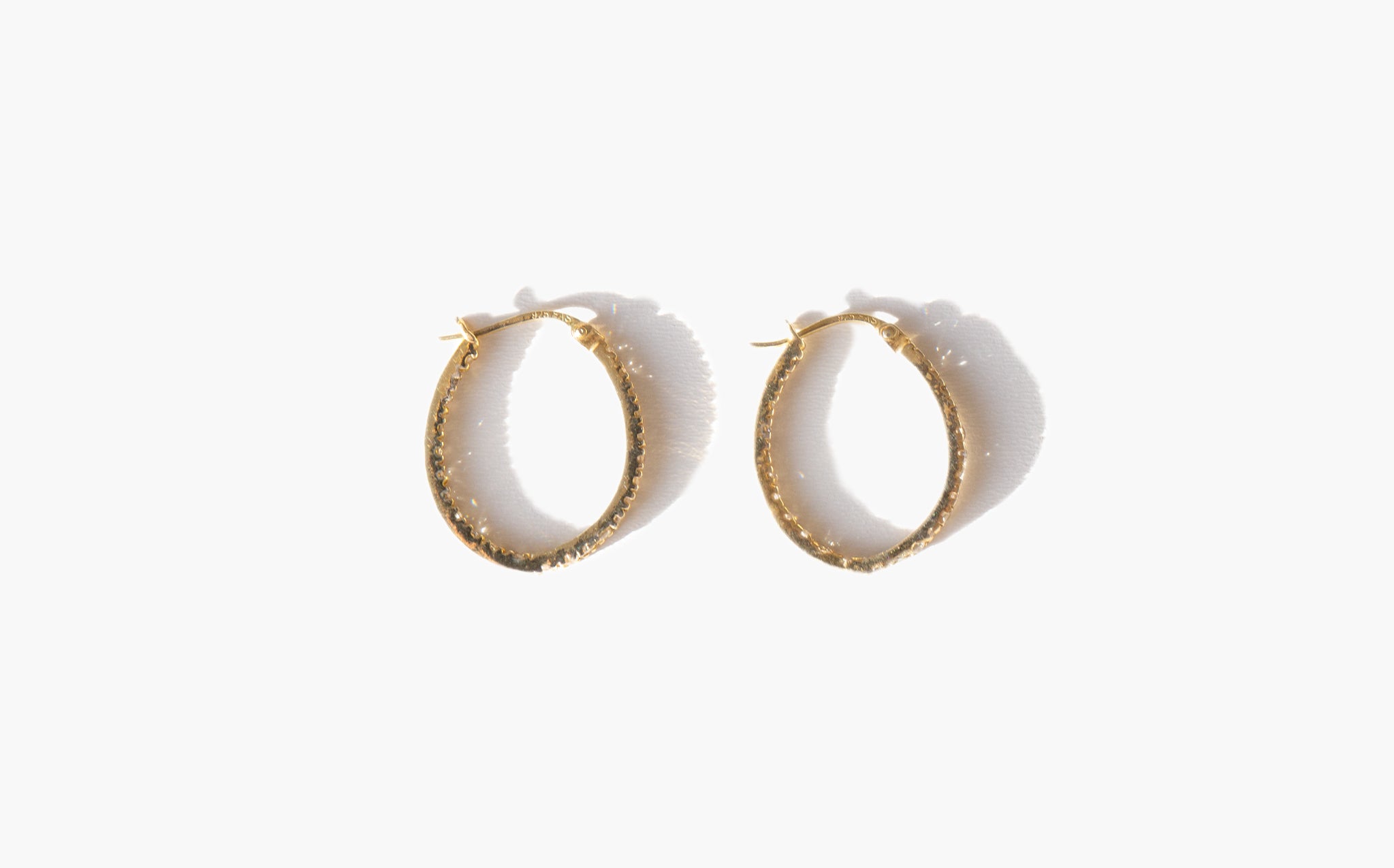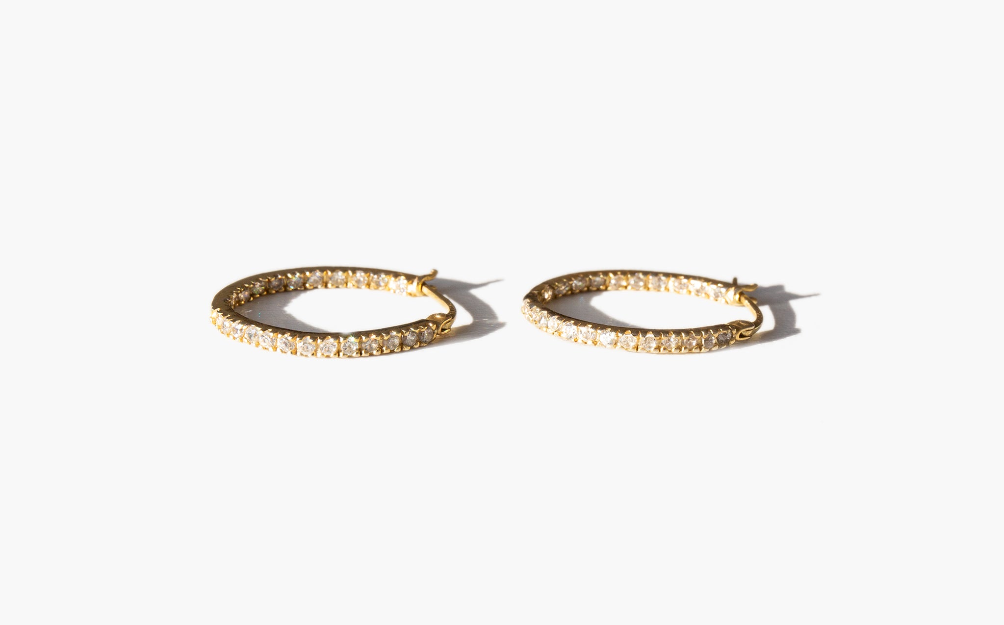 Pretty, sparkling 14k gold hoop earrings with diamond detailing.