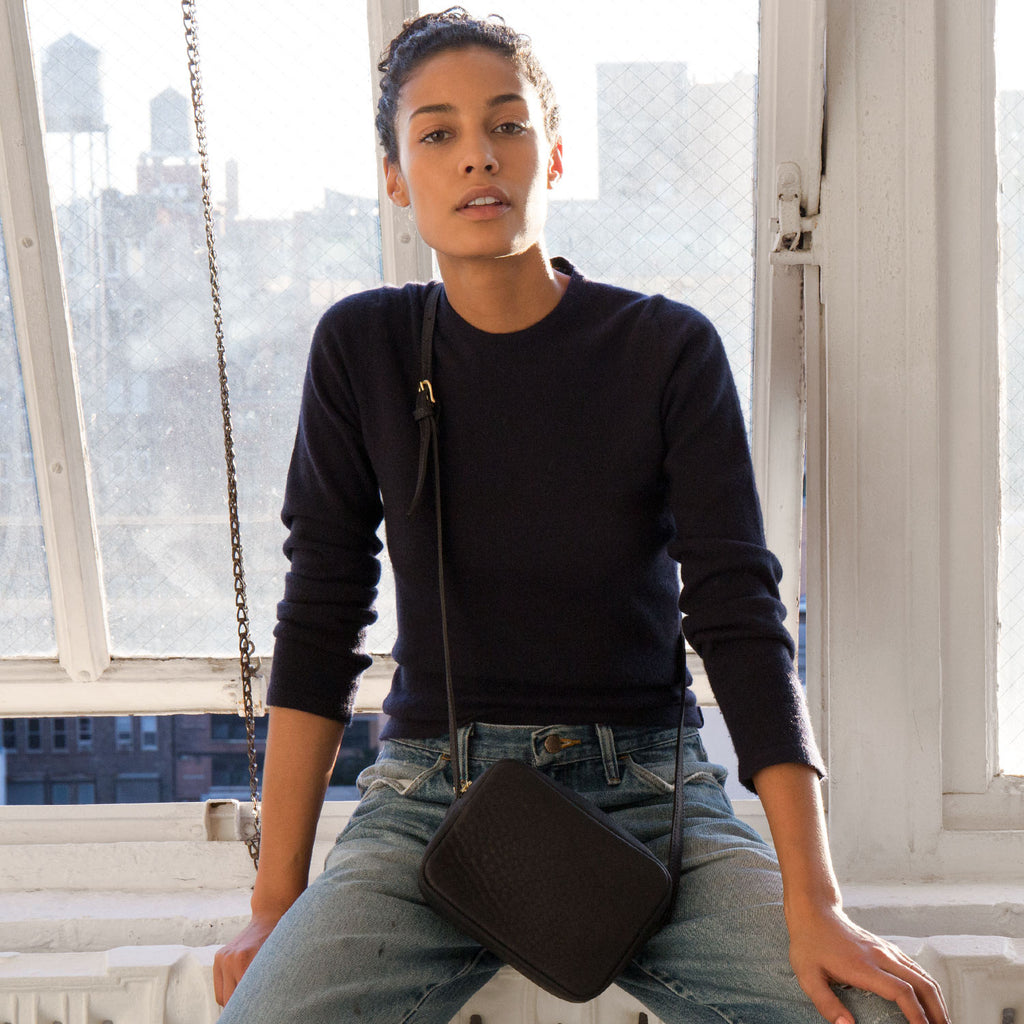 Simple, petite carryall that can be worn on the shoulder or cross-body. Made from naturally tanned hides from upstate New York and hand manufactured in New York City. This item is FINAL SALE.