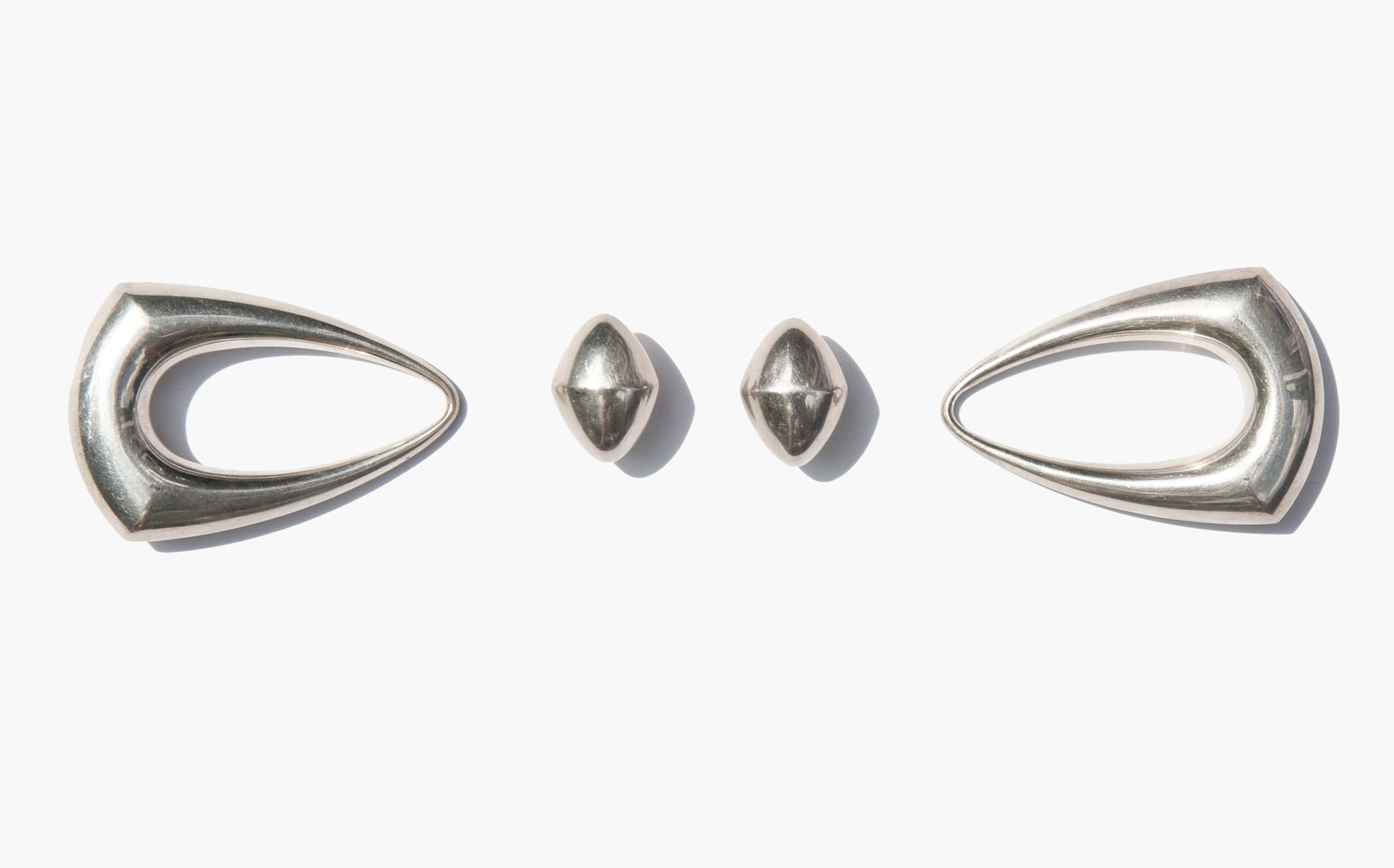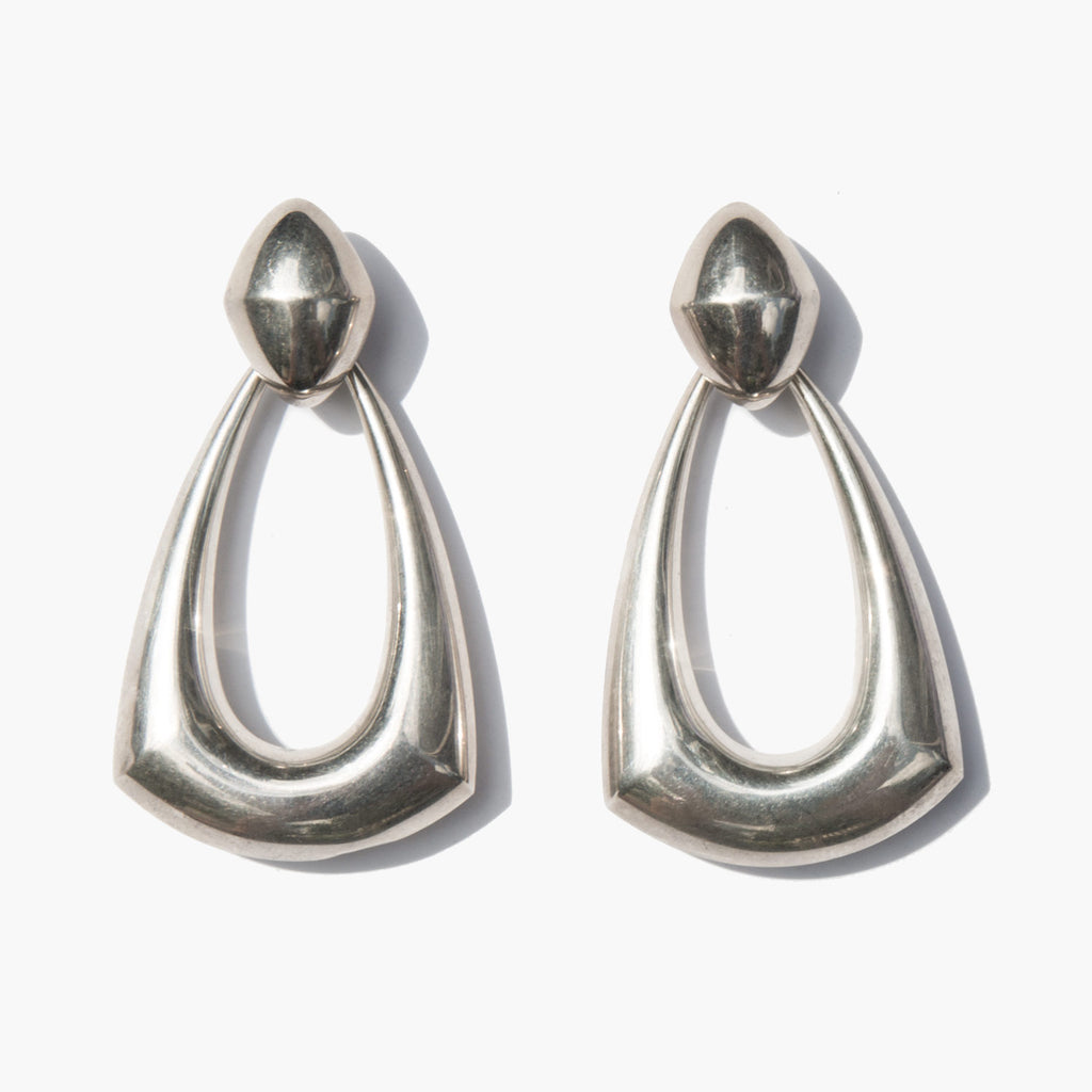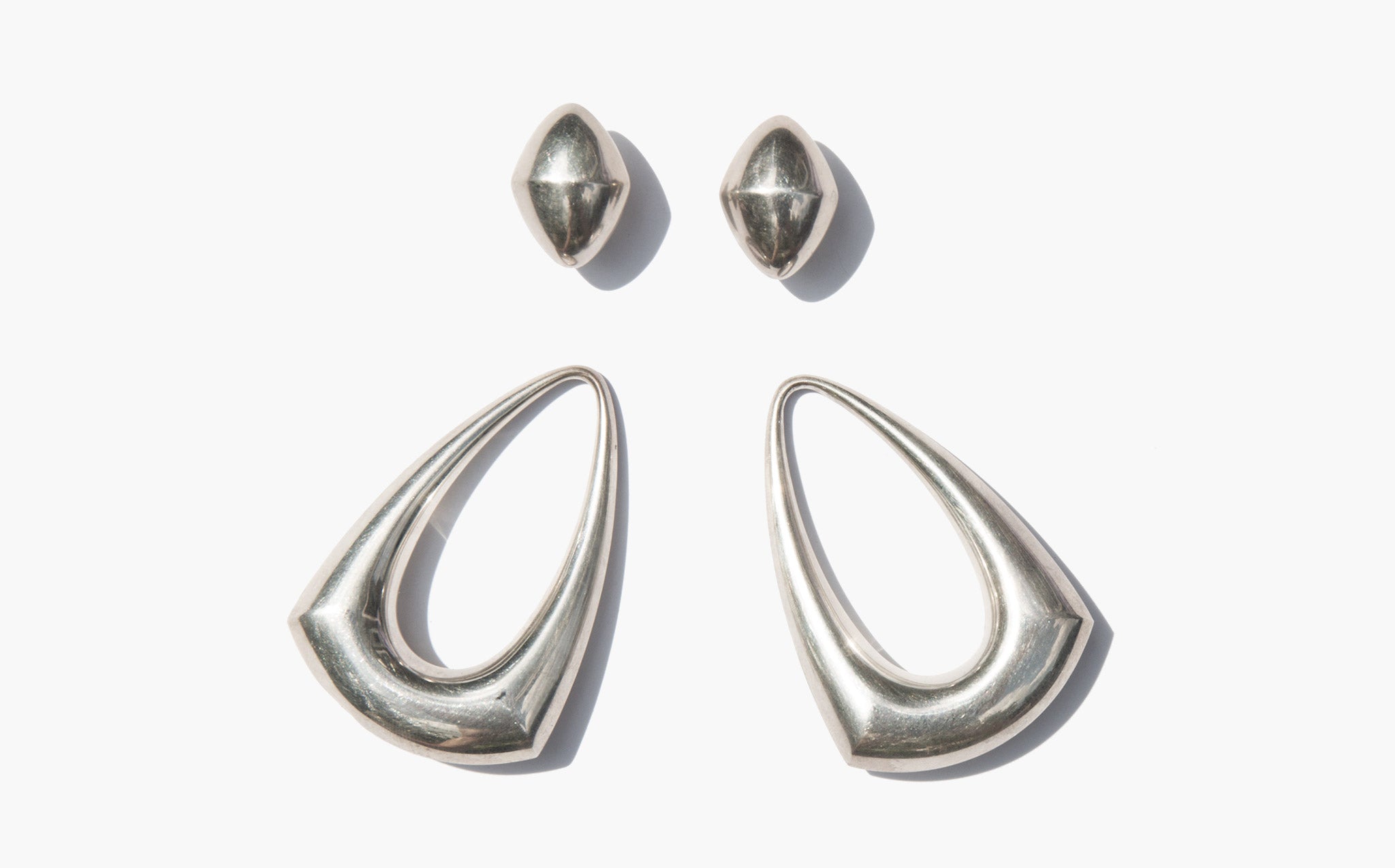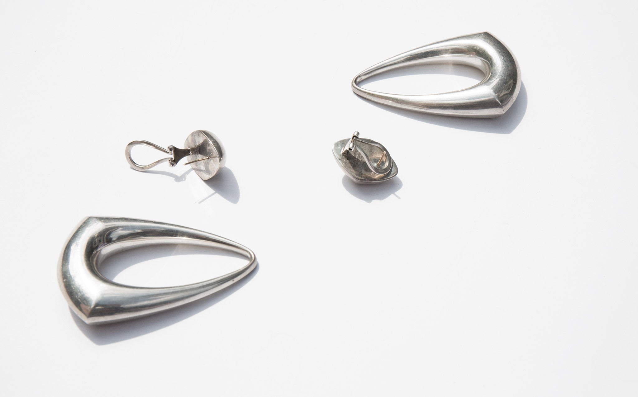Incredibly beautiful and sculptural, Jondell sterling silver, 2-way earrings. Can we worn with voluminous drop hoops or as oversized studs. Made in Spain.