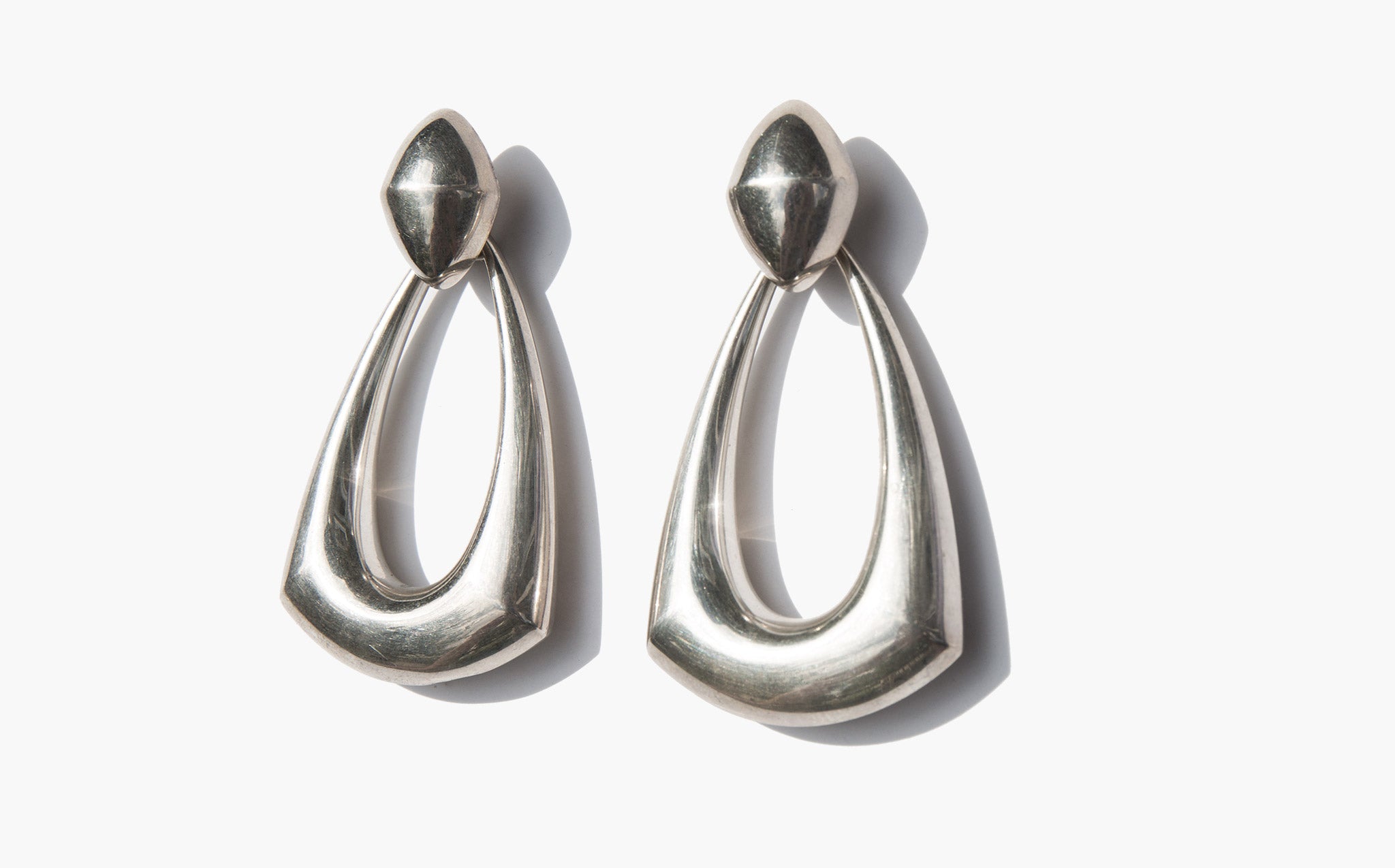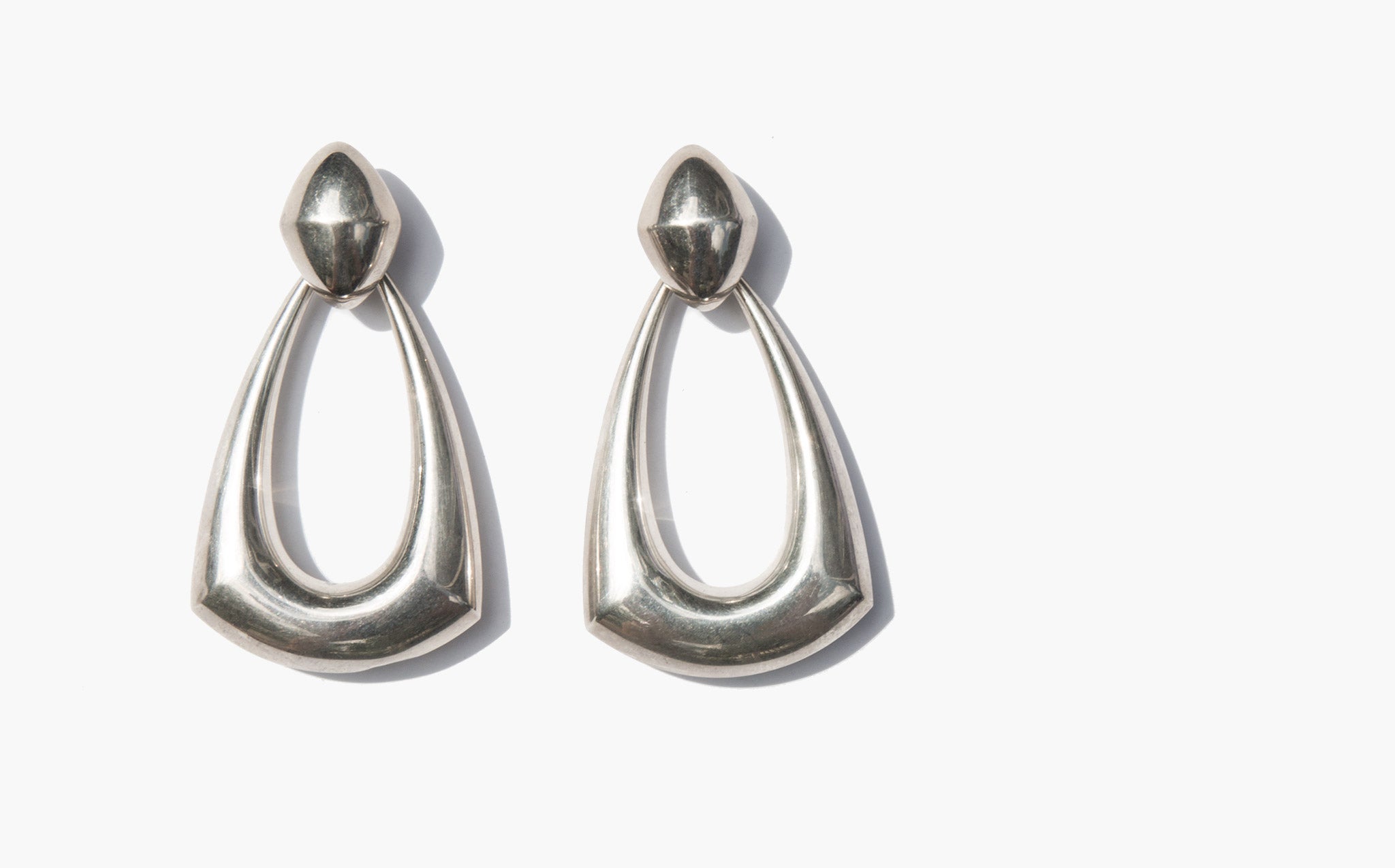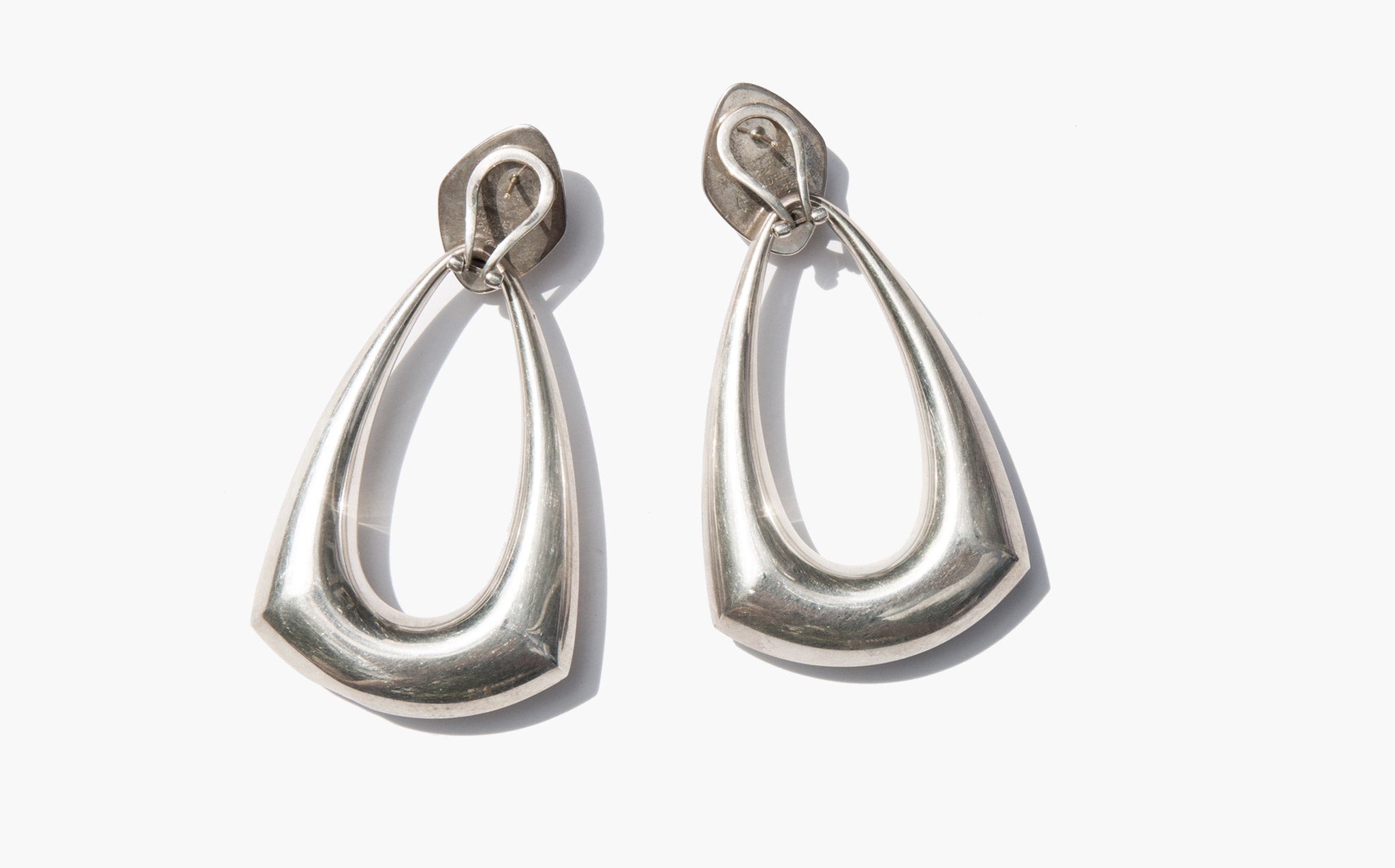 Incredibly beautiful and sculptural, Jondell sterling silver, 2-way earrings. Can we worn with voluminous drop hoops or as oversized studs. Made in Spain.