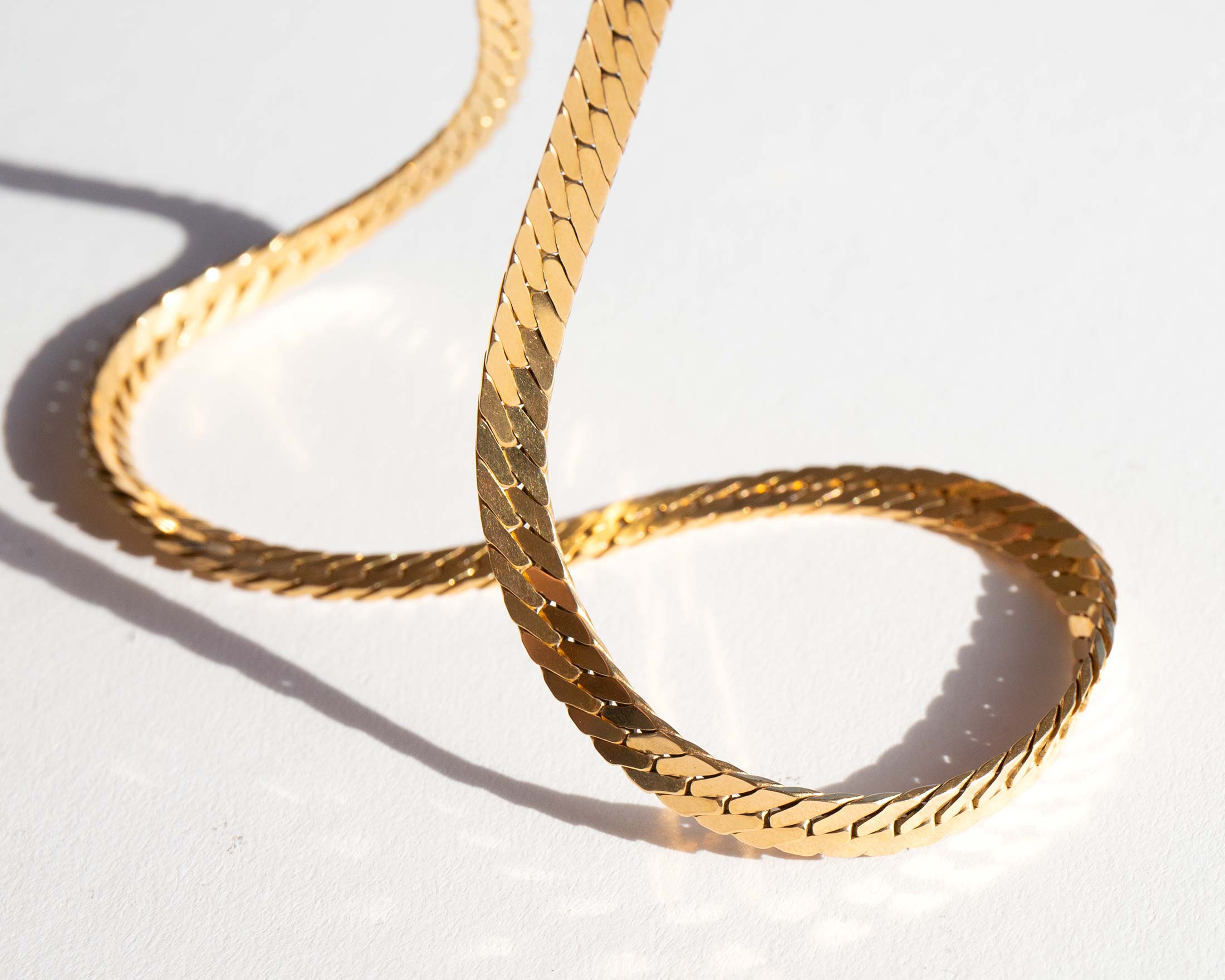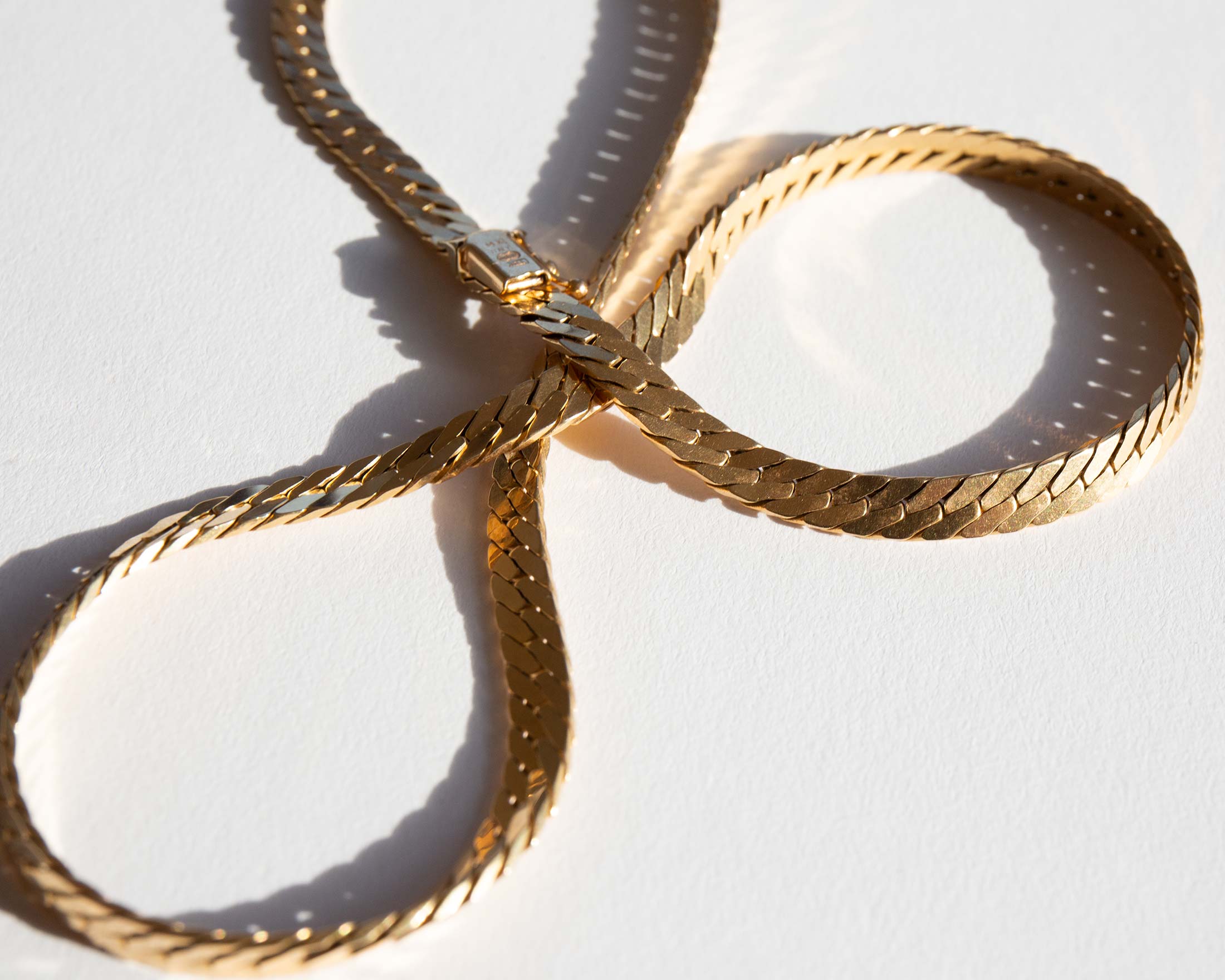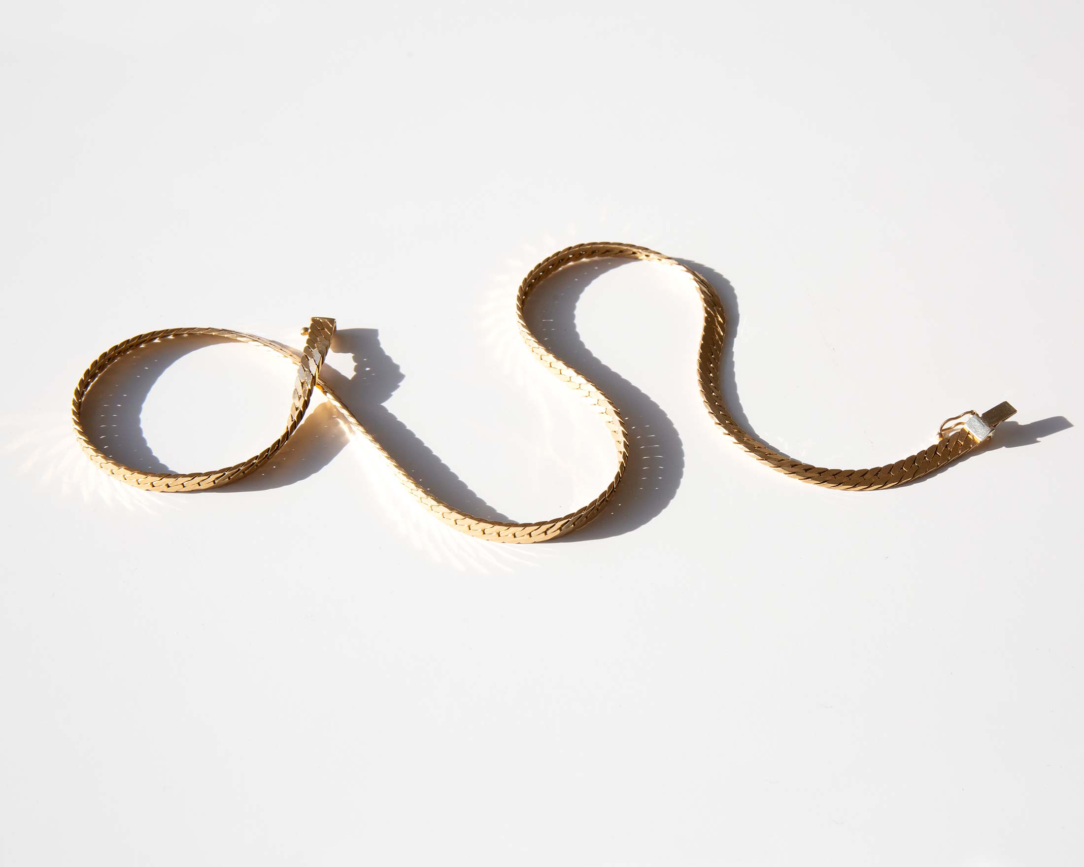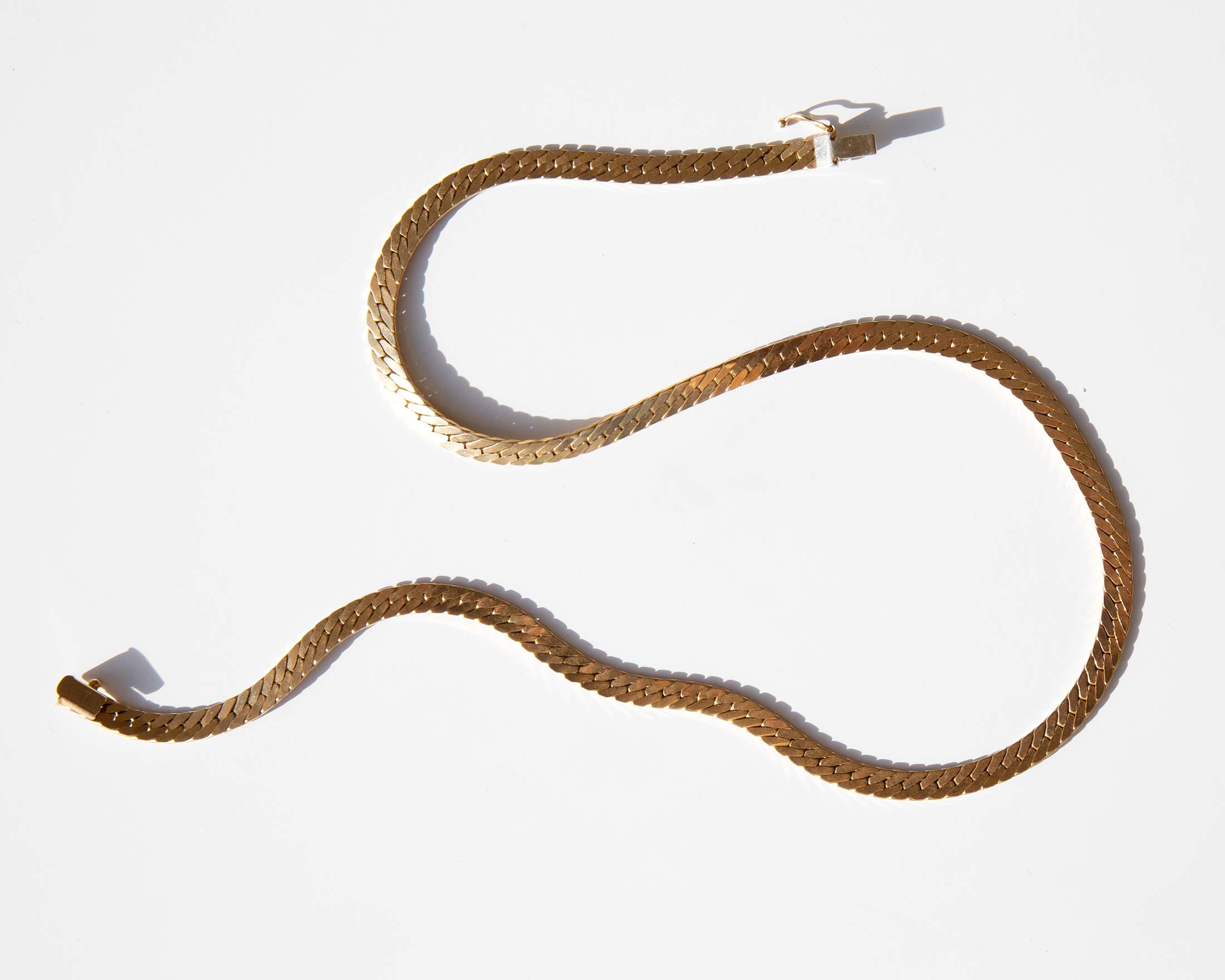 Brilliant 1970's 14k gold herringbone chain from Italian goldsmith UnoAErre.