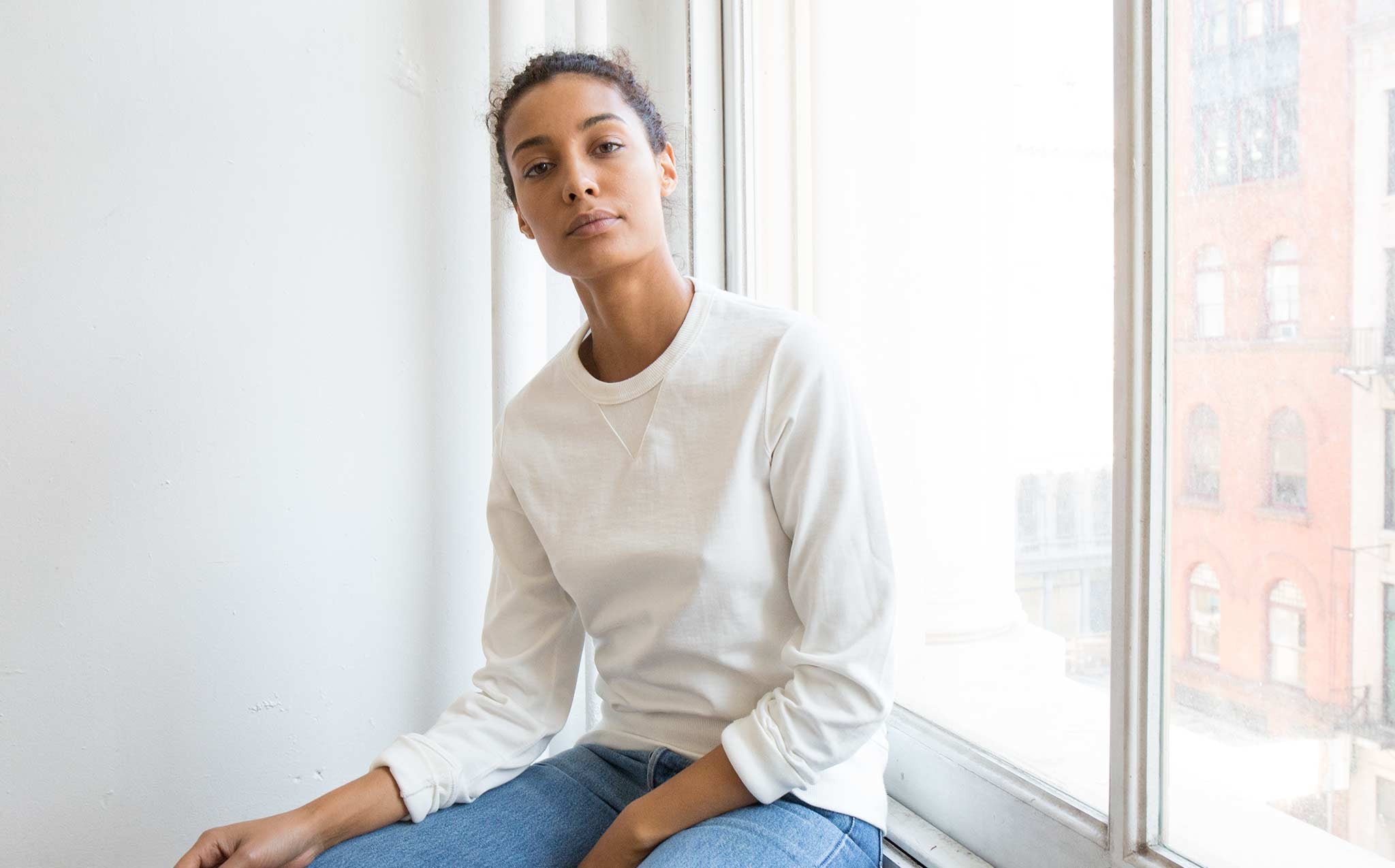 Traditional circular knitted, natural melange sweatshirt made from Prima Quality, 3-thread, 100% organic cotton.