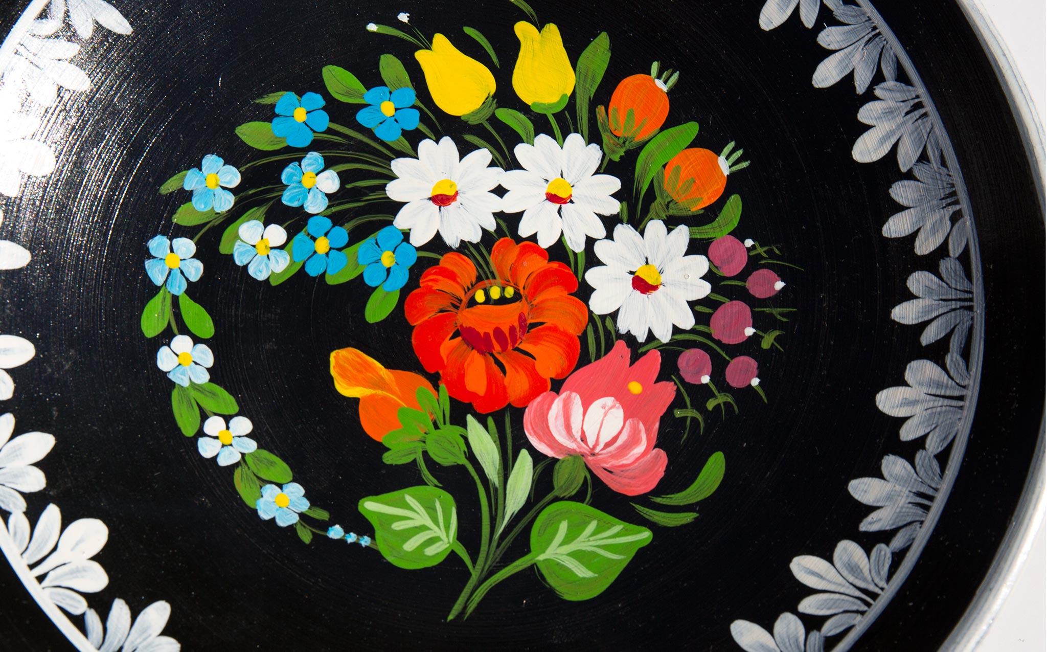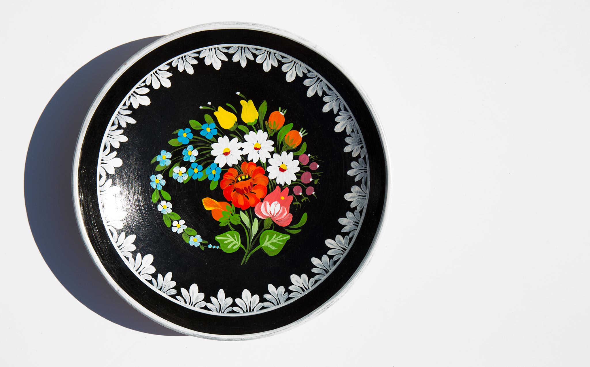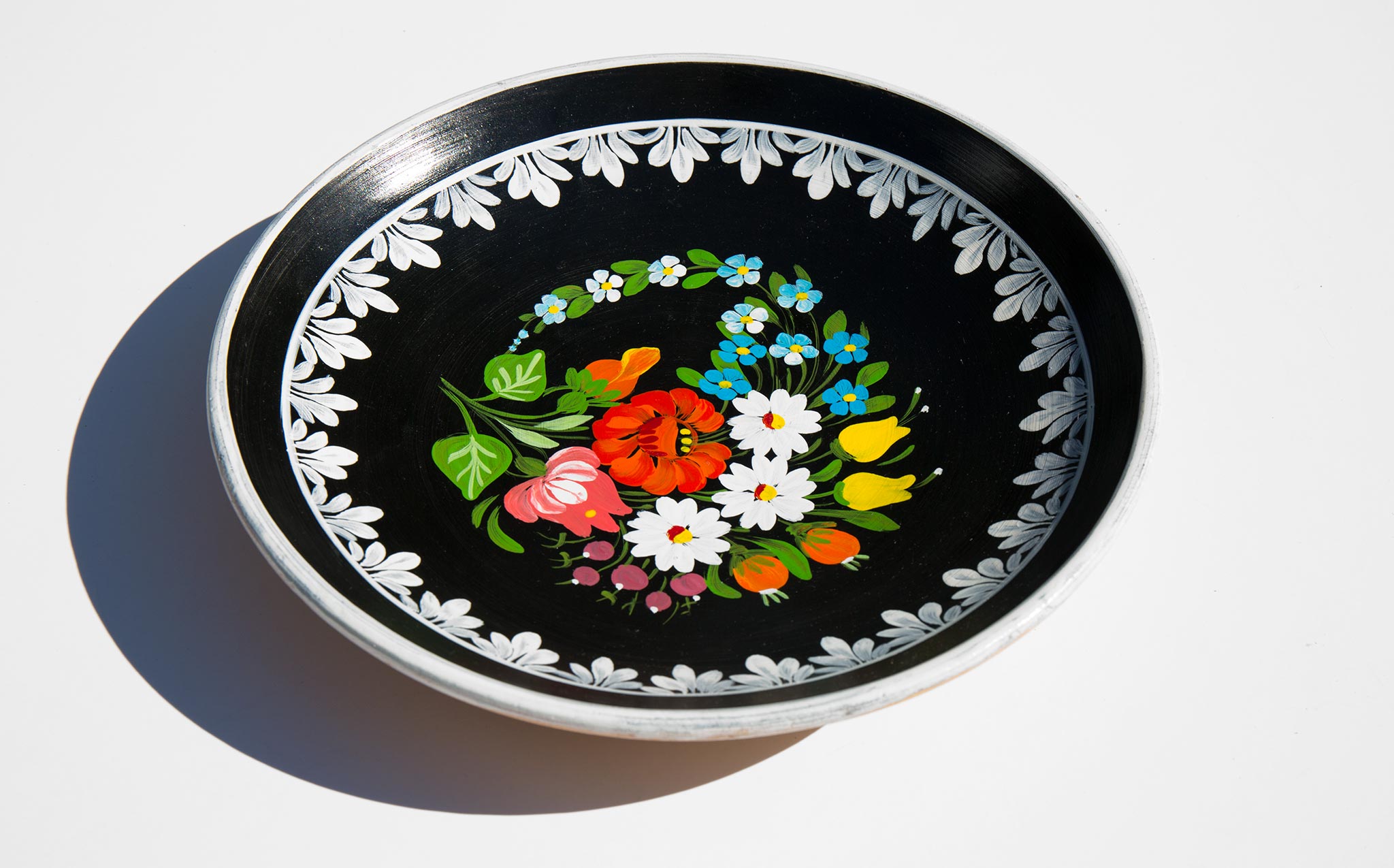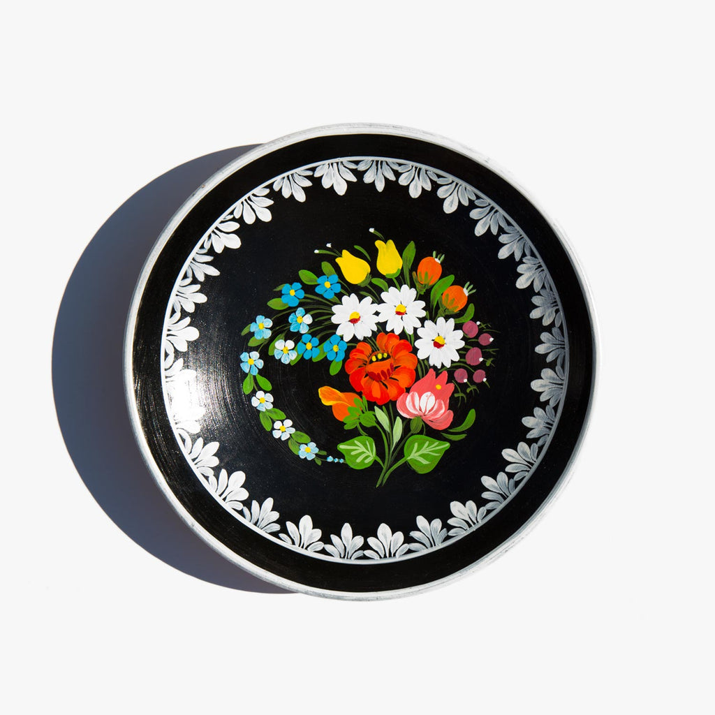 Vintage Mexican tourist plate with hand painted, traditional flowers.