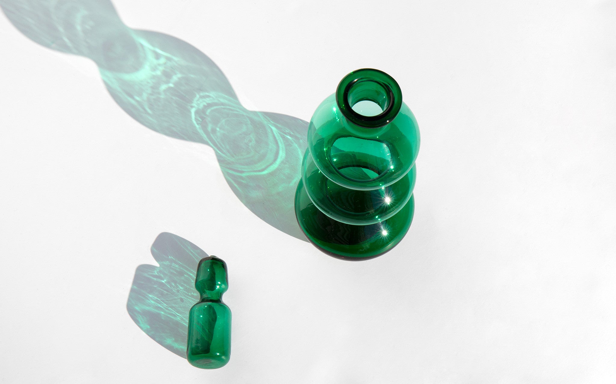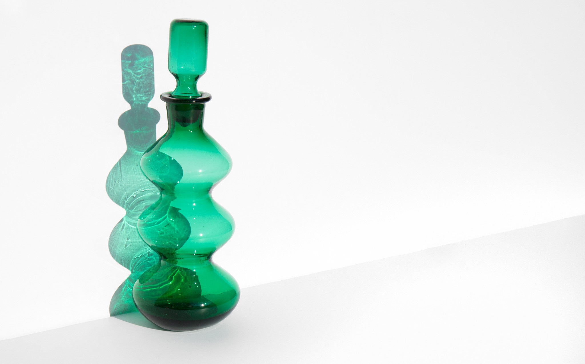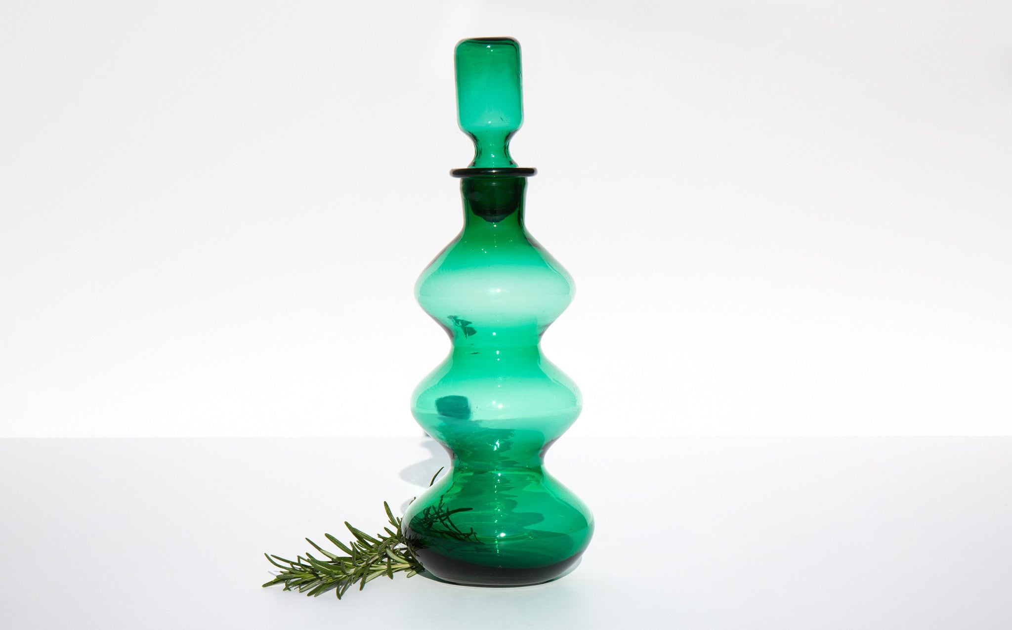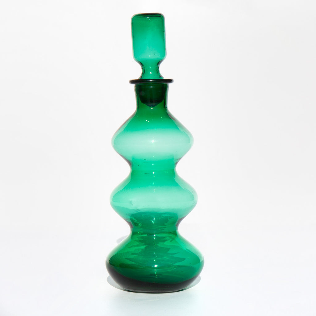 Festive laurel green glass decanter for holiday serving.